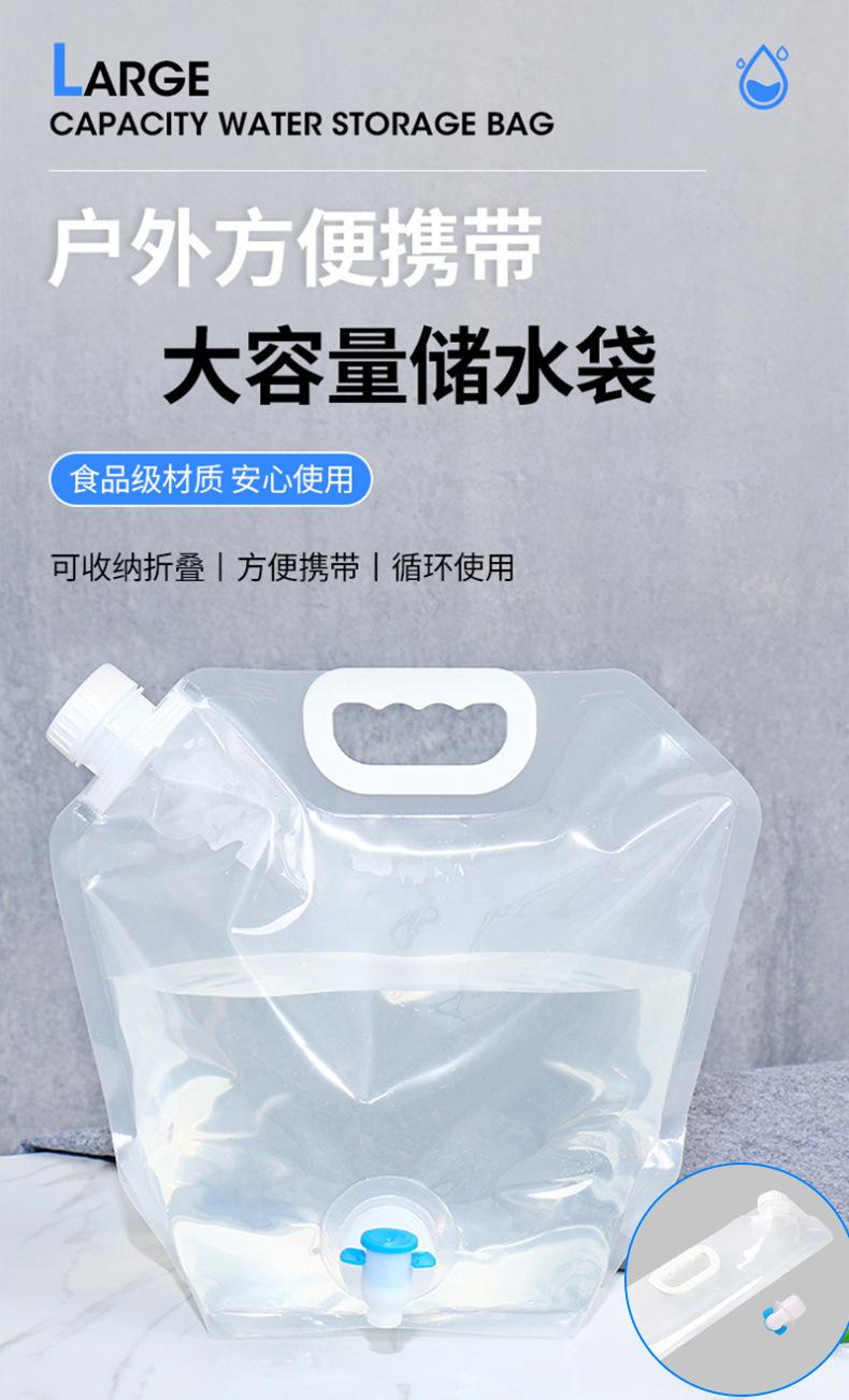 Bolsa de agua plegable portátil de gran capacidad para exteriores, para viajes, senderismo, camping, ciclismo, de plástico