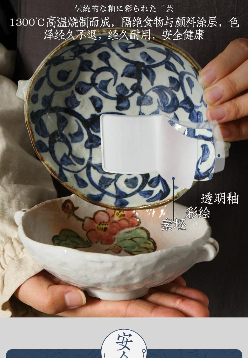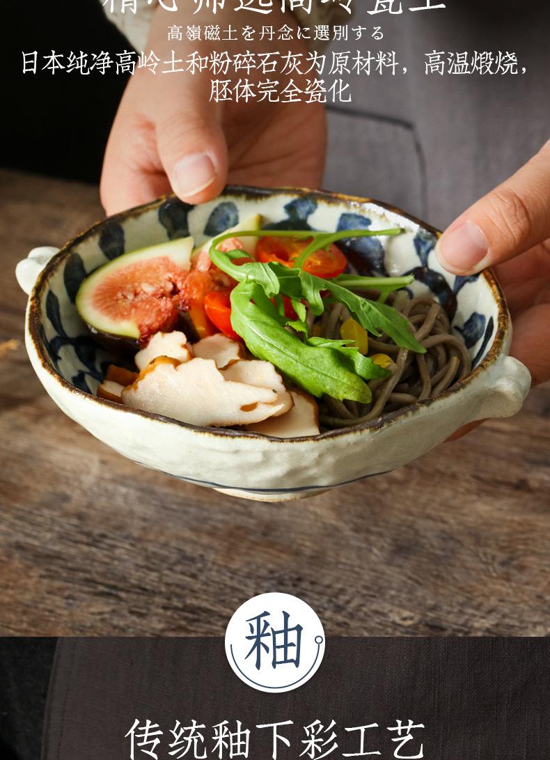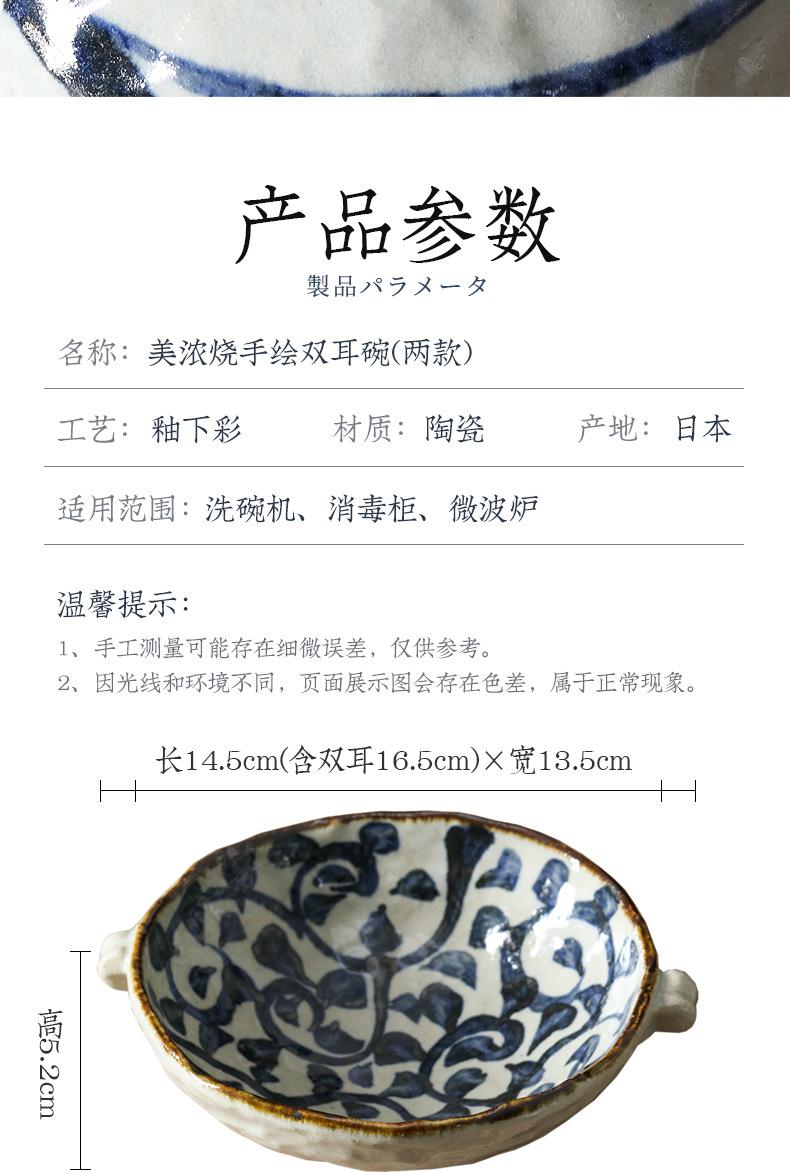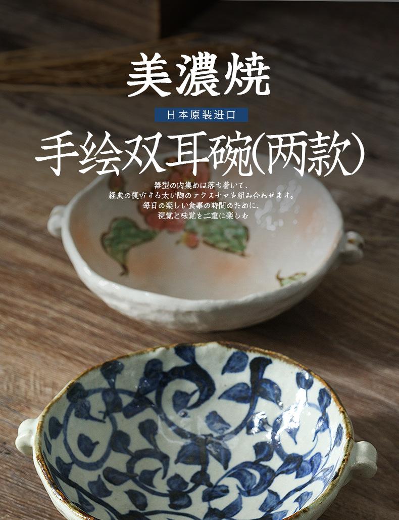 Cuenco de arroz de cerámica Meizhong importado de Japón, pintado a mano, bajo esmaltado, tangcao, cuenco de doble oreja para ensalada, fruta, postre, fideos, sopa.