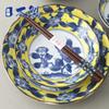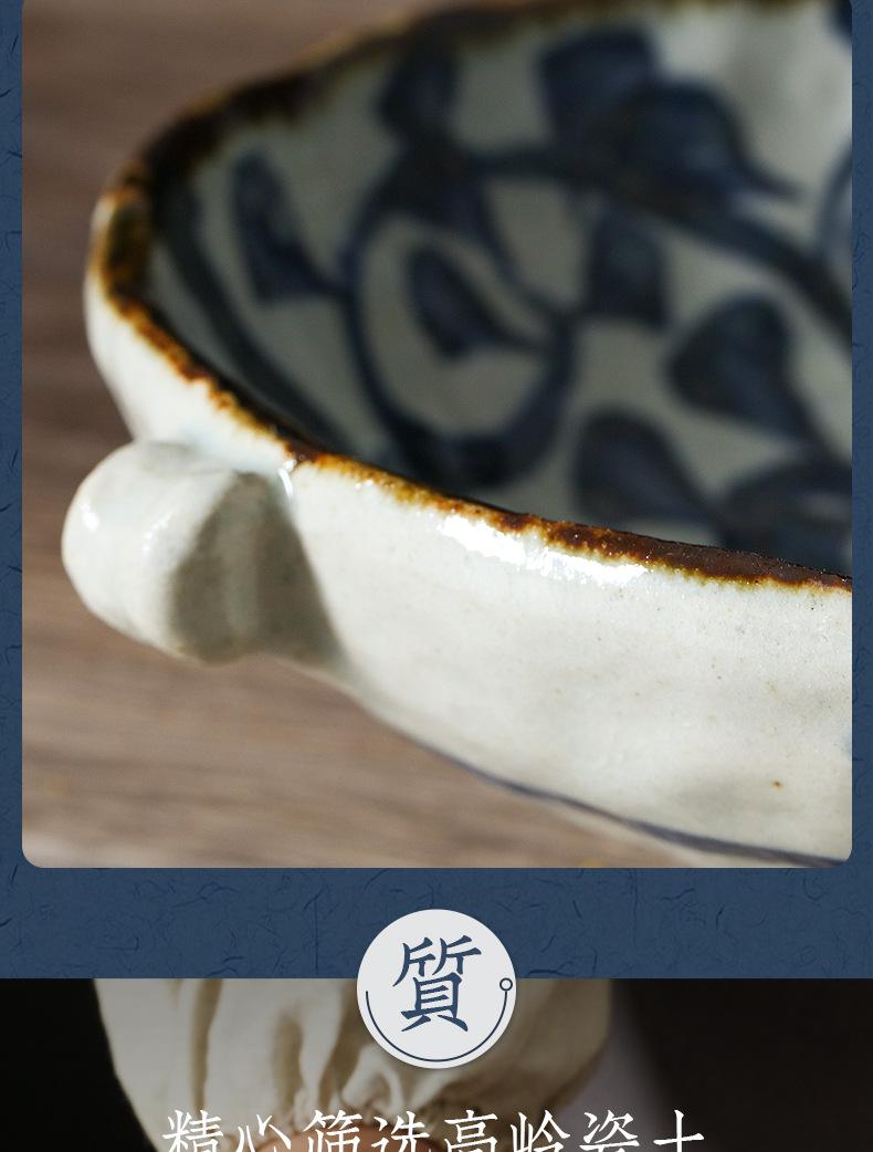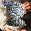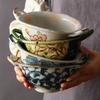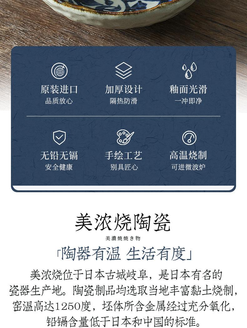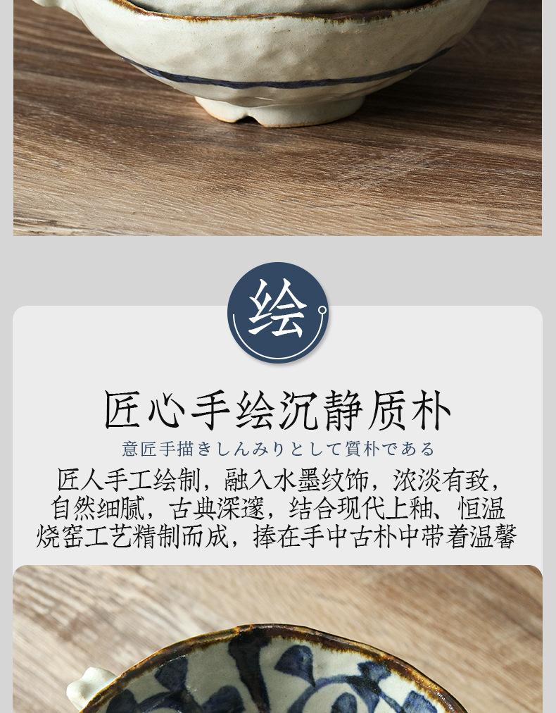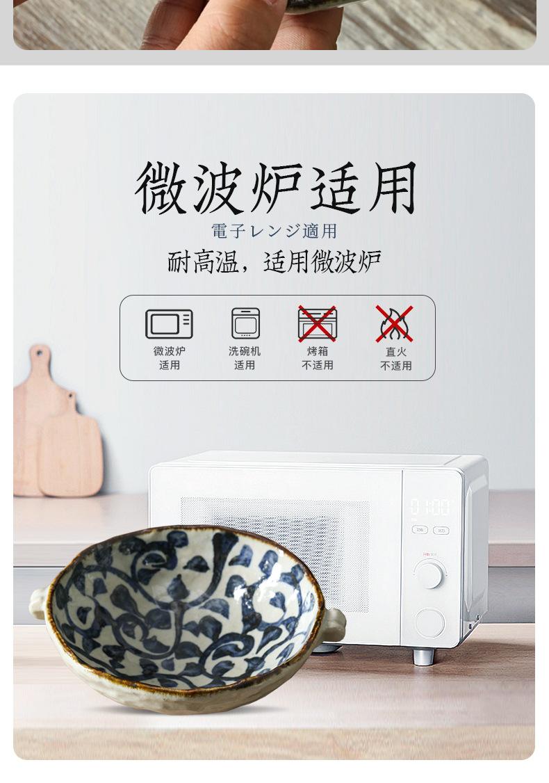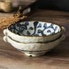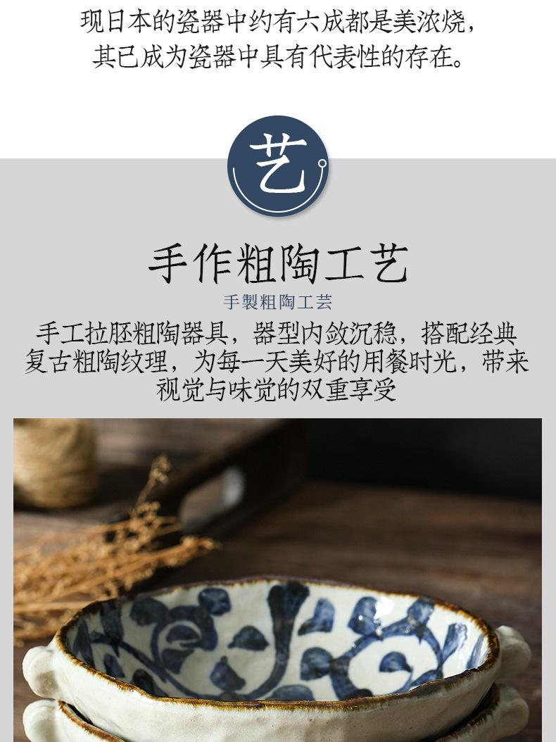 Cuenco de arroz de cerámica Meizhong importado de Japón, pintado a mano, bajo esmaltado, tangcao, cuenco de doble oreja para ensalada, fruta, postre, fideos, sopa.