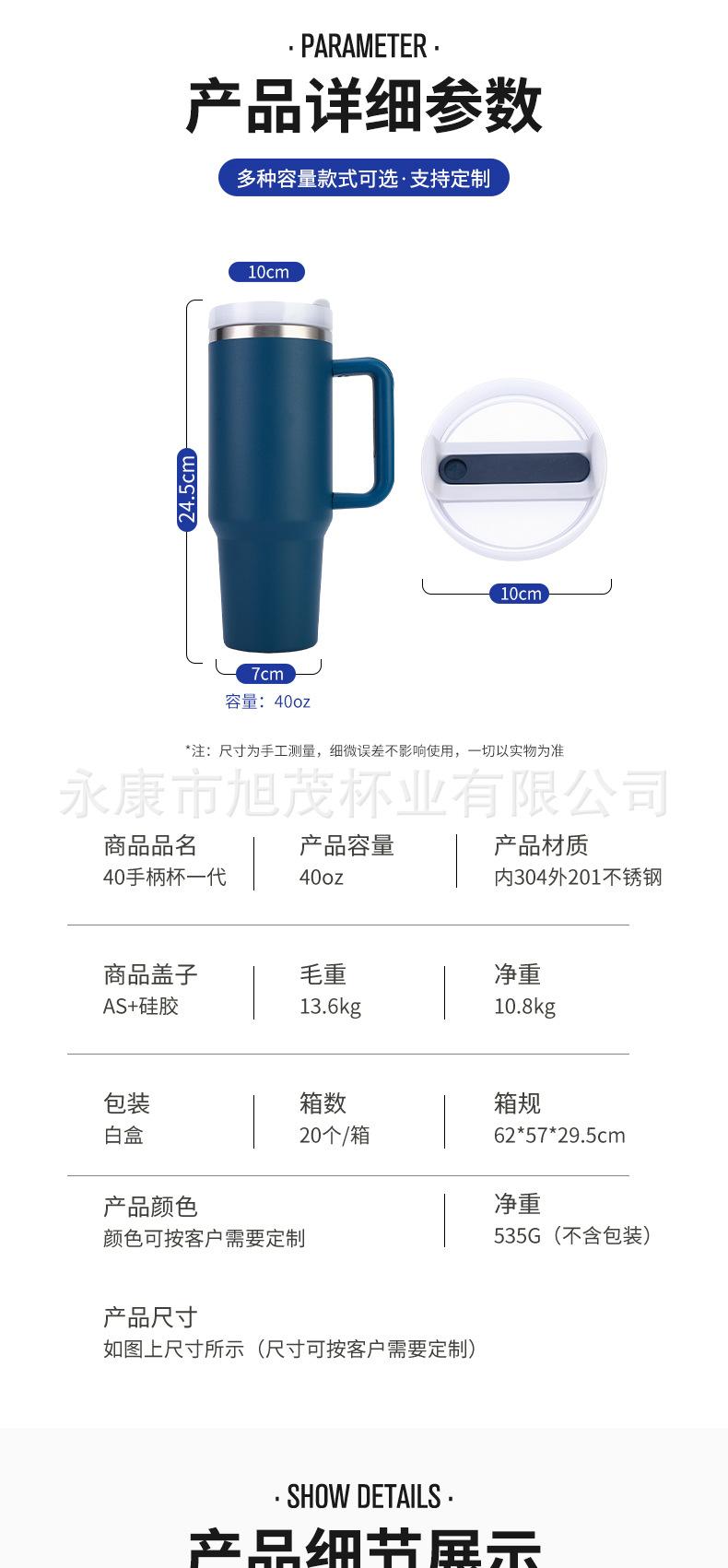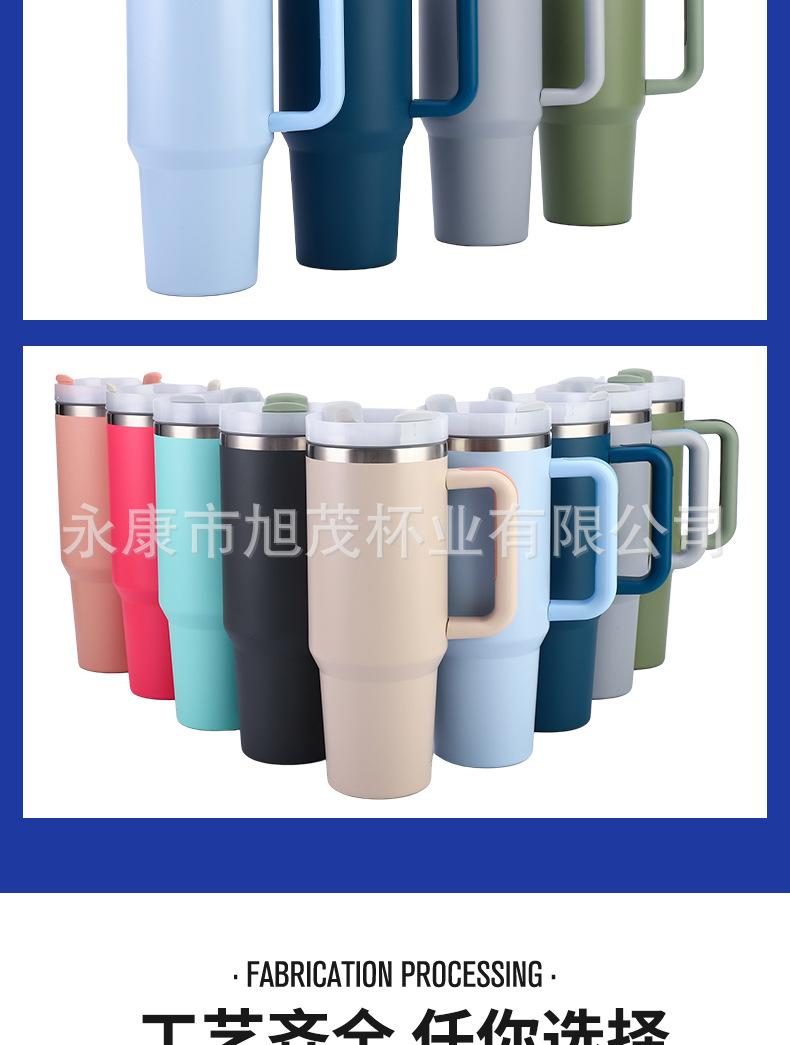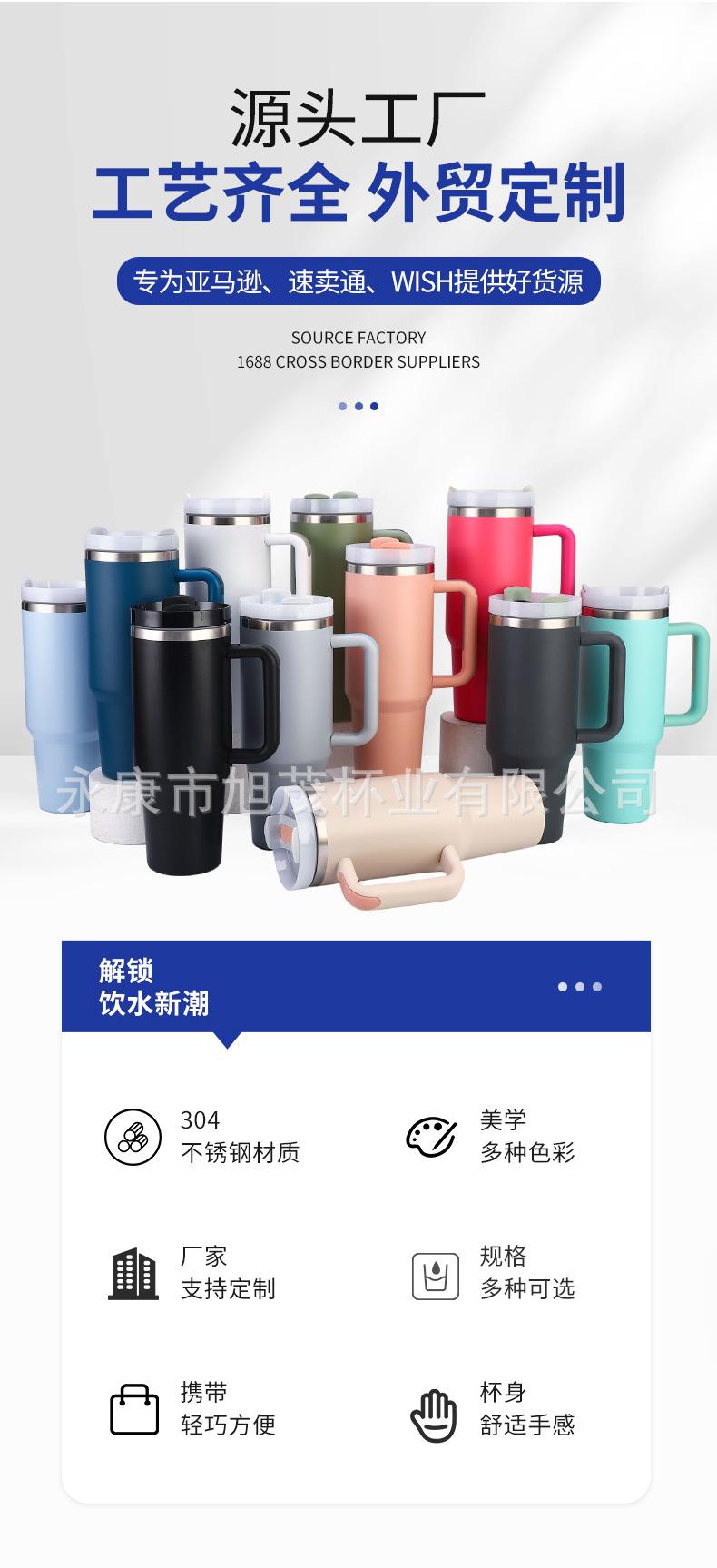 Termo de acero inoxidable 304, taza de hielo con pajita, taza de café portátil, taza para automóvil, taza con asa de 40 oz, borde cruzado
