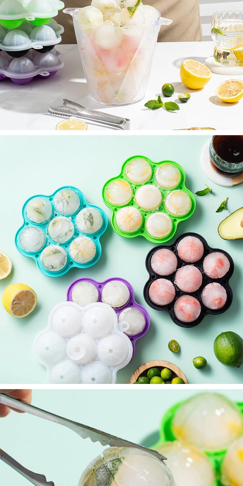 Molde redondo de silicona para cubitos de hielo de 7 agujeros, molde grande para bolas de hielo de whisky, molde para cubitos de hielo para refrigerador