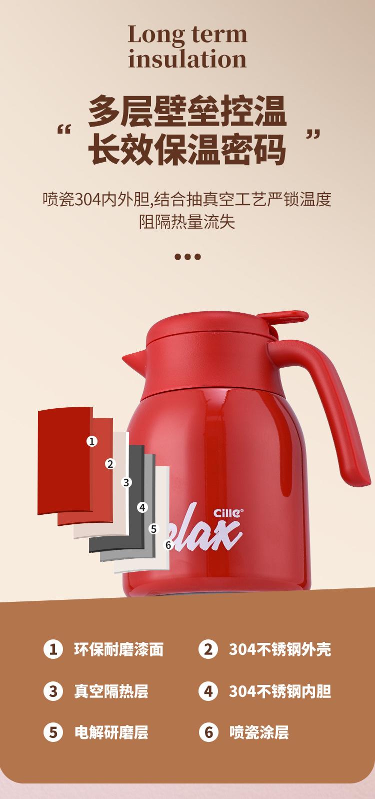 Termo Xile para el hogar, con revestimiento de cerámica, de gran capacidad, botella térmica, hervidor portátil, nuevo producto