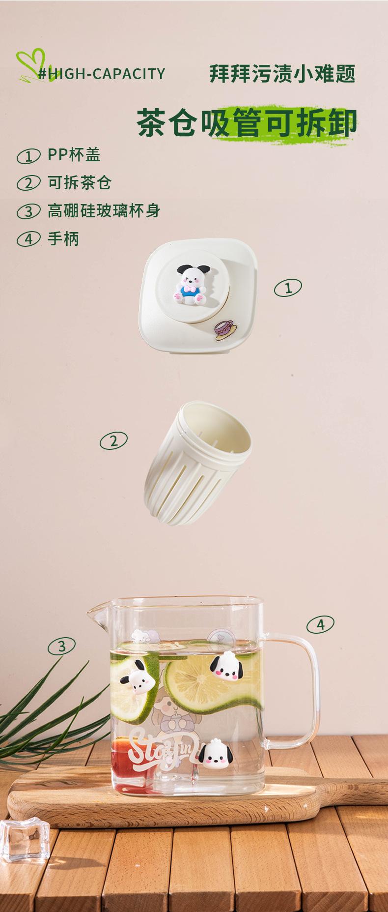 Nueva taza de oficina de vidrio de gran capacidad y aspecto atractivo con tapa, tetera, taza de té, separación de té, resistente a altas temperaturas