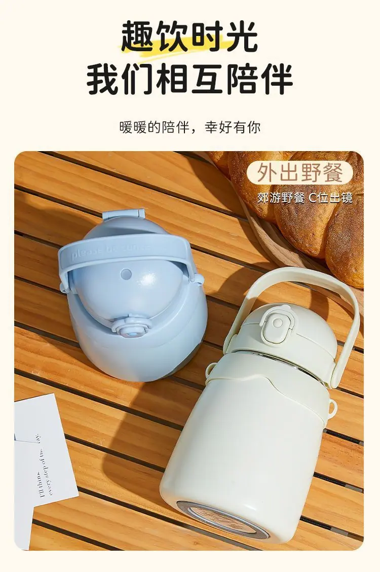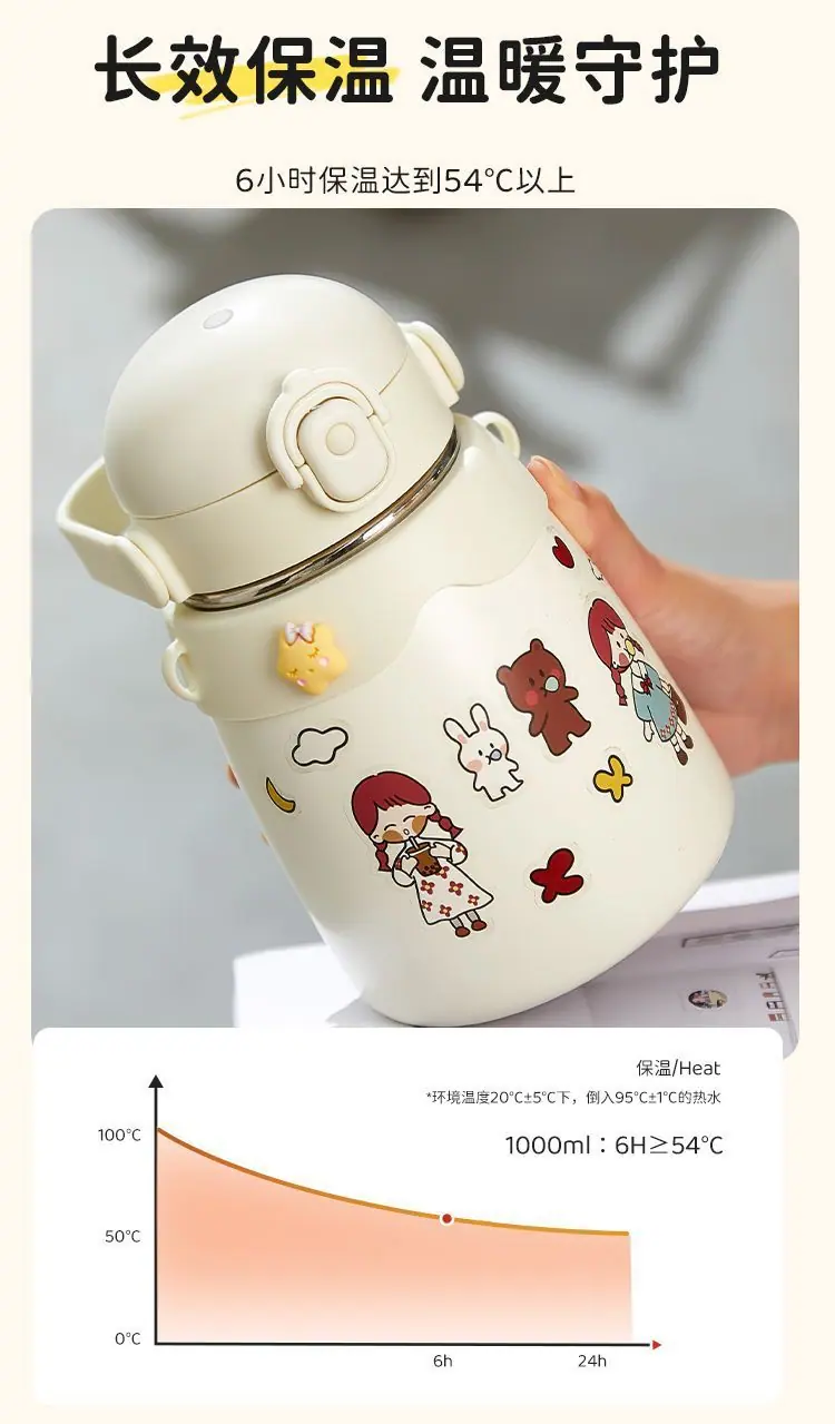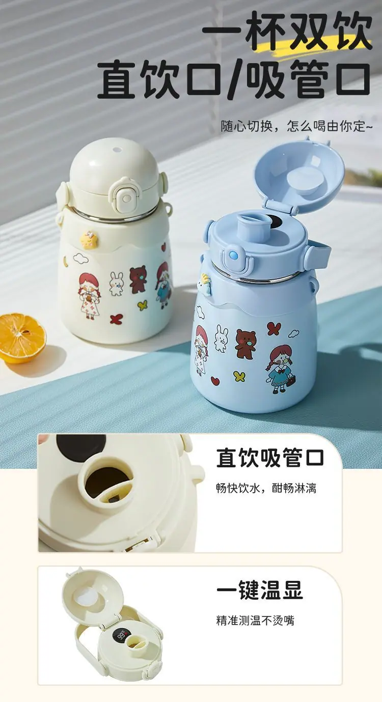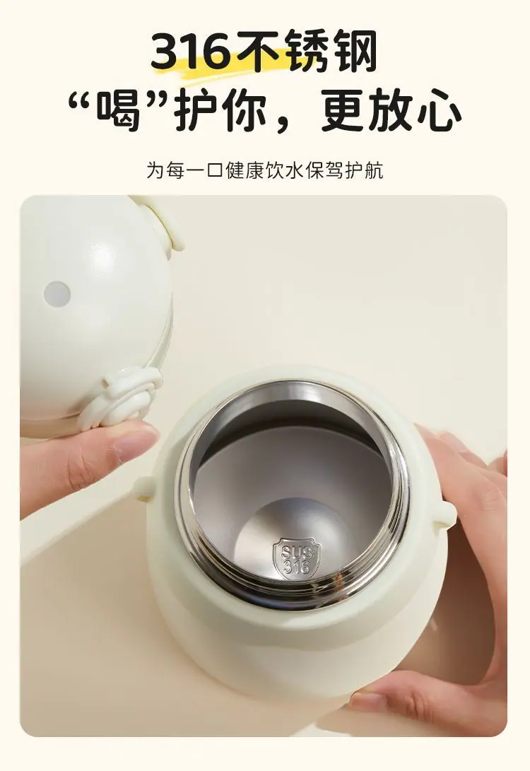 Taza Termo de Acero Inoxidable 316 Gruesa de Dibujos Animados Portátil para Exterior Taza de Gran Capacidad con Pajita Termo para Niños Hervidor de Agua