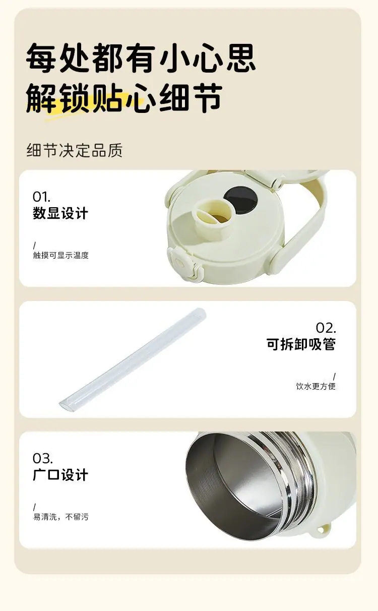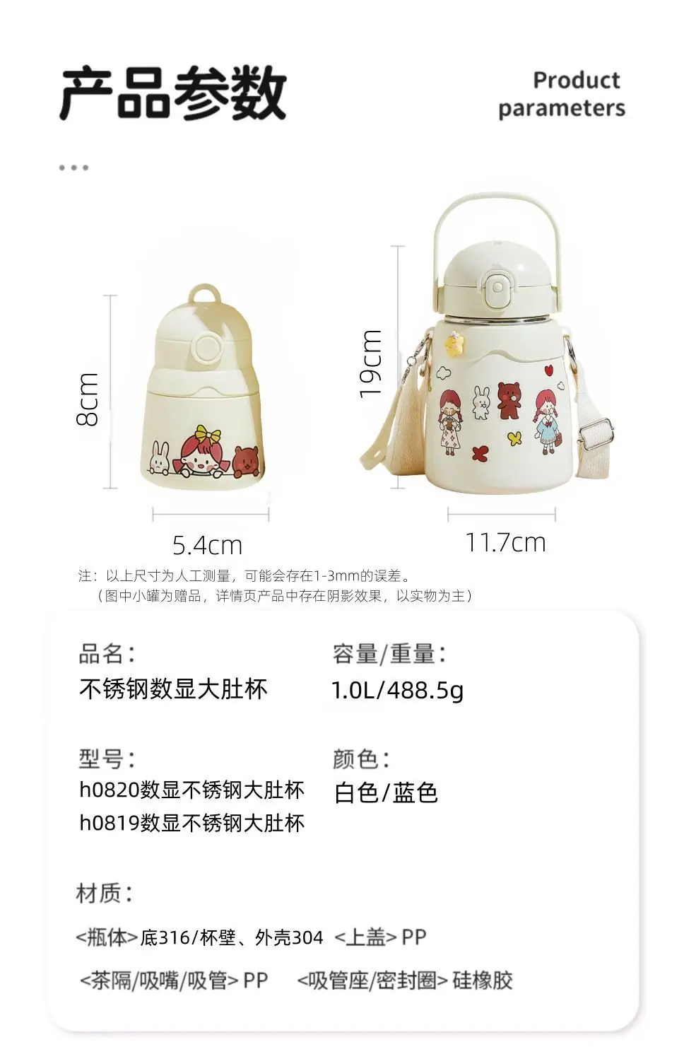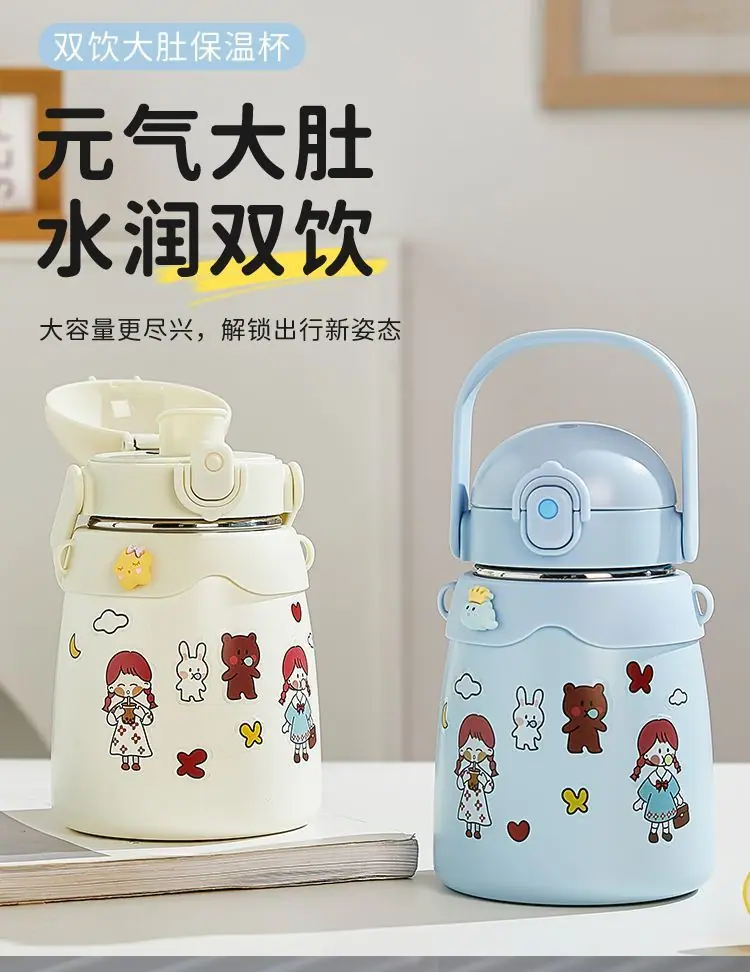 Taza Termo de Acero Inoxidable 316 Gruesa de Dibujos Animados Portátil para Exterior Taza de Gran Capacidad con Pajita Termo para Niños Hervidor de Agua