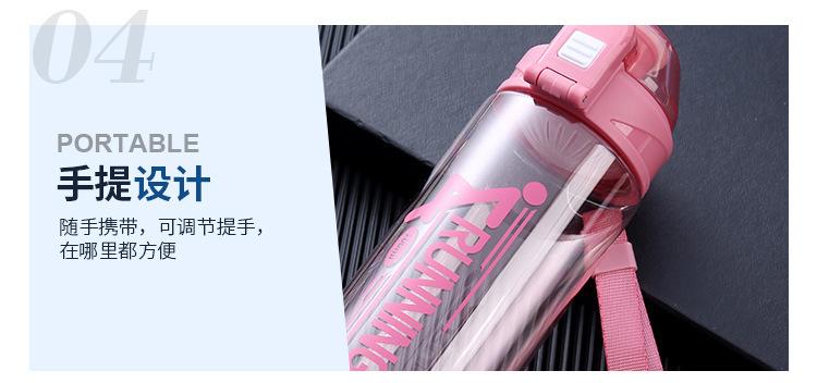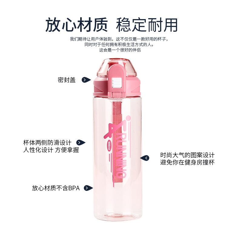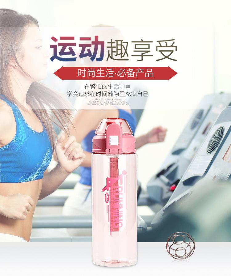 Vaso de plástico simple de gran capacidad para hombres y mujeres, hervidor deportivo portátil para fitness, para exteriores, sellado, taza creativa personalizada con espacio