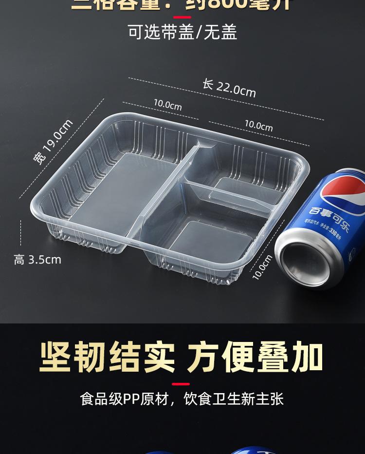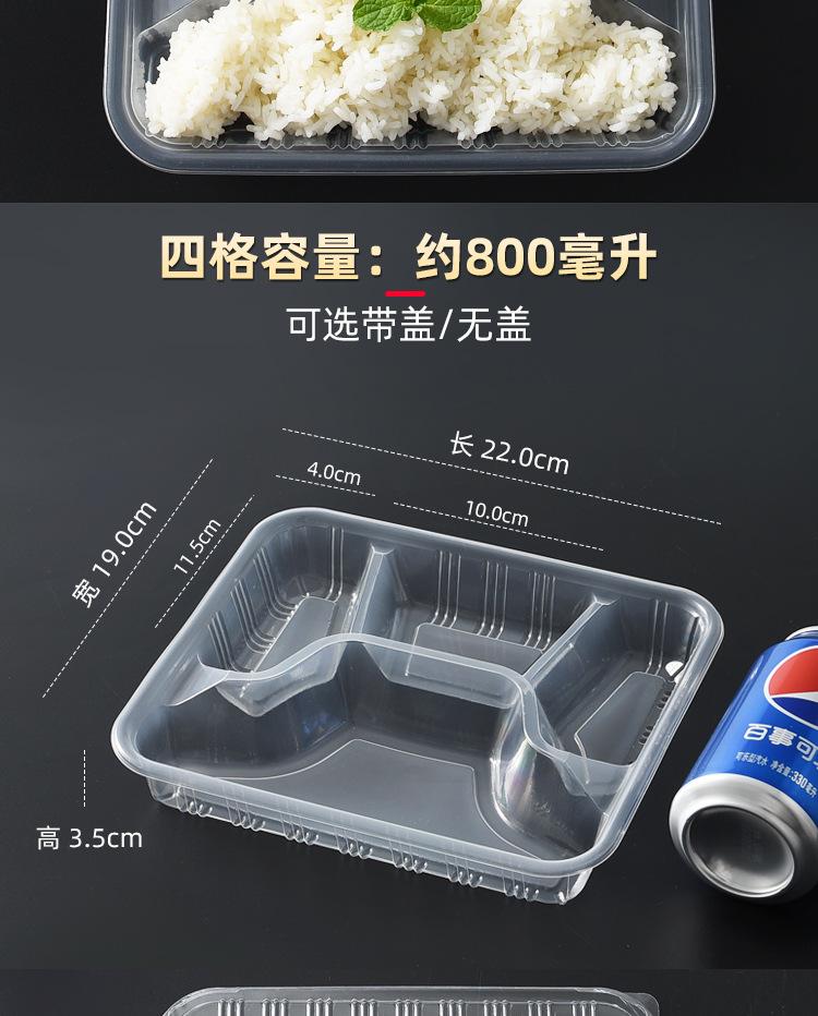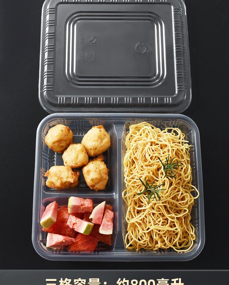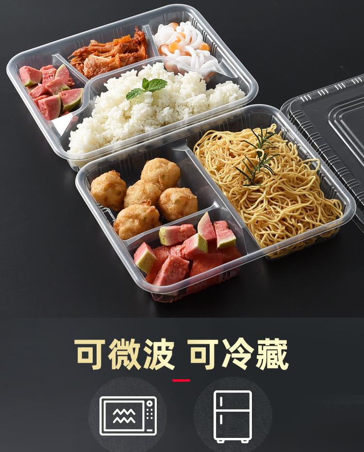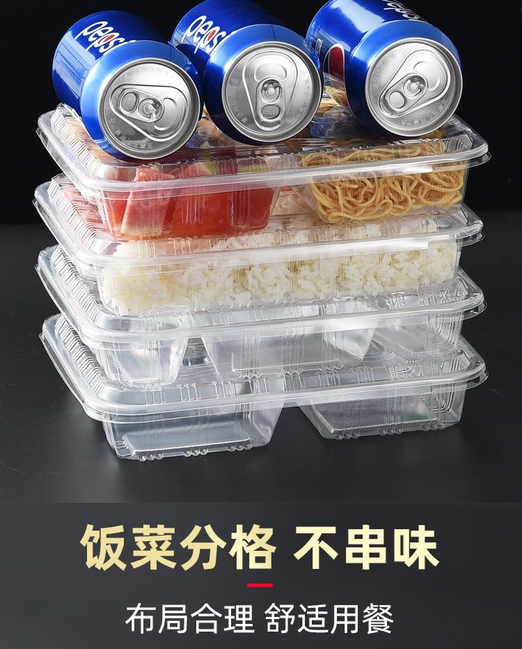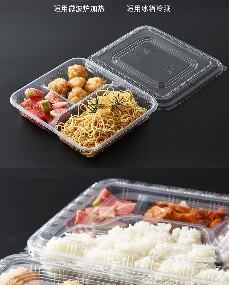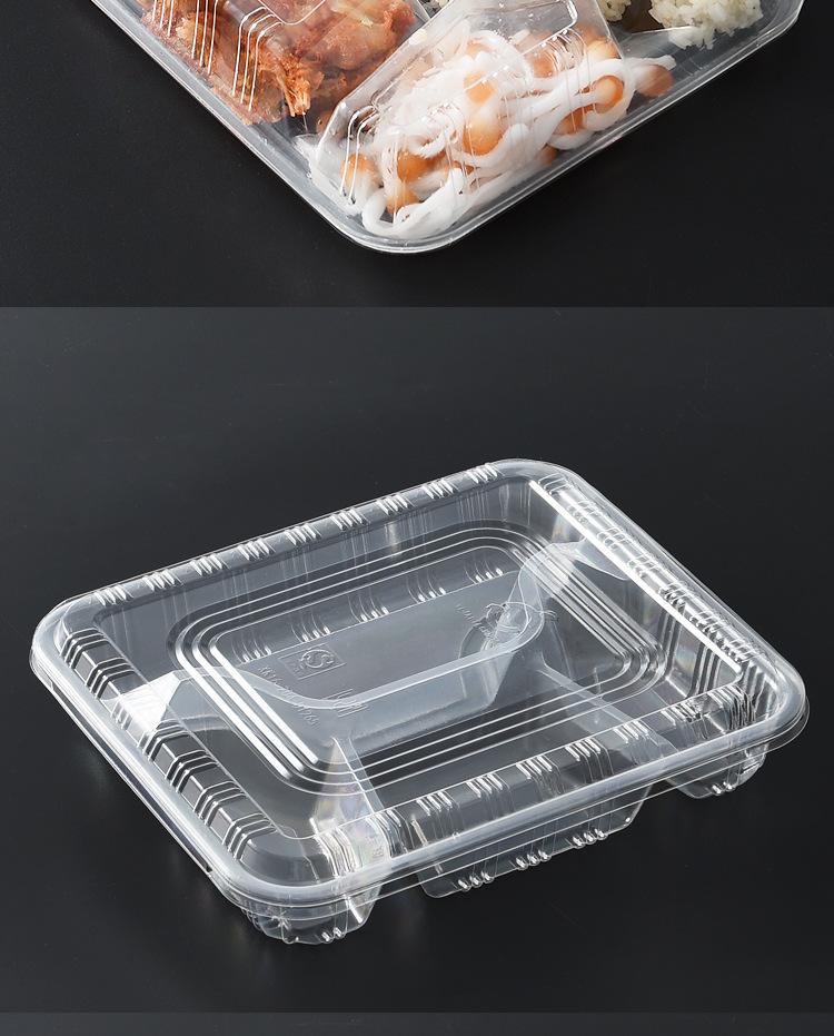 Lonchera desechable para llevar, caja de embalaje, tres compartimentos, cuatro compartimentos, lonchera rectangular, caja de refrigerios transparente, lonchera engrosada con tapa