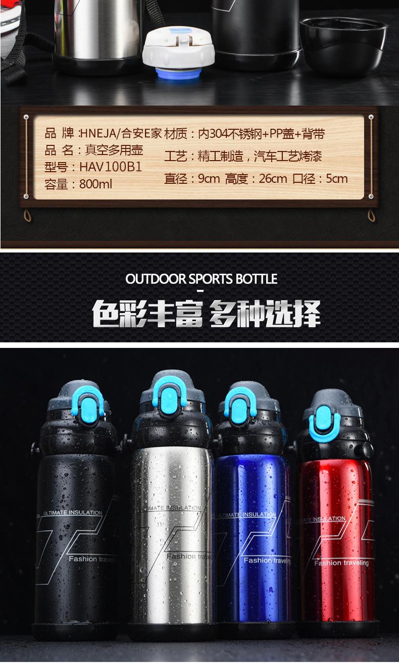 El hervidor multiusos al vacío Hean Ejia B1 está hecho de acero inoxidable 304. El hervidor de boca ancha y gran capacidad de 800 ml puede satisfacer las necesidades de agua potable de toda la familia cuando se viaja al aire libre.El hervidor se puede usar tanto para fines calientes como fríos. Tiene un diseño de doble tapa y un fondo de plástico antideslizante para evitar rayones en la superficie del hervidor de viaje. Viene con una correa para el hombro para facilitar su transporte.