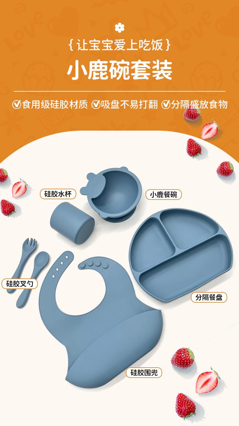 Nuevo Set de Plato de Cena de Silicona para Bebé Grado Alimenticio Vajilla para Alimentación Plato de Cena de Silicona Anticaída para Bebé Tazón Vaso de Agua