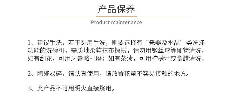 Descripción del producto: Todos los productos que vendemos son de porcelana de primera calidad, sin defectos. Sin embargo, debido a las limitaciones técnicas actuales y al precio, algunos presentan irregularidades, manchas negras y poros. Esto se debe a factores como la irregularidad del agua y la suciedad en la arcilla de porcelana durante el proceso de cocción a alta temperatura, factores que no se pueden evitar por completo. Nuestra inspección de calidad se realiza de acuerdo con los estándares nacionales de calidad superior. Gracias por su comprensión y esperamos sinceramente poder colaborar con usted.