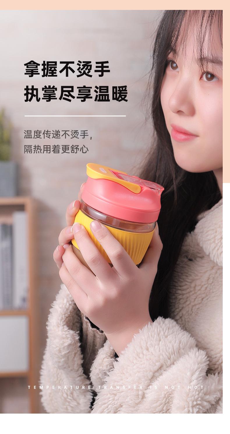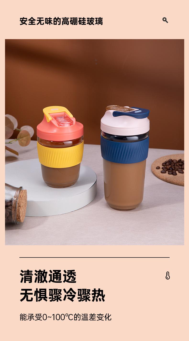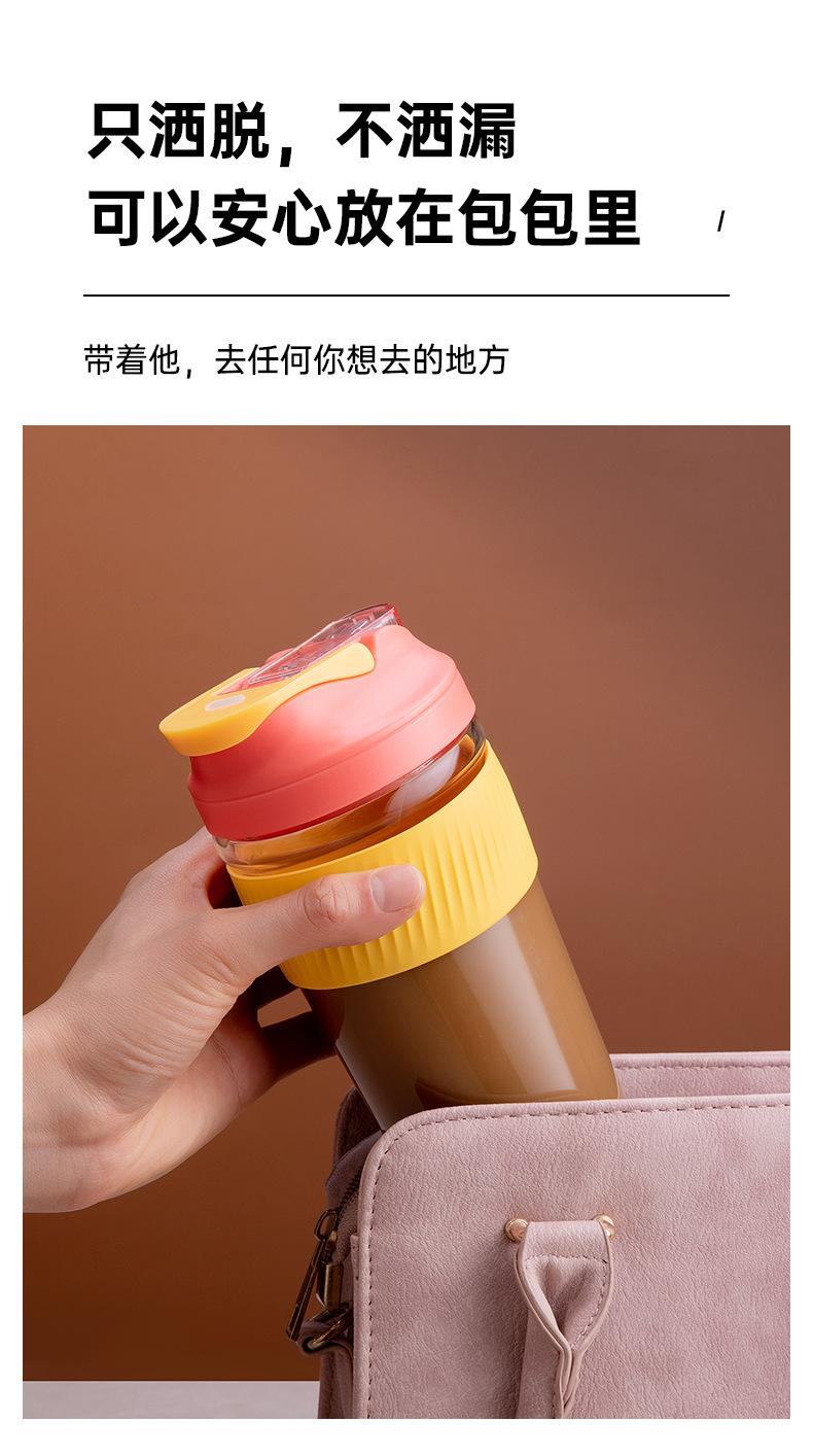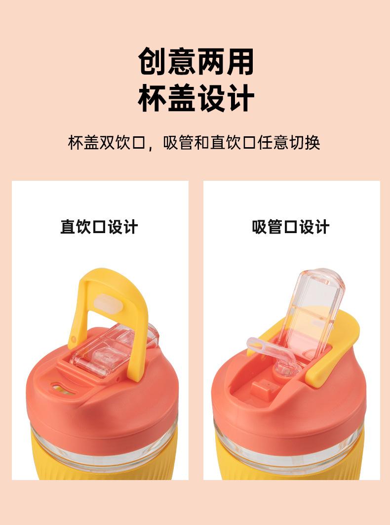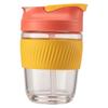 Taza de café de vidrio con tapa, de doble uso, linda taza de agua portátil transparente con pajita, taza de oficina simple de gran capacidad