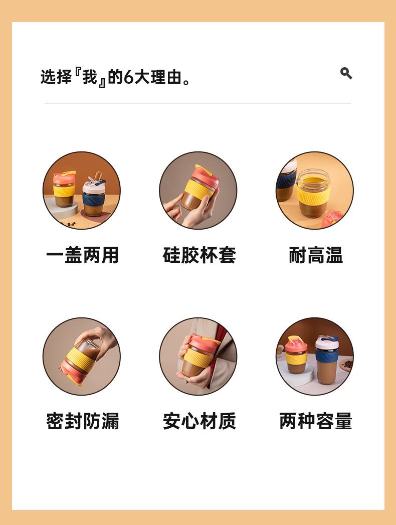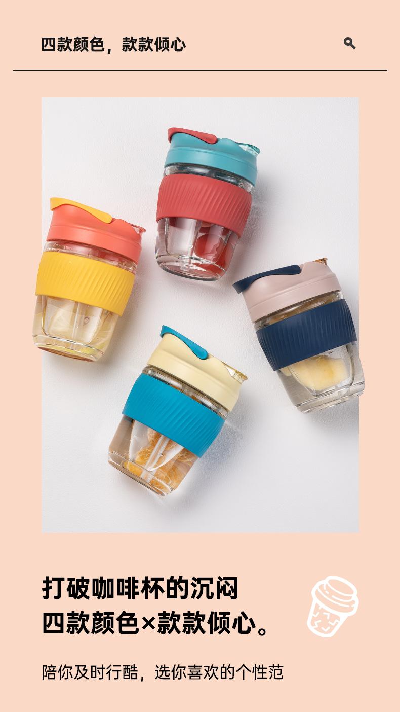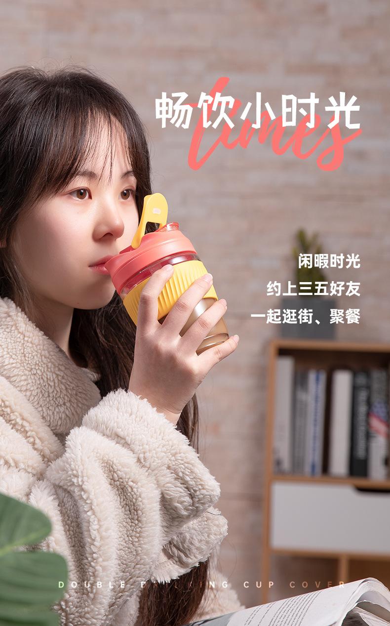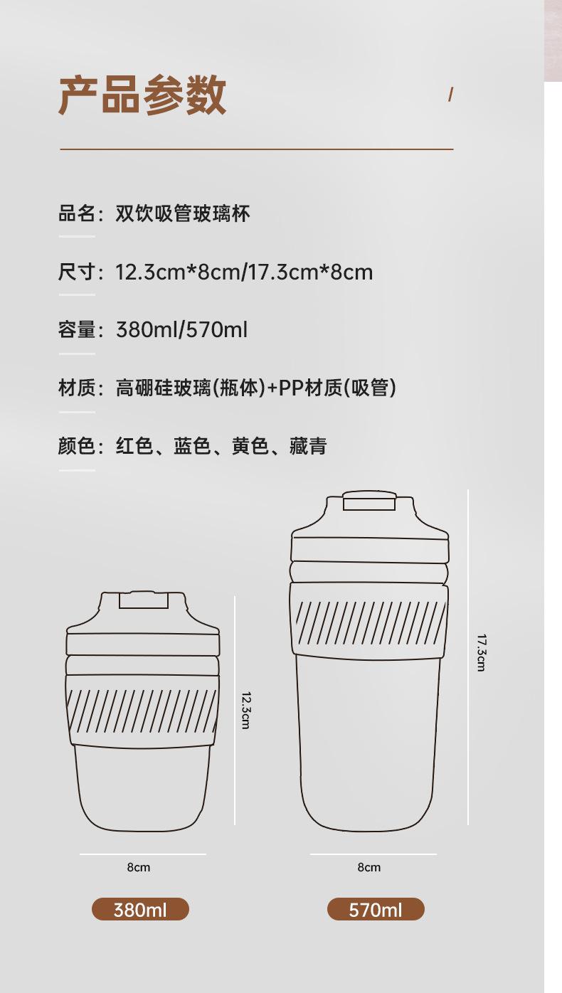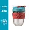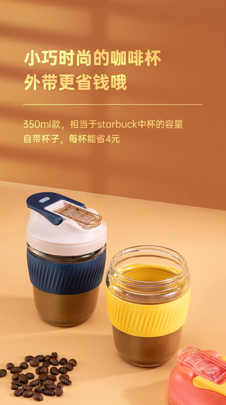 Taza de café de vidrio con tapa, de doble uso, linda taza de agua portátil transparente con pajita, taza de oficina simple de gran capacidad