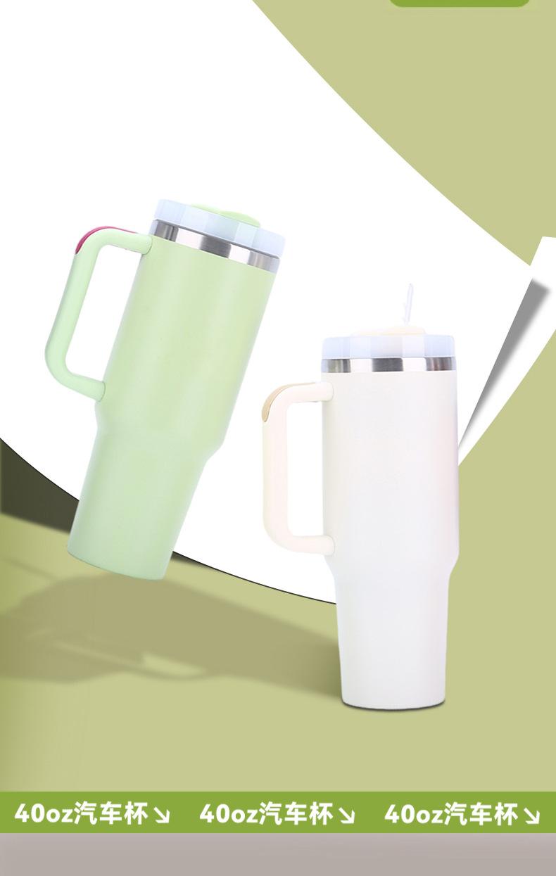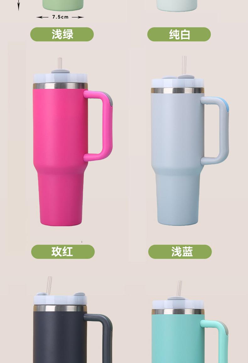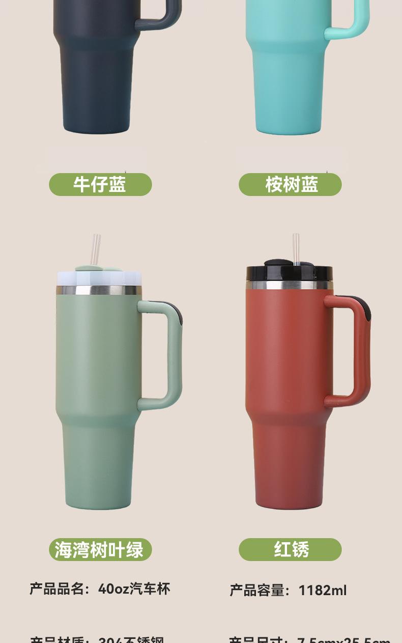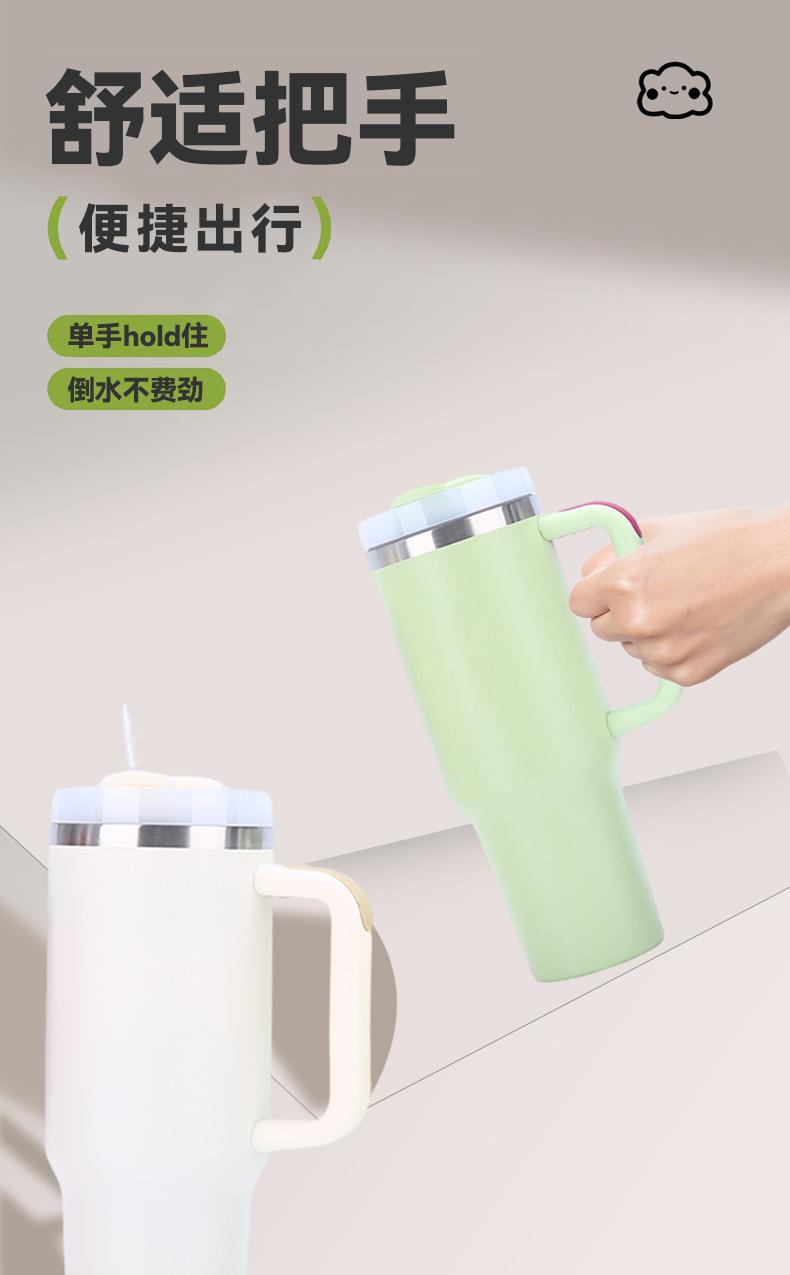 Taza para coche de 40 oz de segunda generación de gran capacidad transfronteriza con asa, taza de acero inoxidable con tubo de succión, taza para hielo para deportes al aire libre