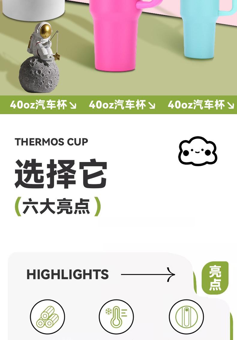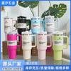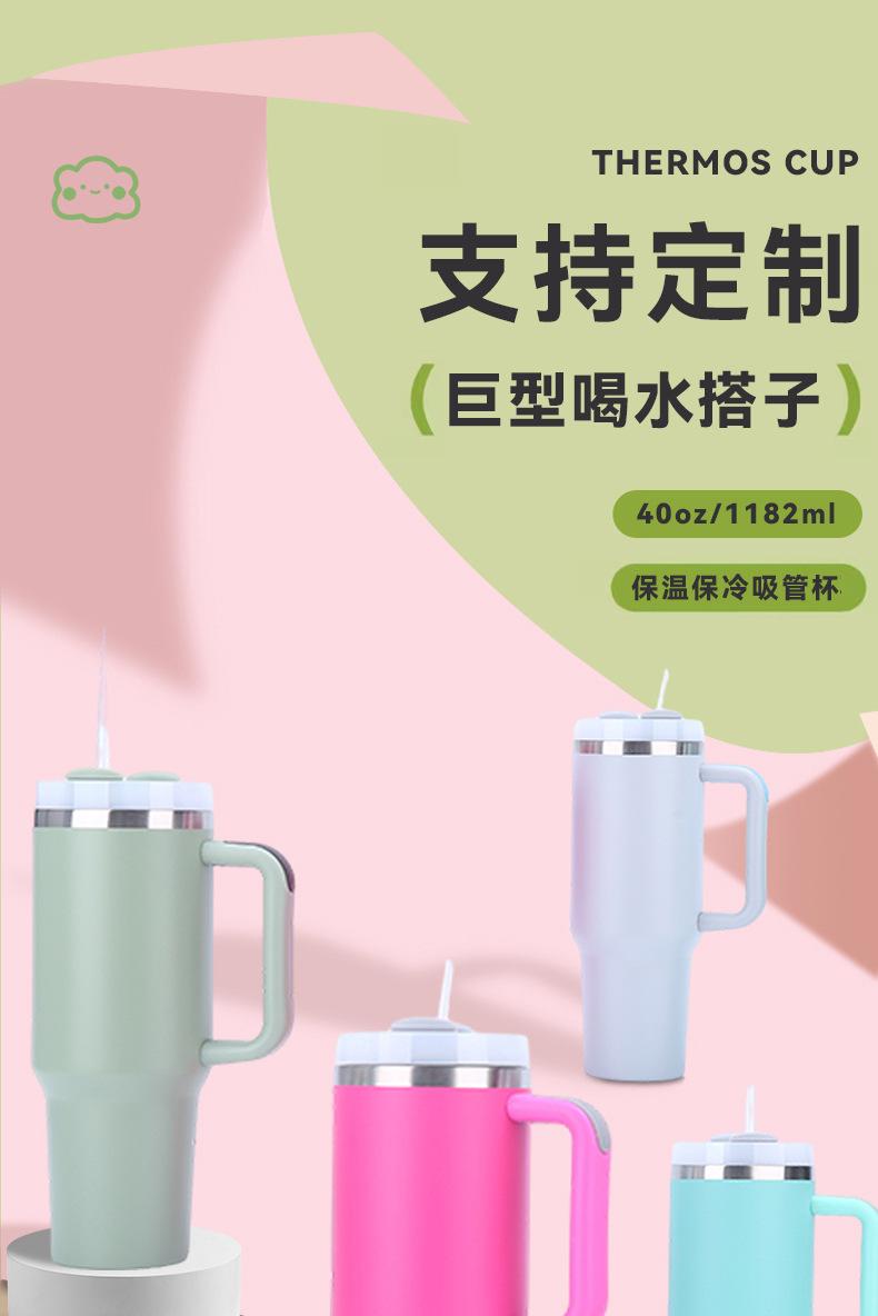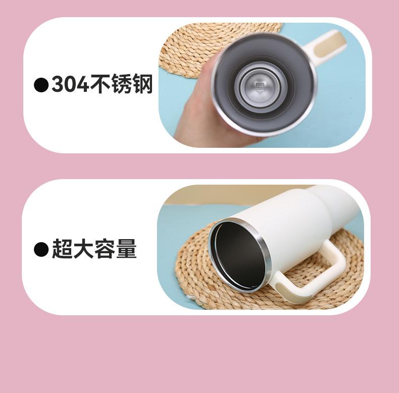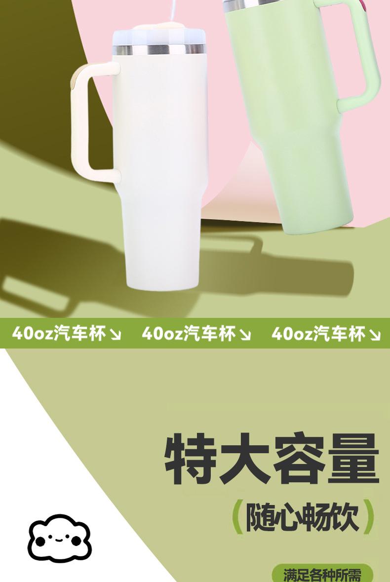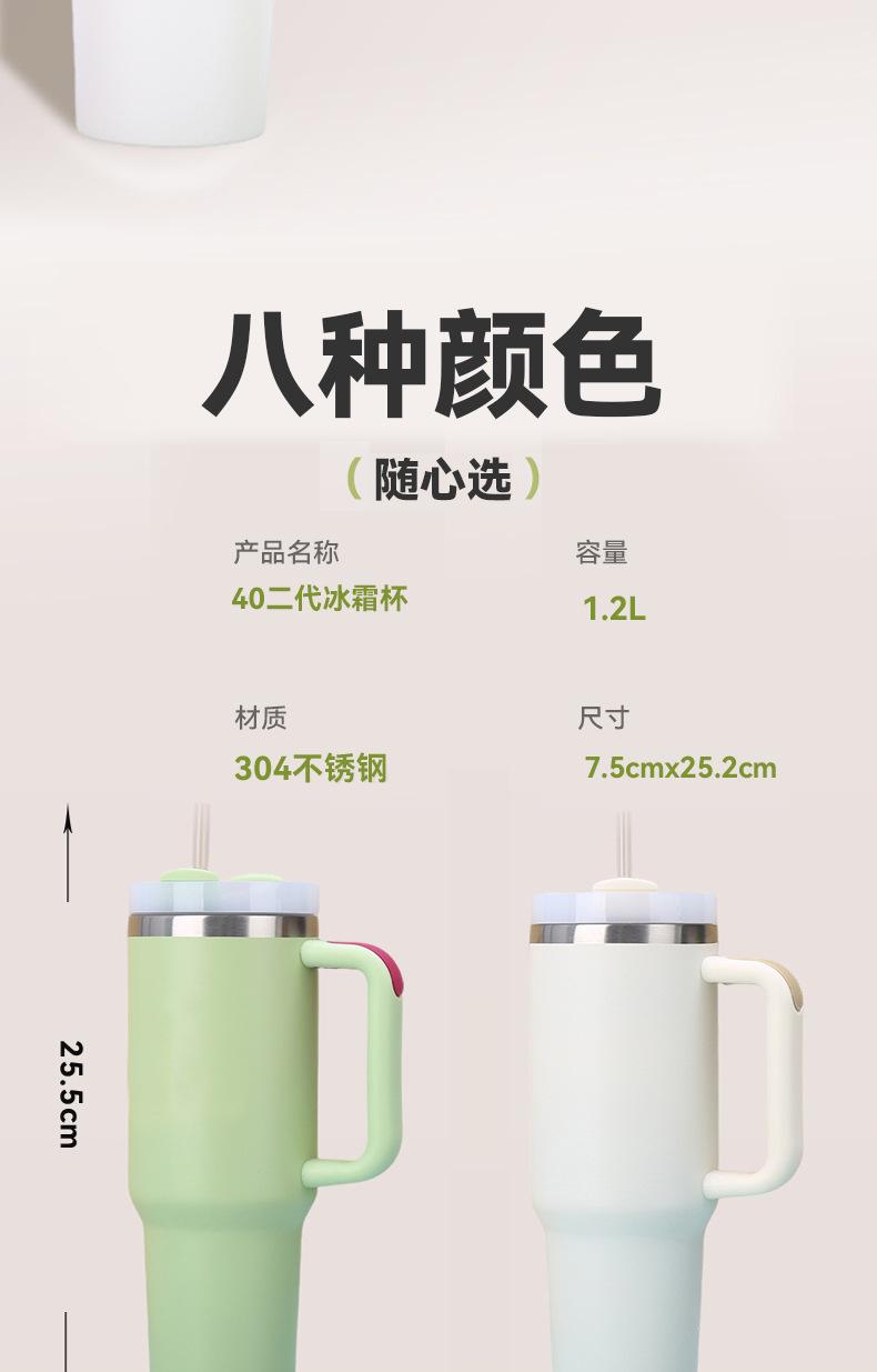 Taza para coche de 40 oz de segunda generación de gran capacidad transfronteriza con asa, taza de acero inoxidable con tubo de succión, taza para hielo para deportes al aire libre