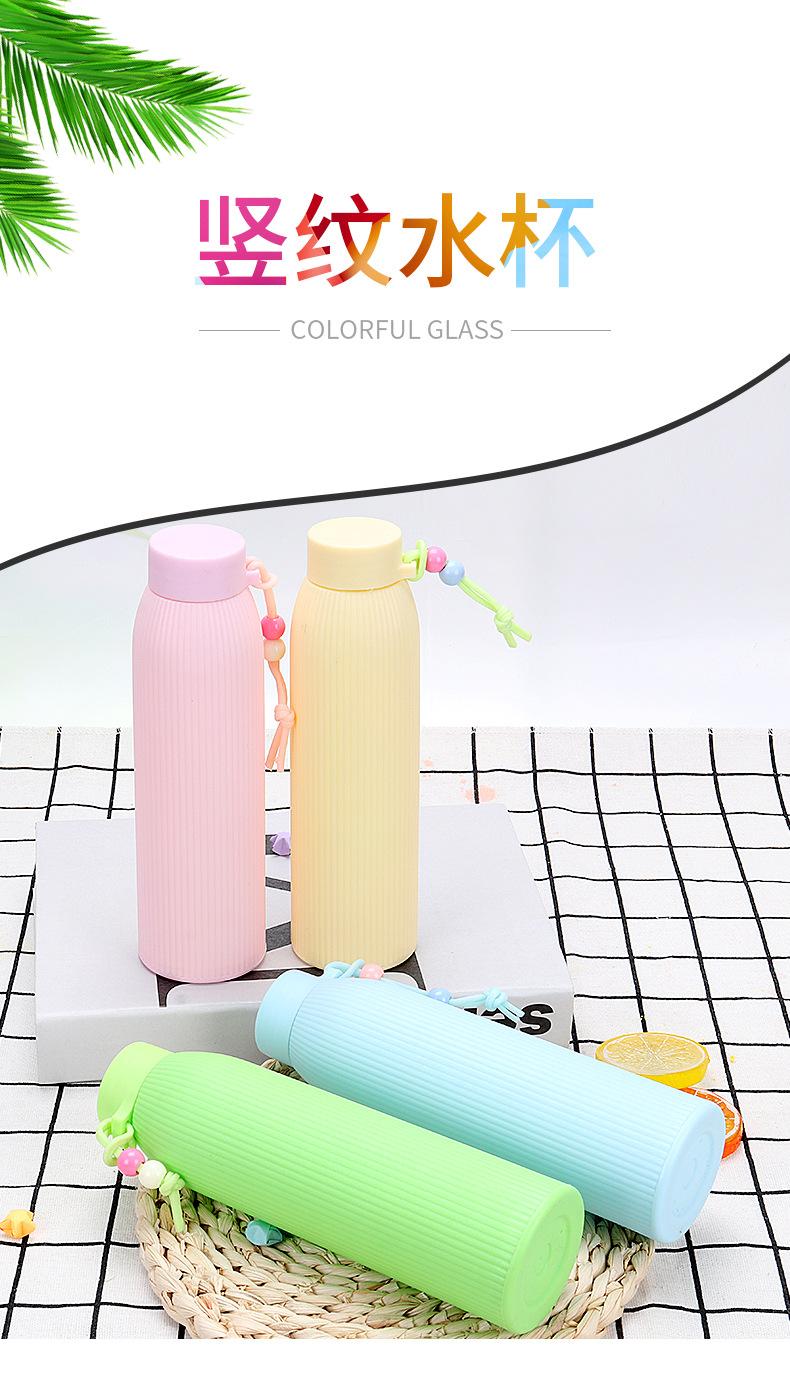 Fabricante Vaso de Agua de Vidrio de Color Sólido con Rayas Verticales Estudiante Vaso de Agua Pequeño Fresco Vaso Portátil Vaso Publicitario
