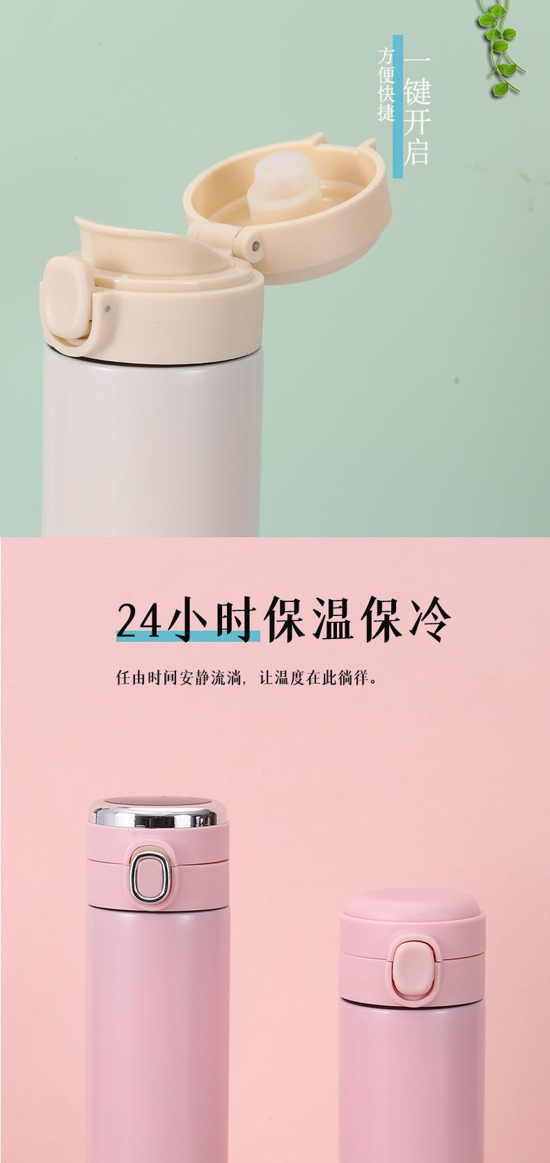 Taza termo portátil pequeña y fresca de acero inoxidable 304 con tapa de rebote simple, de alto valor de color, para estudiantes, venta al por mayor