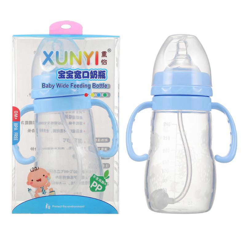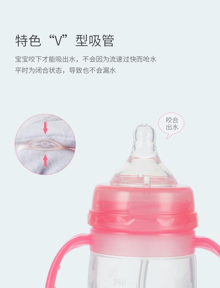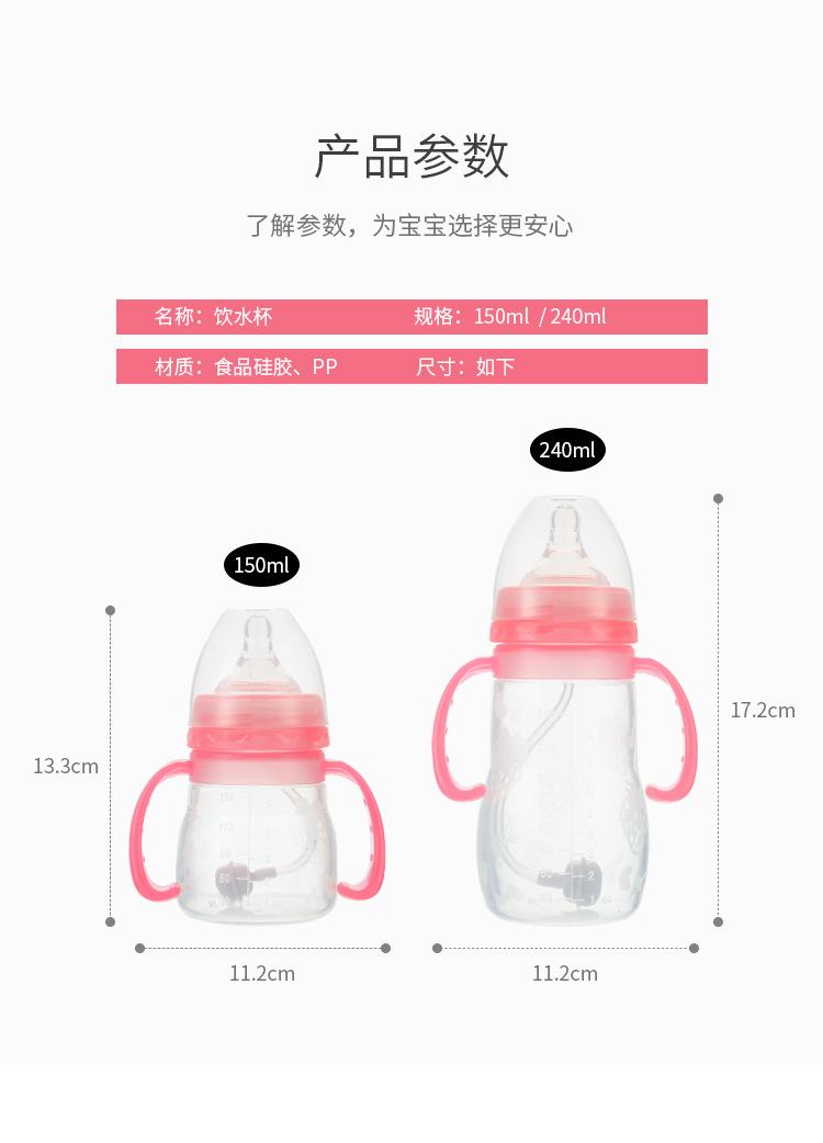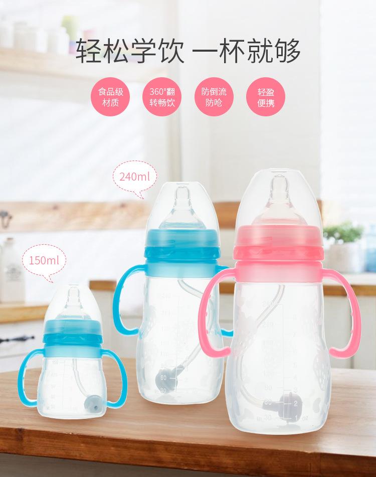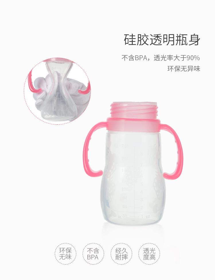 Biberón de silicona para bebé de 150 ml de diámetro ancho con asa, tetina de silicona resistente a caídas, biberón de 240 ml.