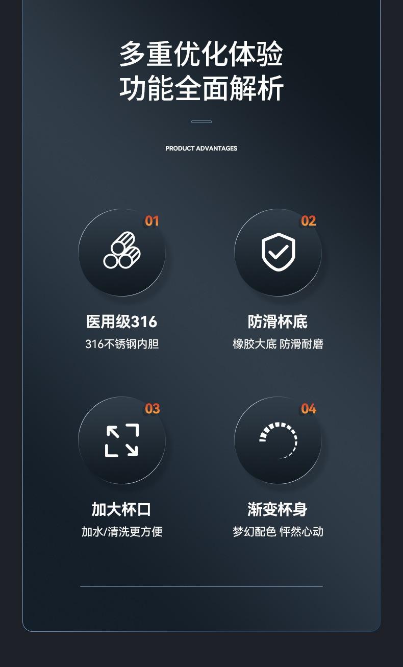 Nueva taza térmica de acero inoxidable 316, creativa y elegante, portátil, para exteriores, para coche.