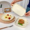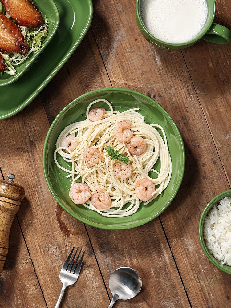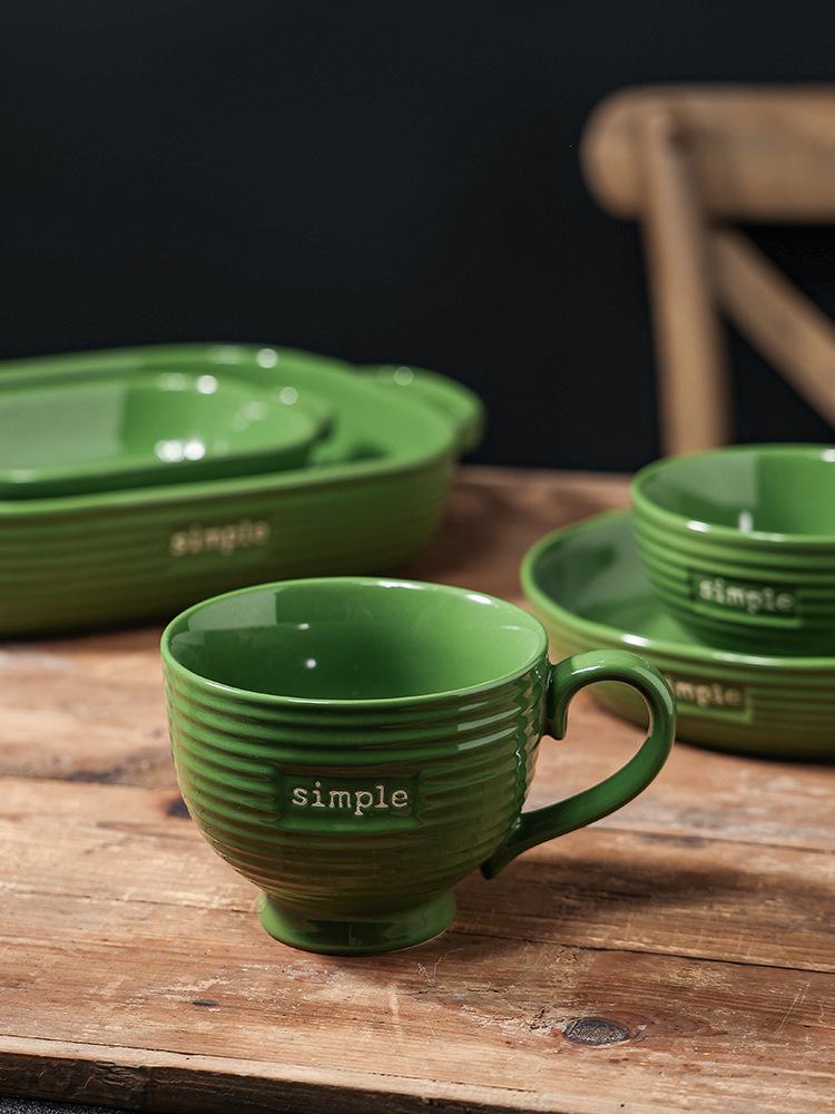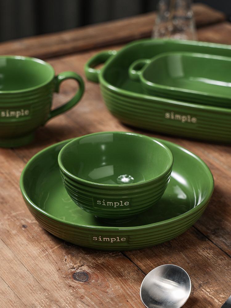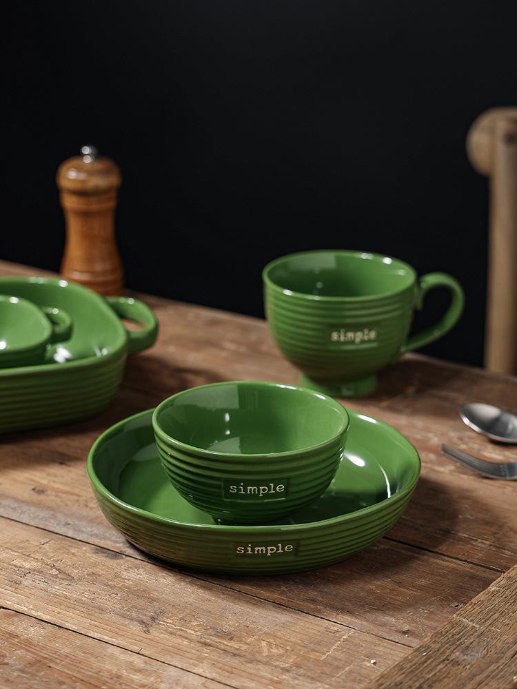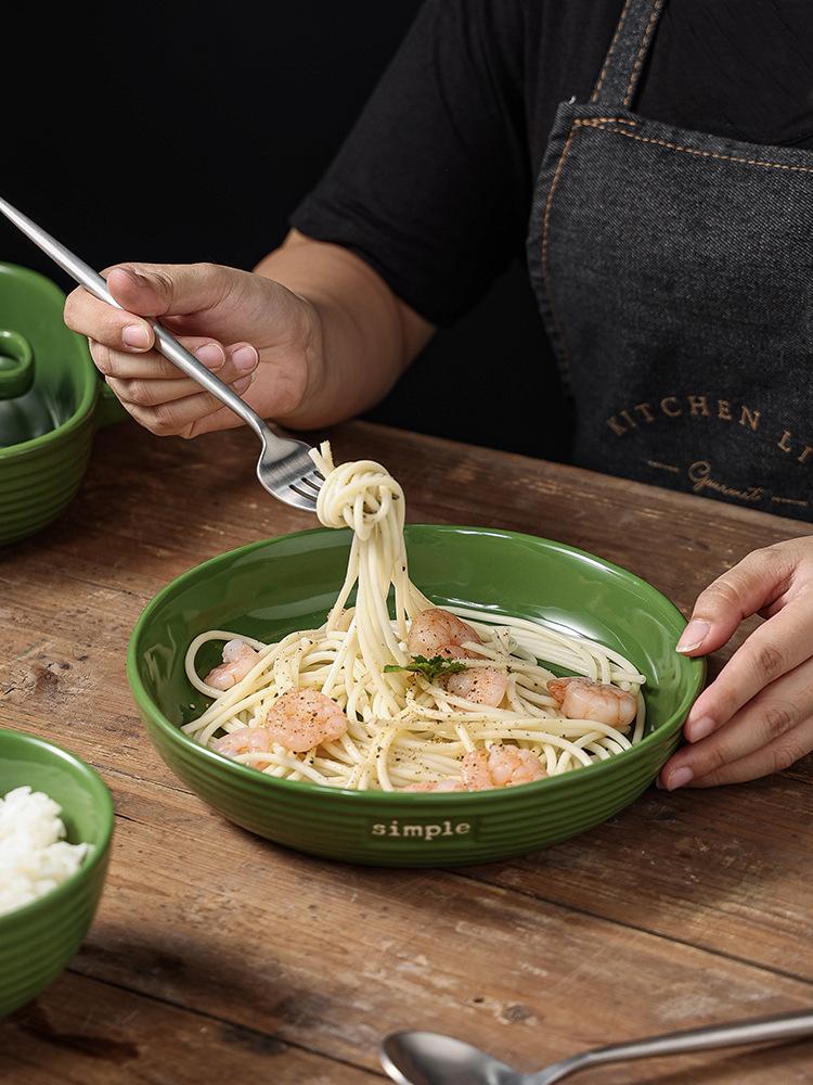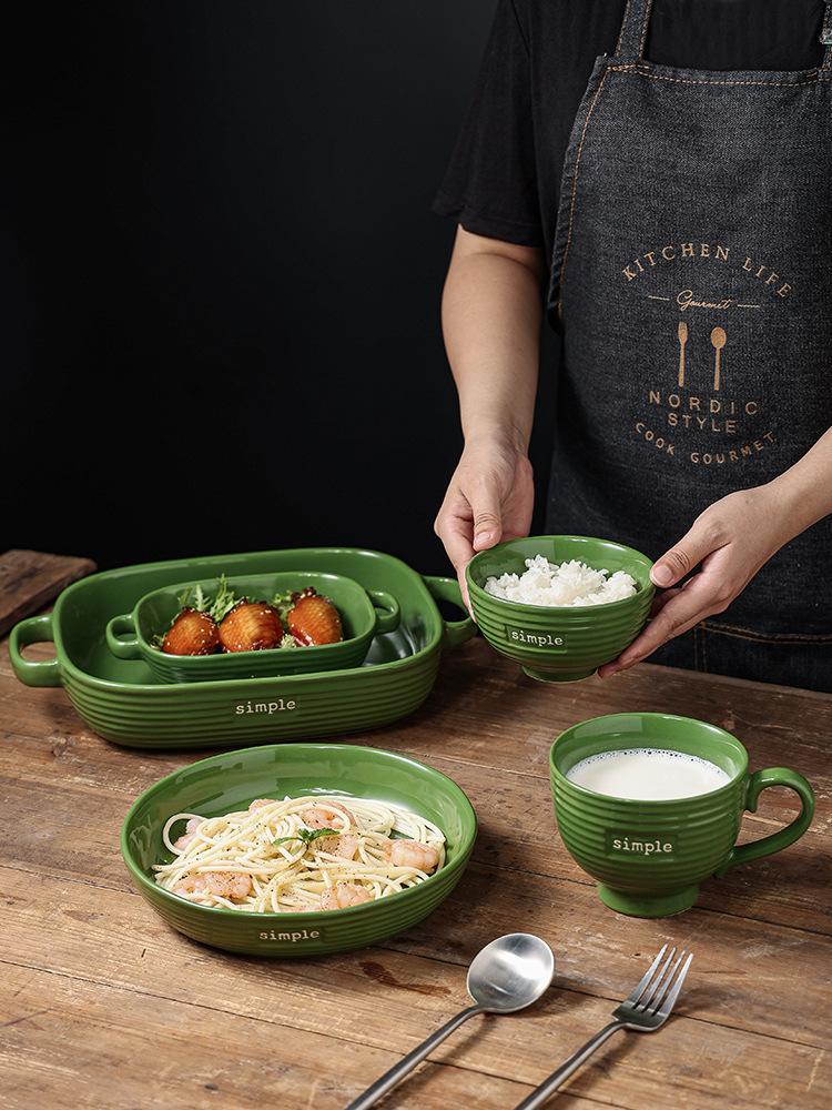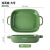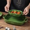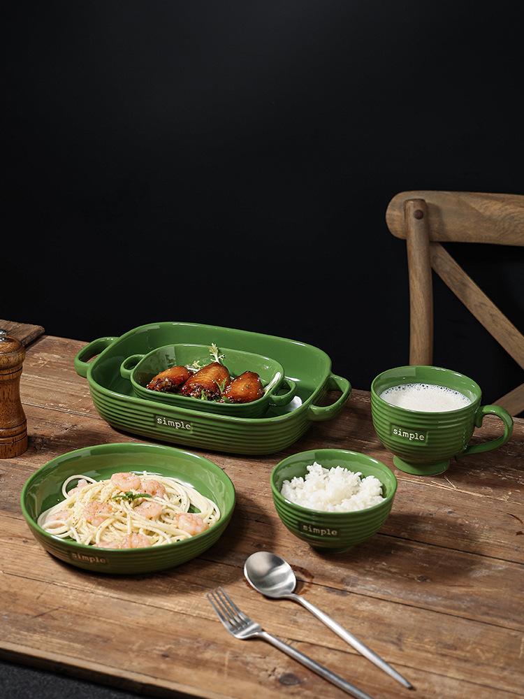 Plato de cena de cerámica creativo Huafu, rectangular, binaural, para horno doméstico, sopa, ensalada, color verde oscuro