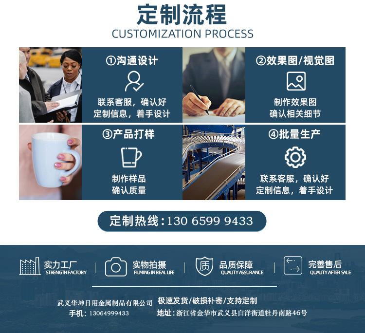 Nuestra empresa se encuentra en el condado de Wuyi, Jinhua, la capital de la ferretería. Llevamos más de 10 años en la industria de las tazas. Basándonos en el principio de honestidad y en que el cliente es nuestro Dios, brindamos con diligencia servicios y productos de alta calidad a nuestros clientes. Además, somos una empresa integral de alta calidad que integra producción y ventas.