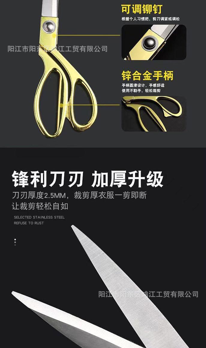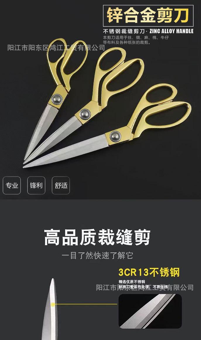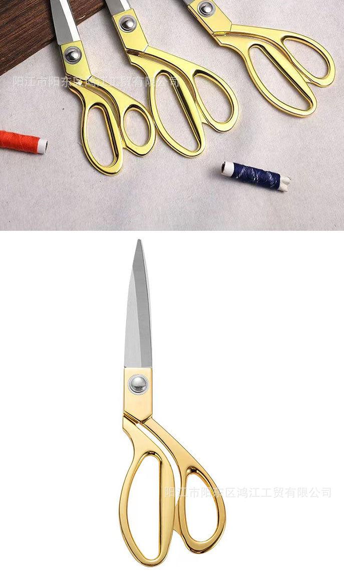 Tijeras de sastre de acero inoxidable al por mayor, tijeras grandes de aleación galvanizada, tijeras de costura, tijeras para ropa, tela, cuero, tijeras doradas