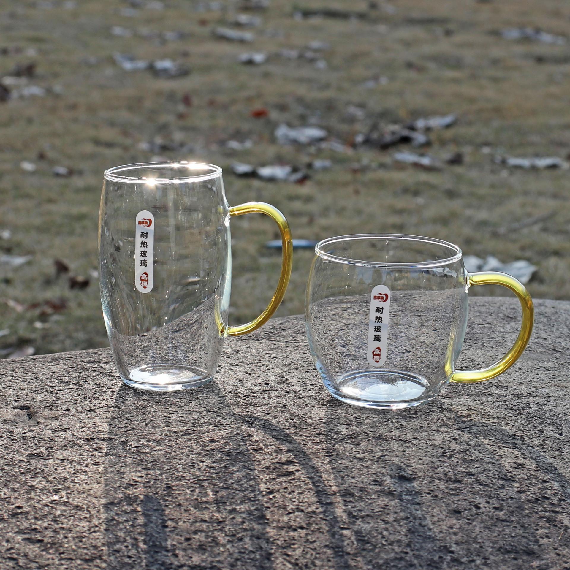 Taza de té de vidrio resistente al calor con asa, simple, de gran capacidad, taza transparente para el hogar, juego de té de vidrio para hombres y mujeres