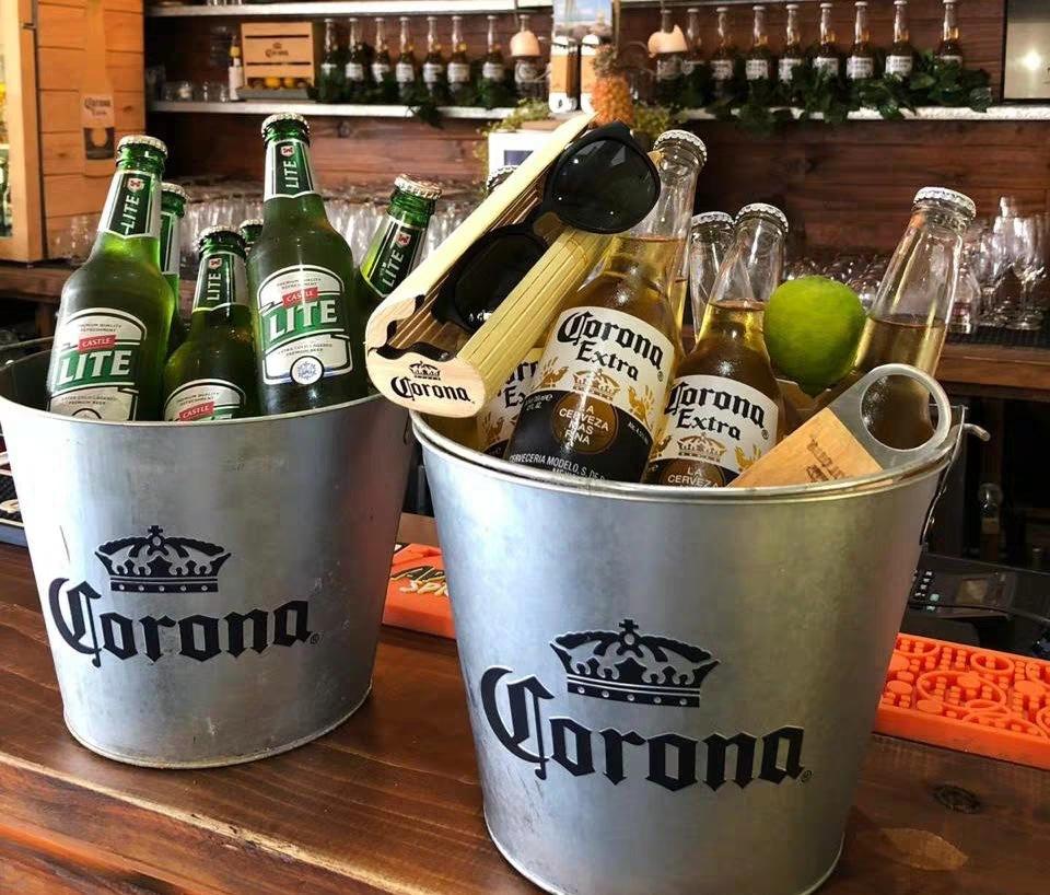 Cubo de hielo retro portátil de hierro para el hogar, cubo de hielo para exteriores, cubo de champán, cubo de hielo para vino y cerveza, cubo de hielo para karaoke y bar.