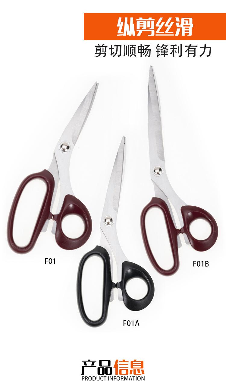 Fábrica al por mayor F01 tijeras de sastre manual de acero inoxidable para coser, corte de tela, cabeza recta, tijeras grandes domésticas de 10 pulgadas, tijeras para cortar tela
