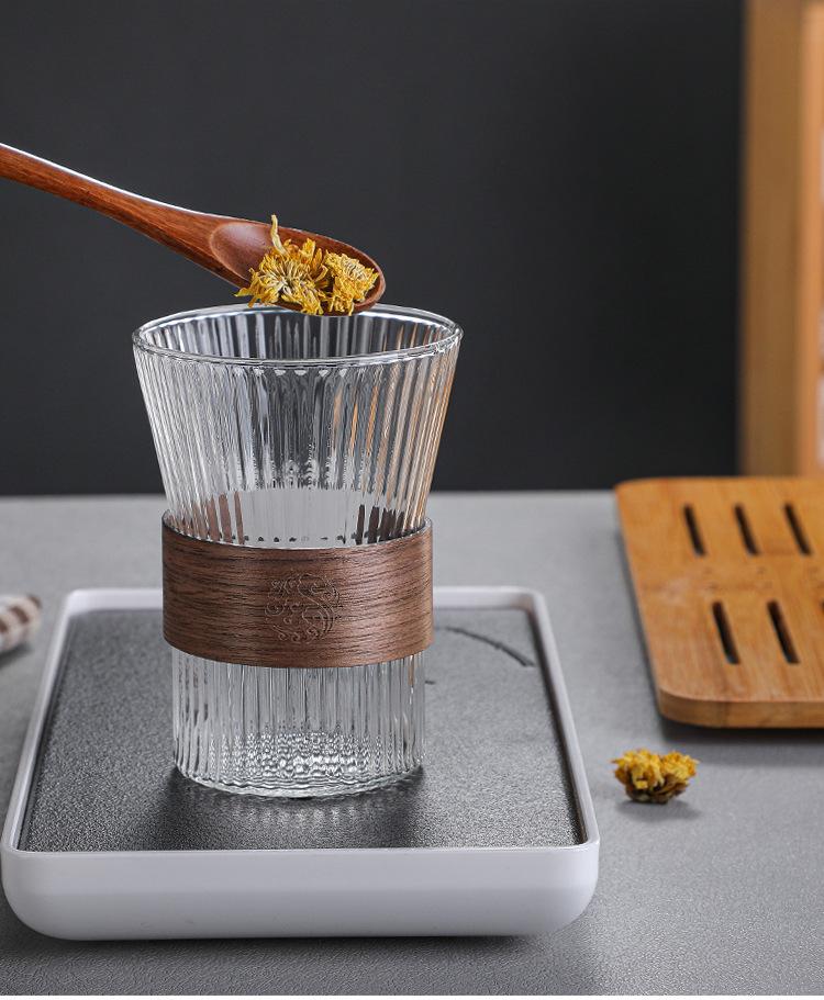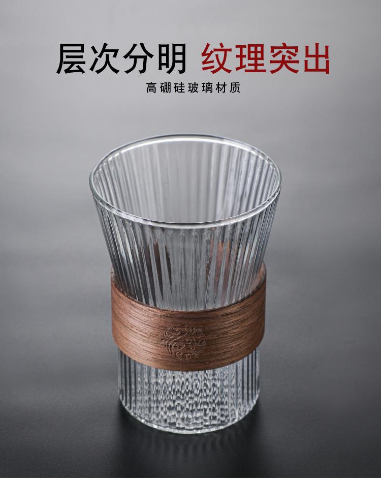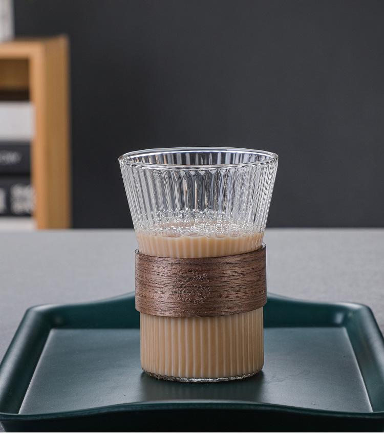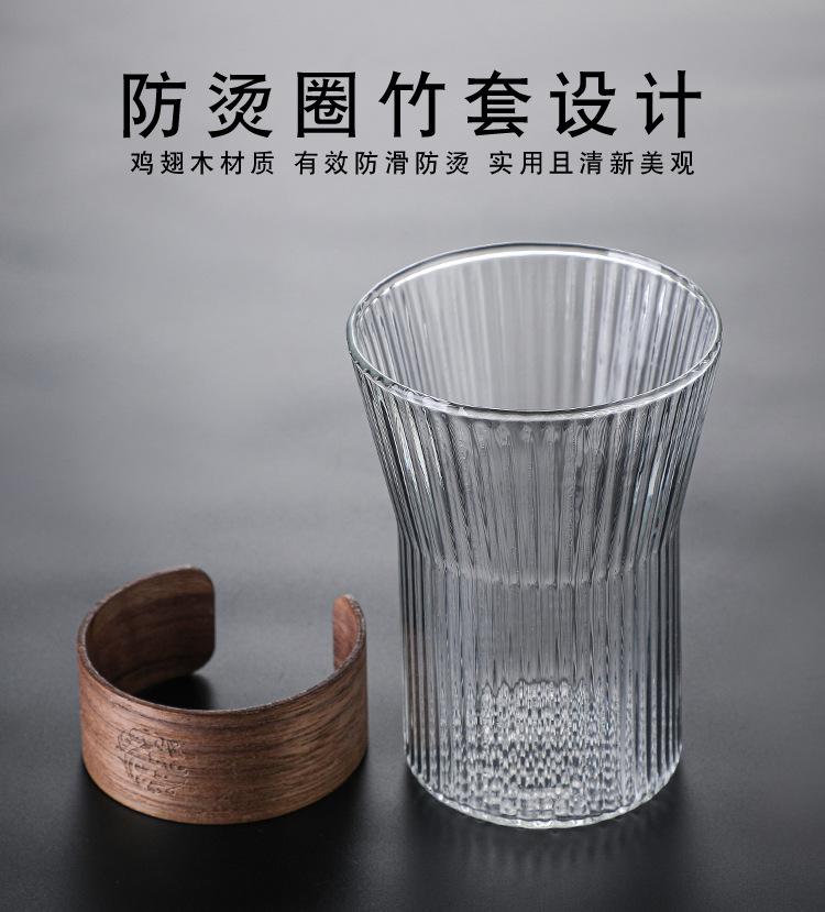 Taza de café japonesa con orejas colgantes, taza de vidrio, taza de té, taza de agua con patrón vertical, taza de té para el hogar, taza de café con leche