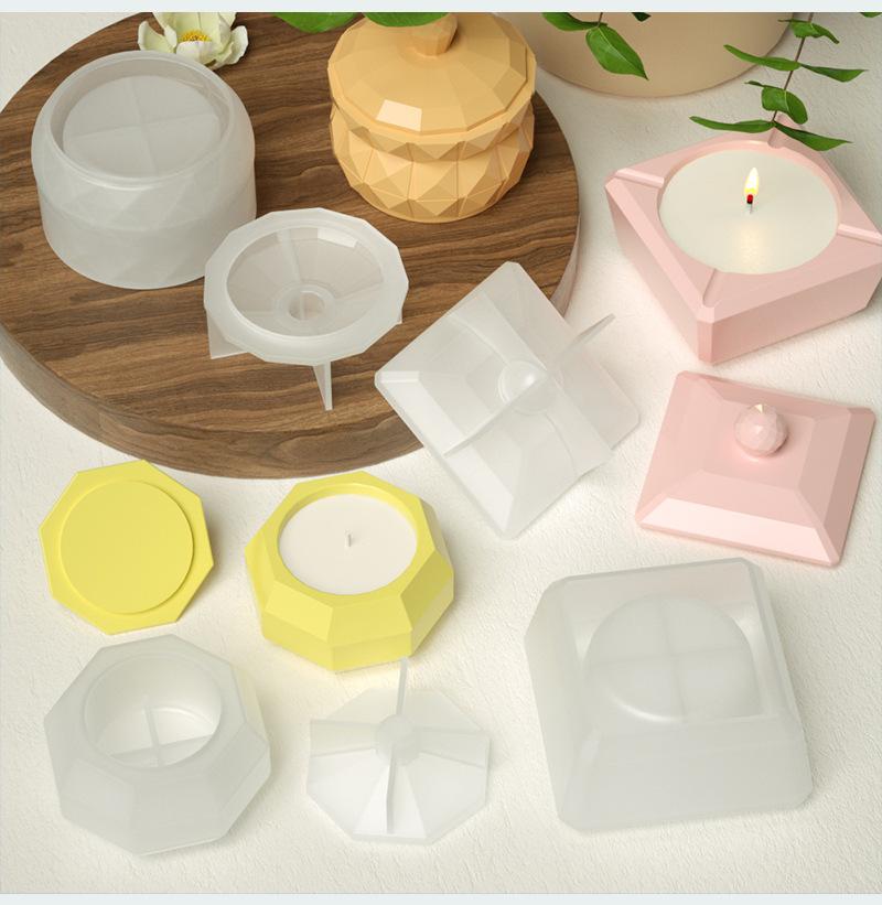 Caja de Almacenamiento Cuadrada Octogonal Facetada de Resina Epoxi DIY Creativo Contenedor para Velas de Aromaterapia Adorno Molde de Silicona