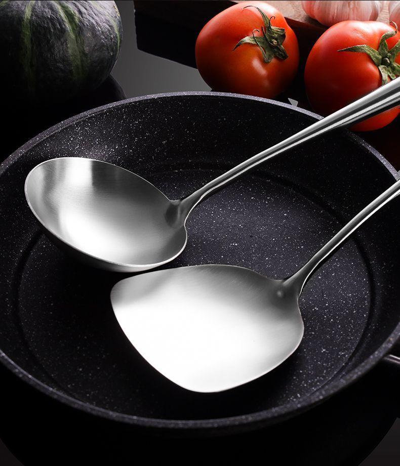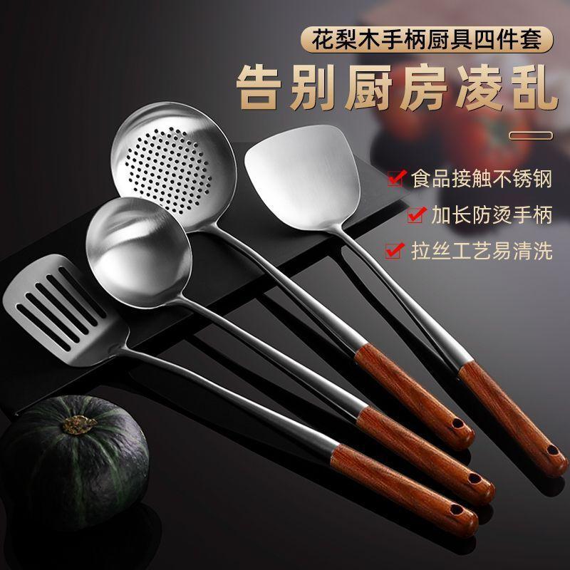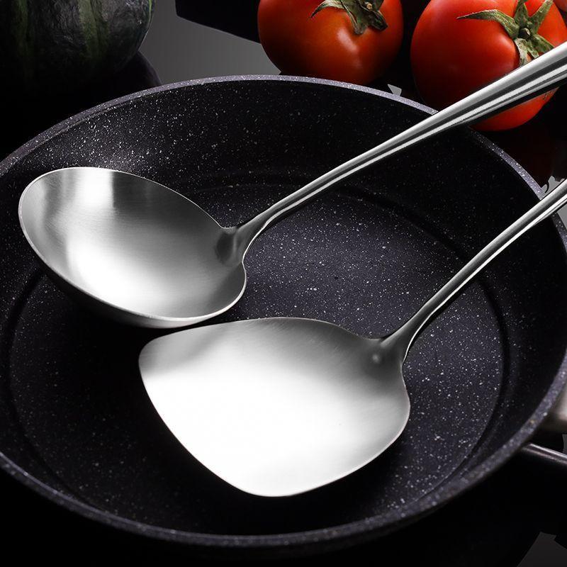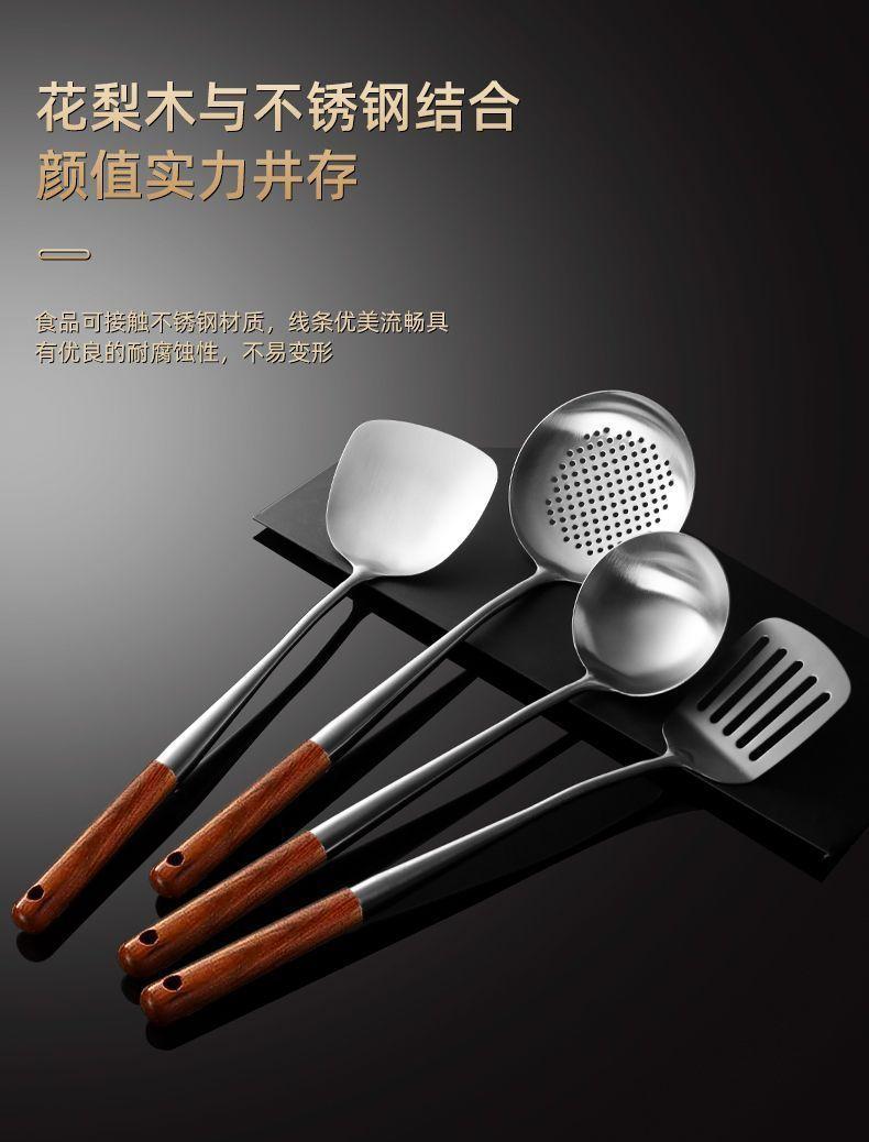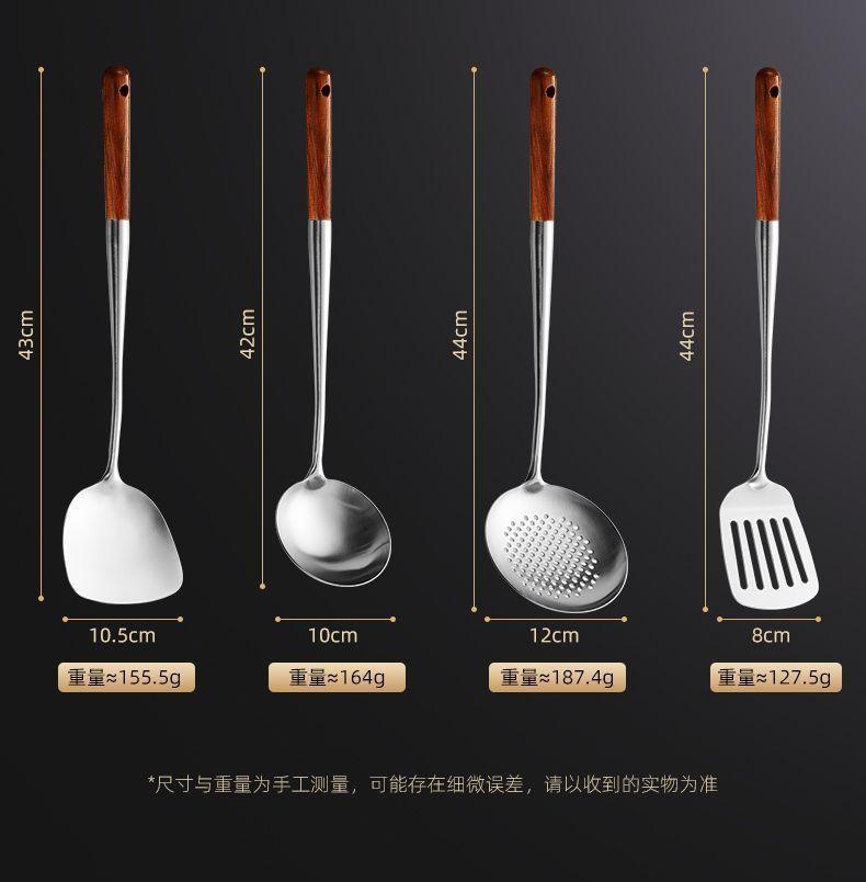 Cuchara de Cocina Especial para Chef de Acero Inoxidable Colador Mango de Madera Cuchara para Cocinar Espátula Acero Inoxidable para el Hogar Engrosado Mango Largo Utensilios de Cocina