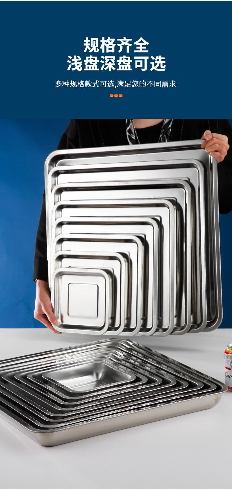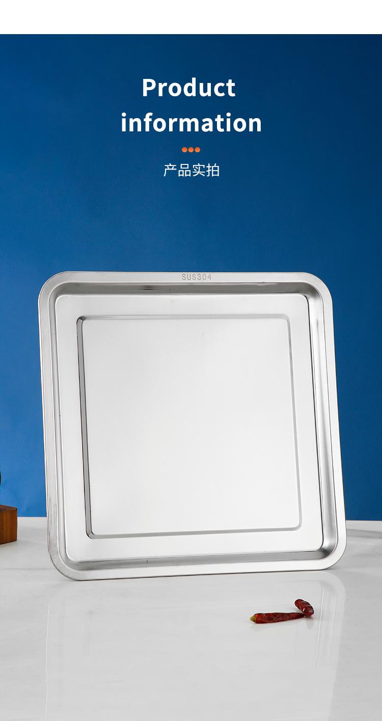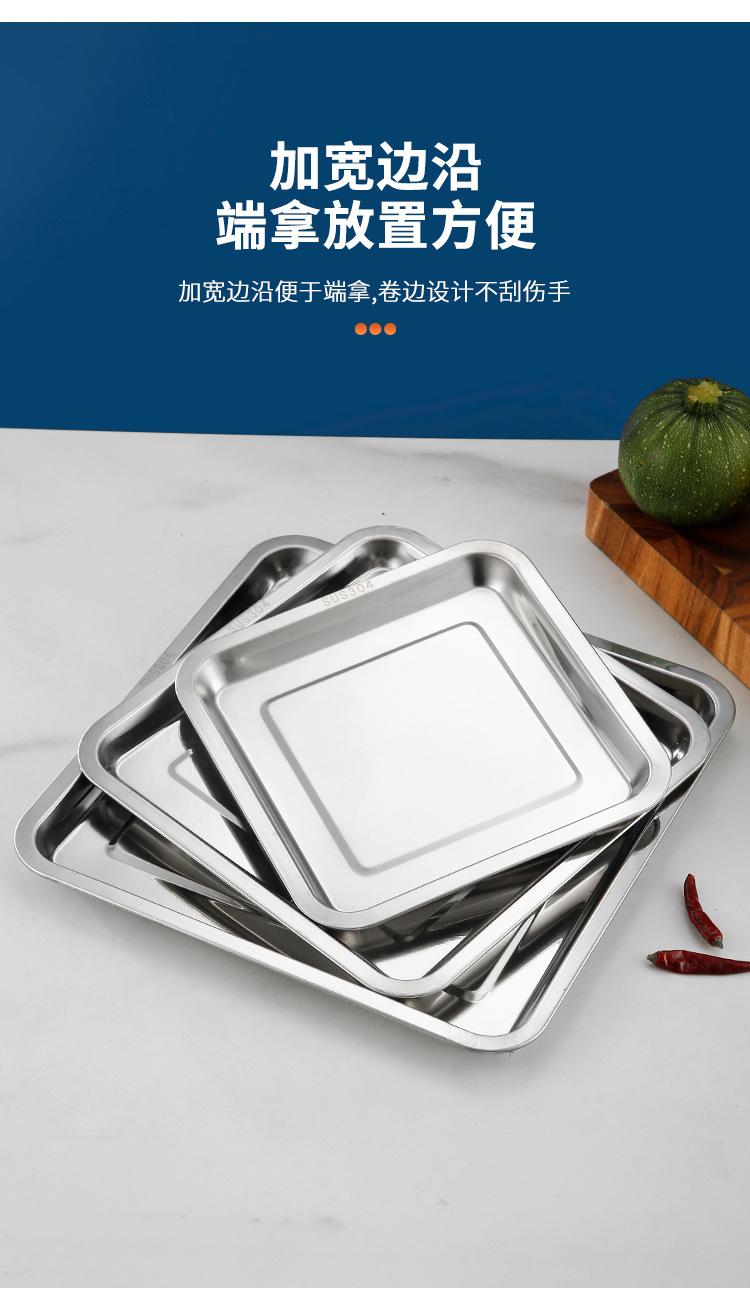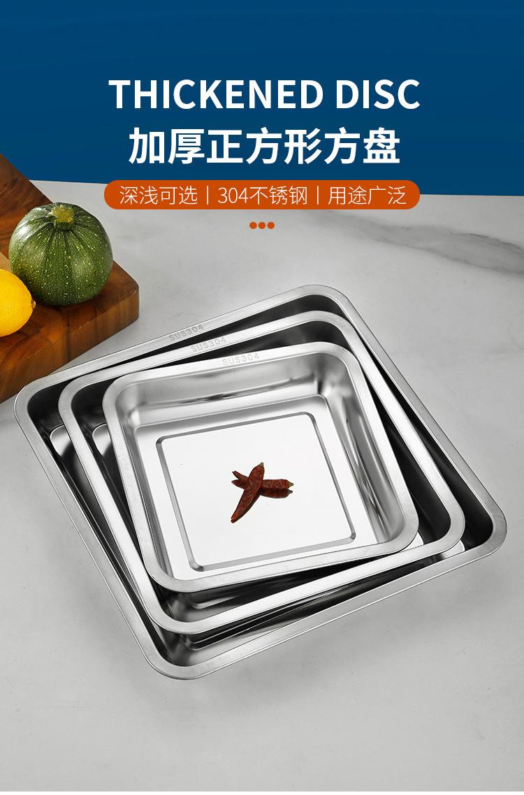 Plato cuadrado de acero inoxidable, plato de arroz, plato de cocina, plato de arroz al vapor, plato de barbacoa, plato de bandeja, plato de fruta, plato de aperitivos