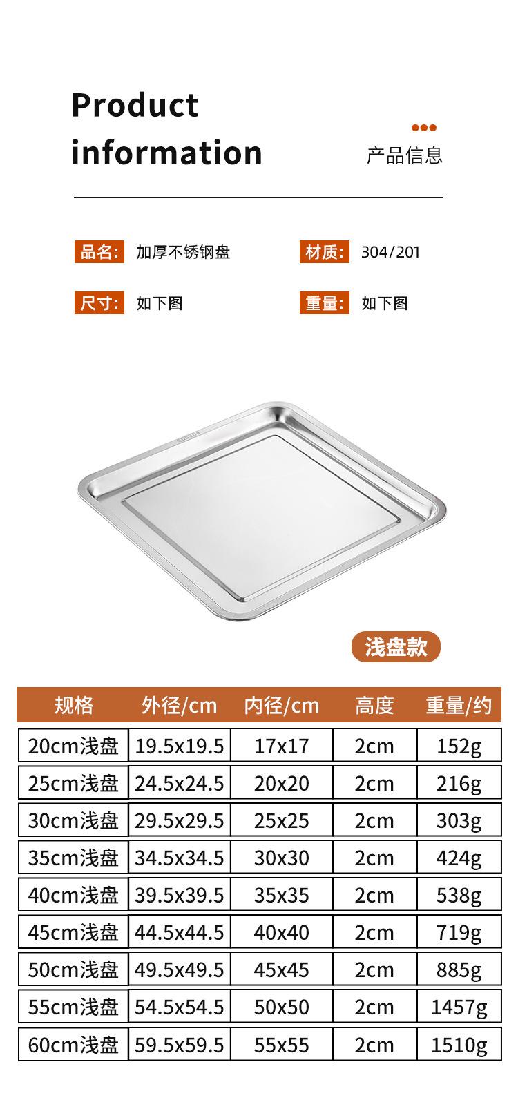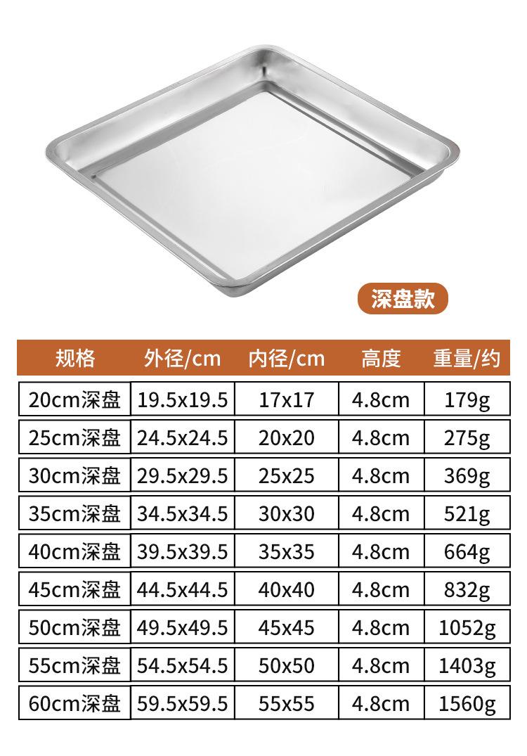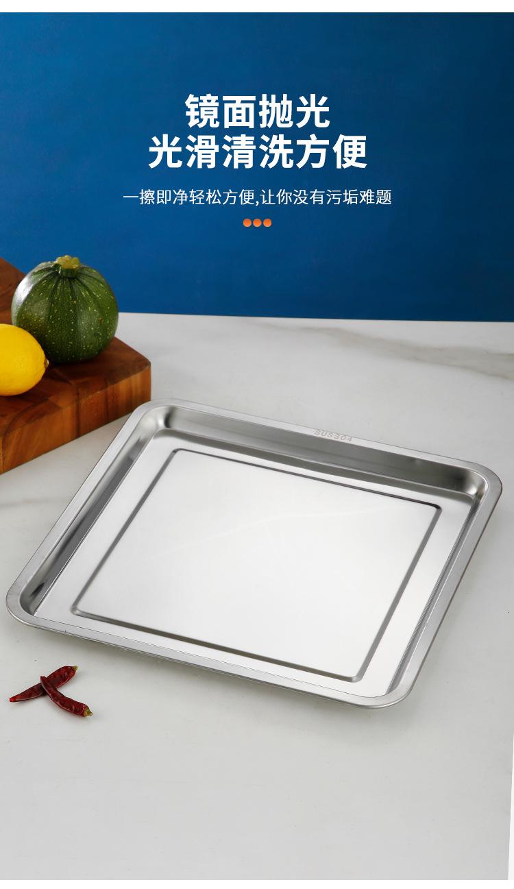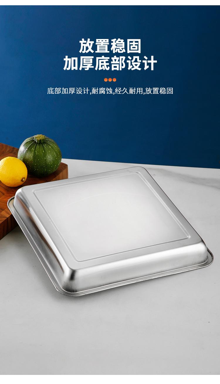 Plato cuadrado de acero inoxidable, plato de arroz, plato de cocina, plato de arroz al vapor, plato de barbacoa, plato de bandeja, plato de fruta, plato de aperitivos