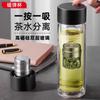 Vaso de vidrio de doble capa para hombre, vaso de agua de gran capacidad, portátil, para negocios, con tapa, separador de té, redondo, estampado.