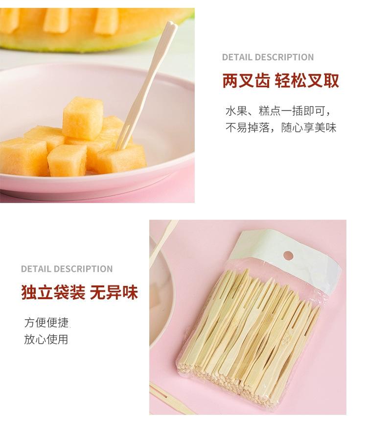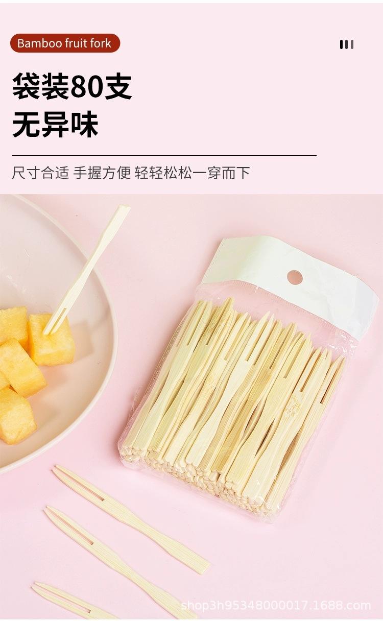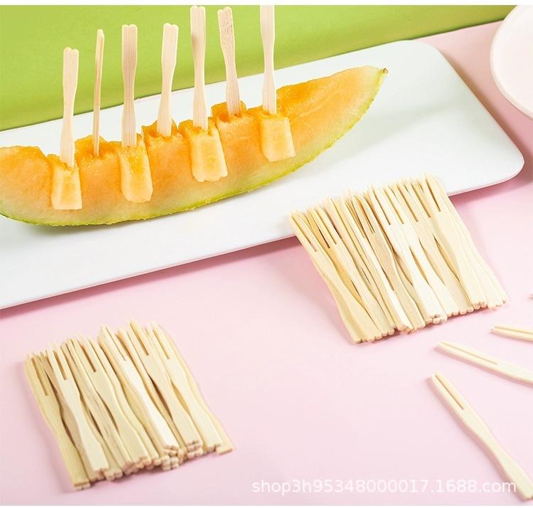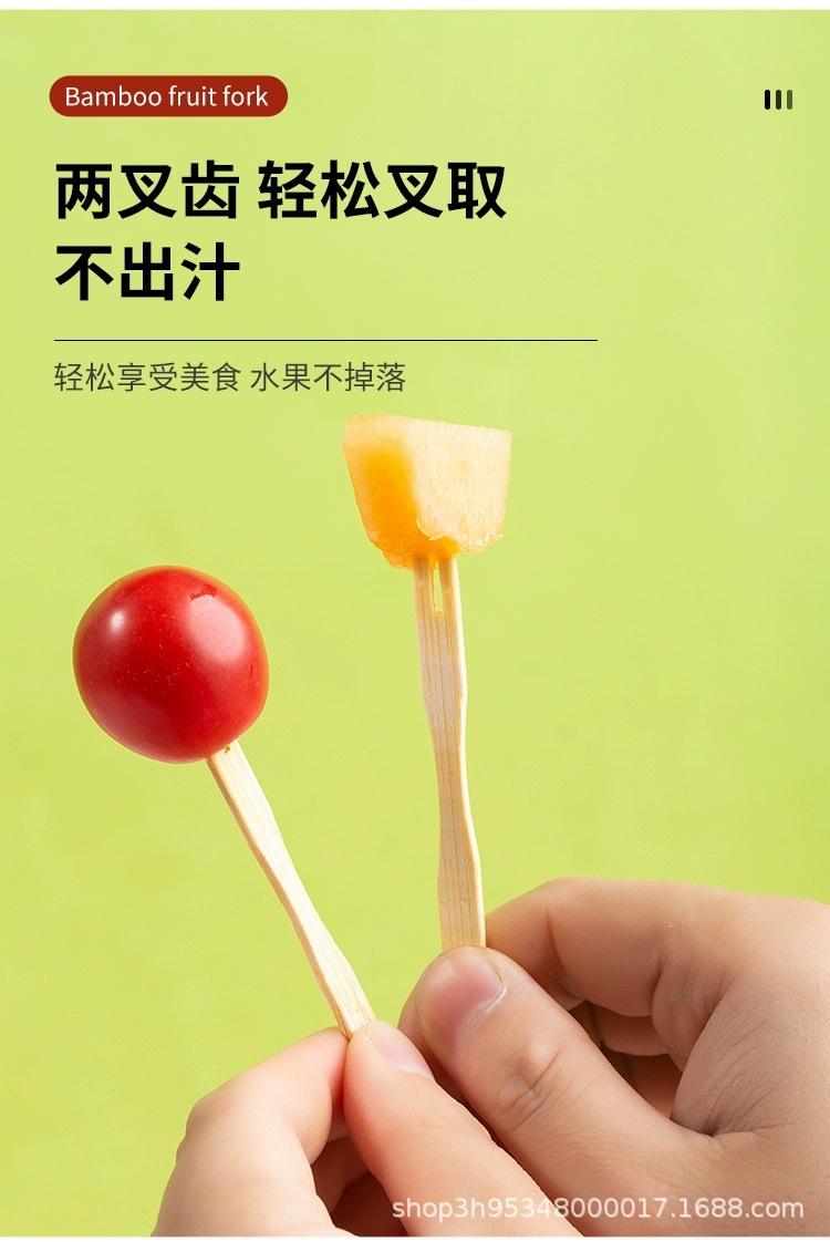 Tenedor de fruta desechable, palito de fruta, tenedor de bambú transparente de plástico creativo, dos tenedores para pastel, tapón de fruta para KTV/bar