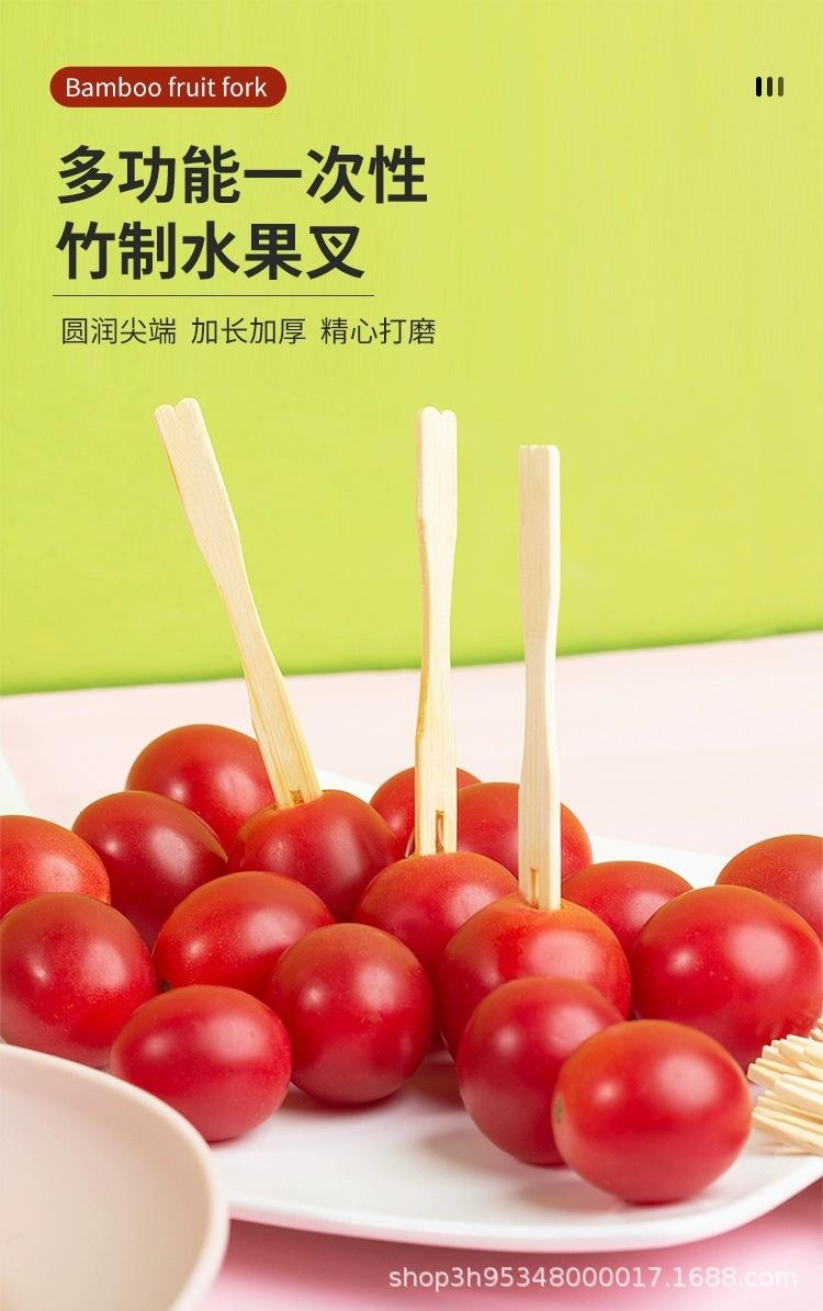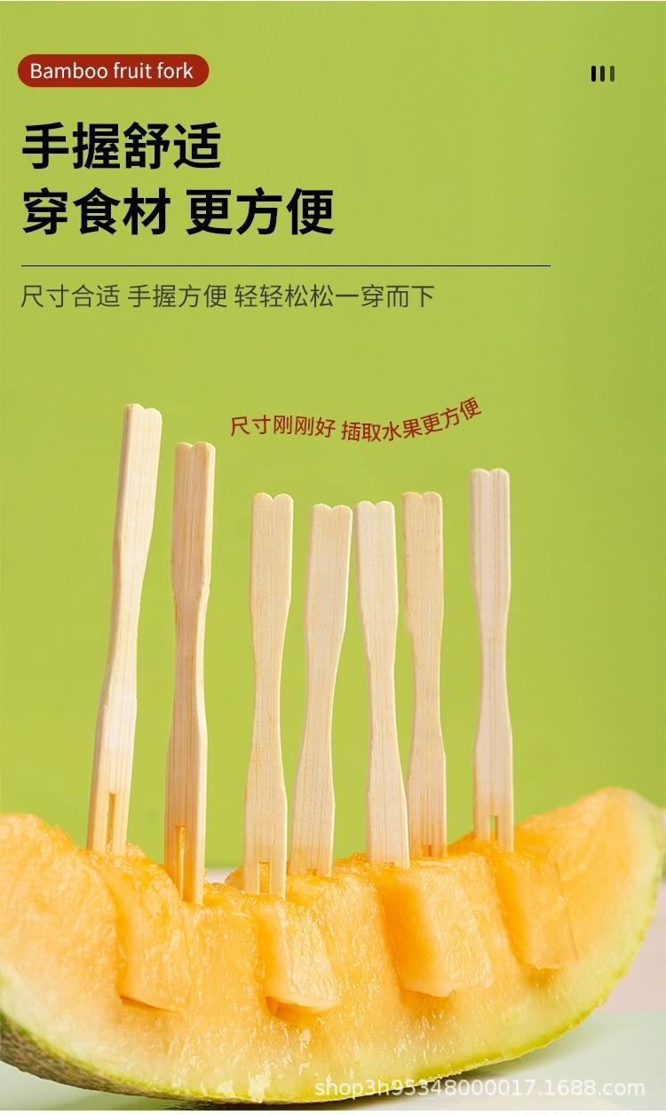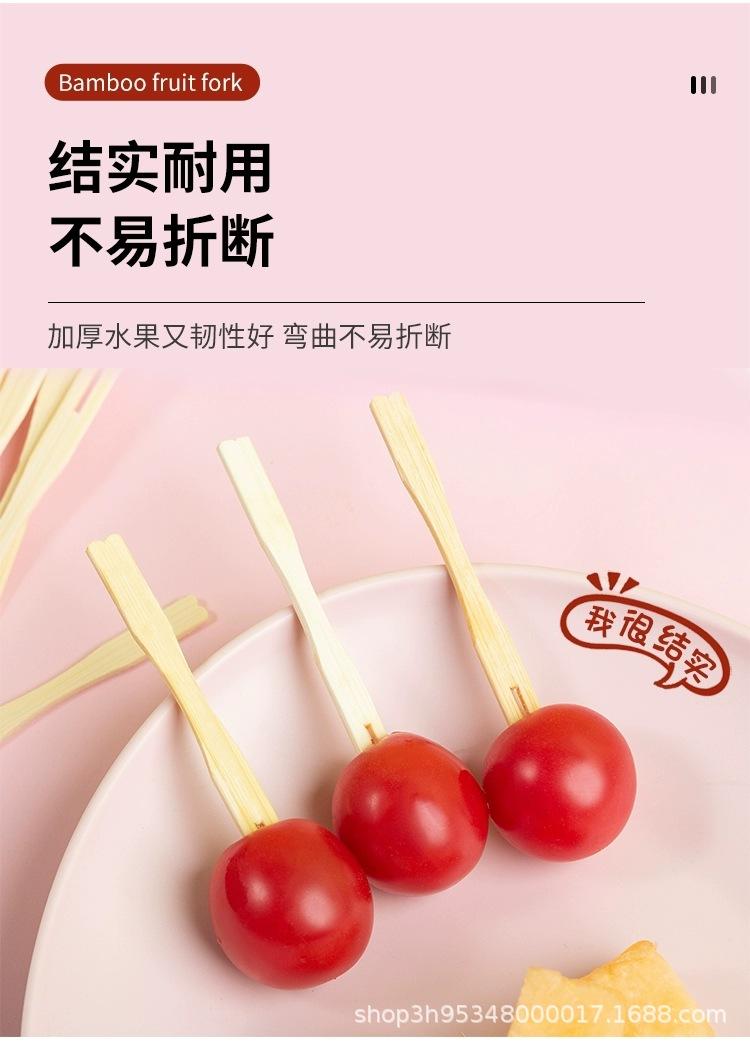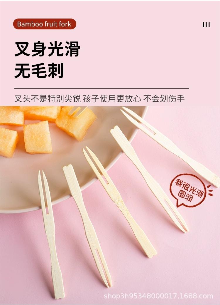 Tenedor de fruta desechable, palito de fruta, tenedor de bambú transparente de plástico creativo, dos tenedores para pastel, tapón de fruta para KTV/bar