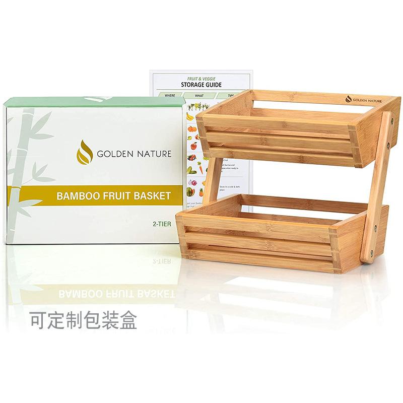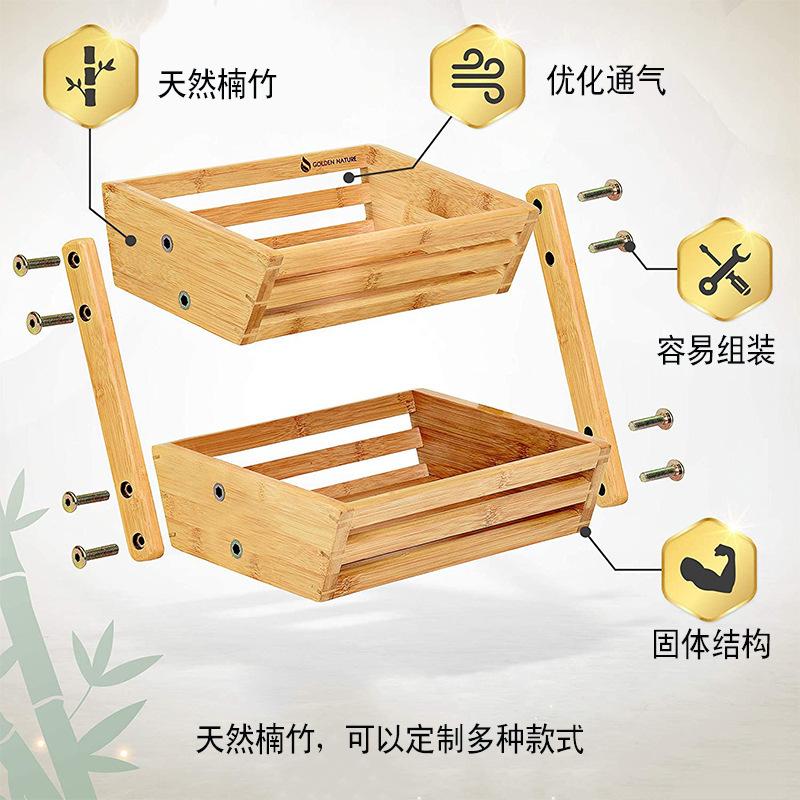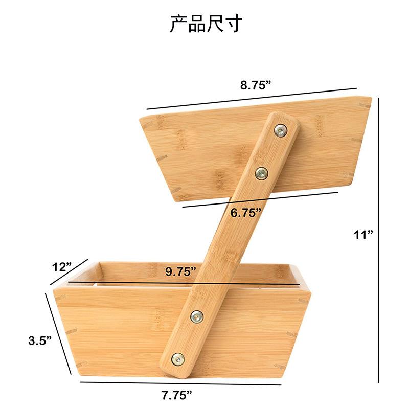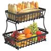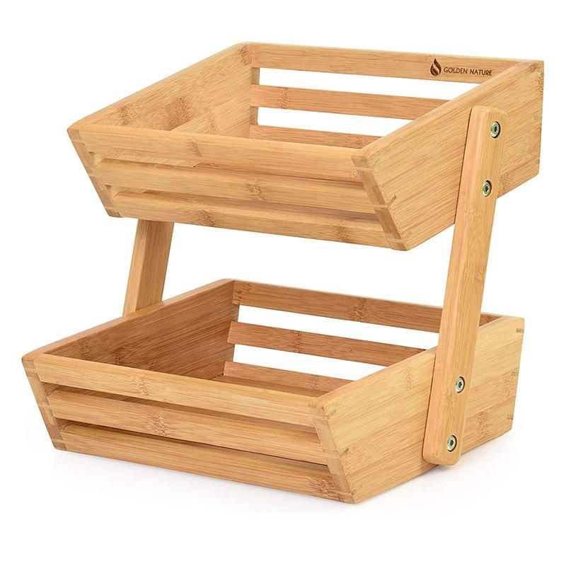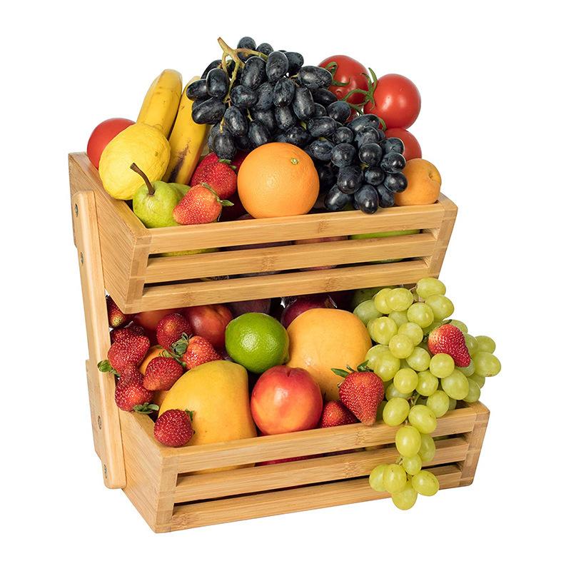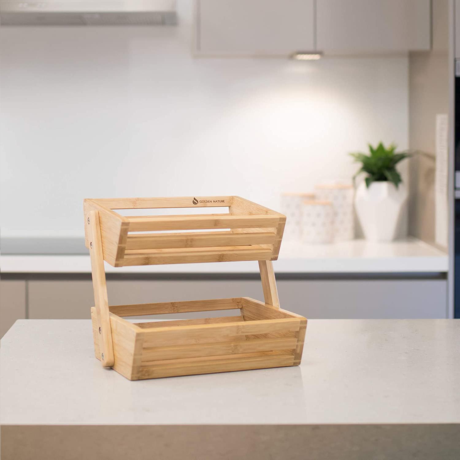 Cesta de frutas de bambú frutero de encimera de cocina estante de almacenamiento de 2 niveles para verduras para hacer pan