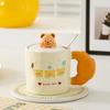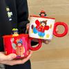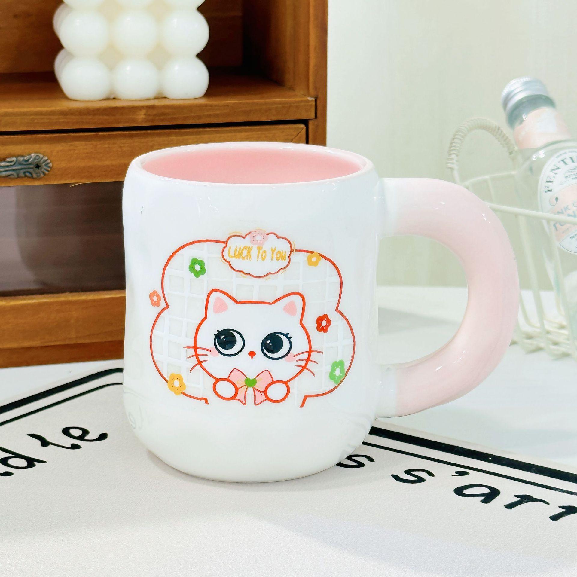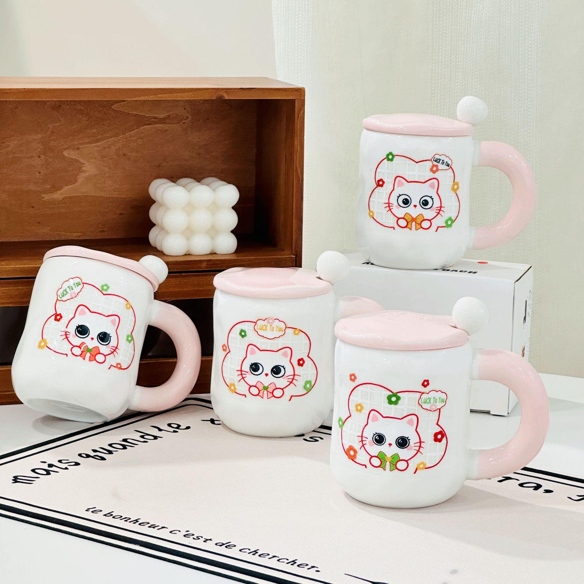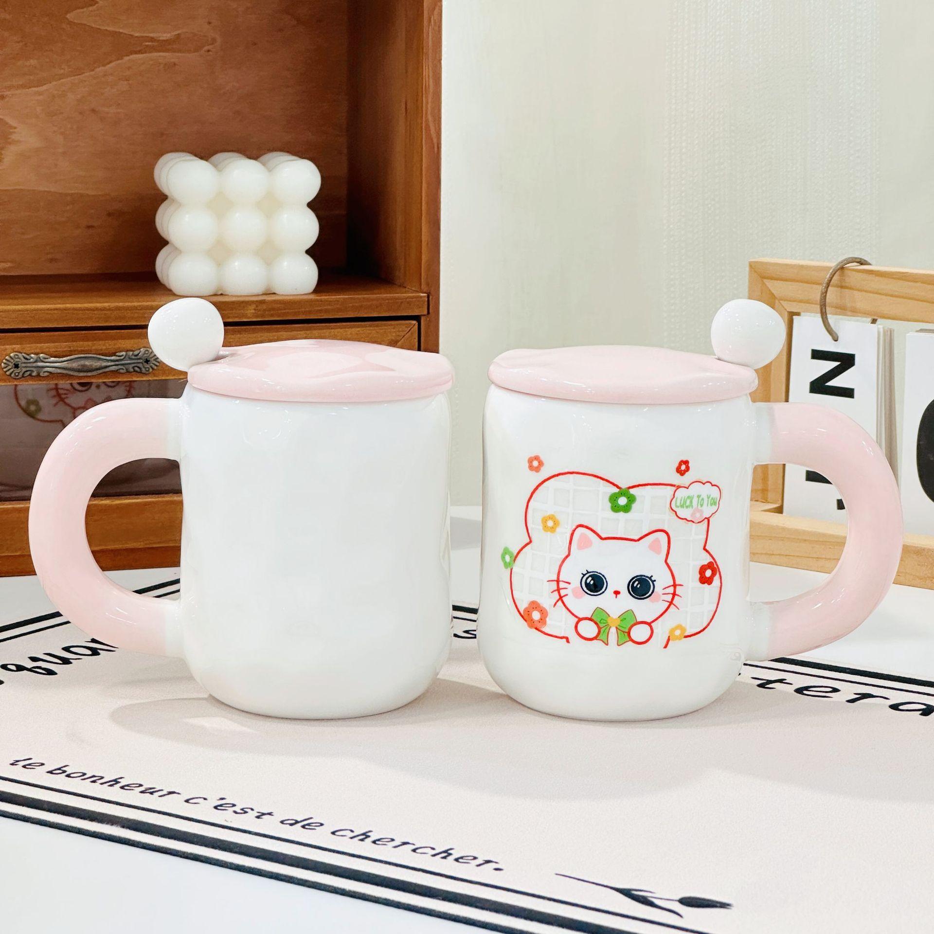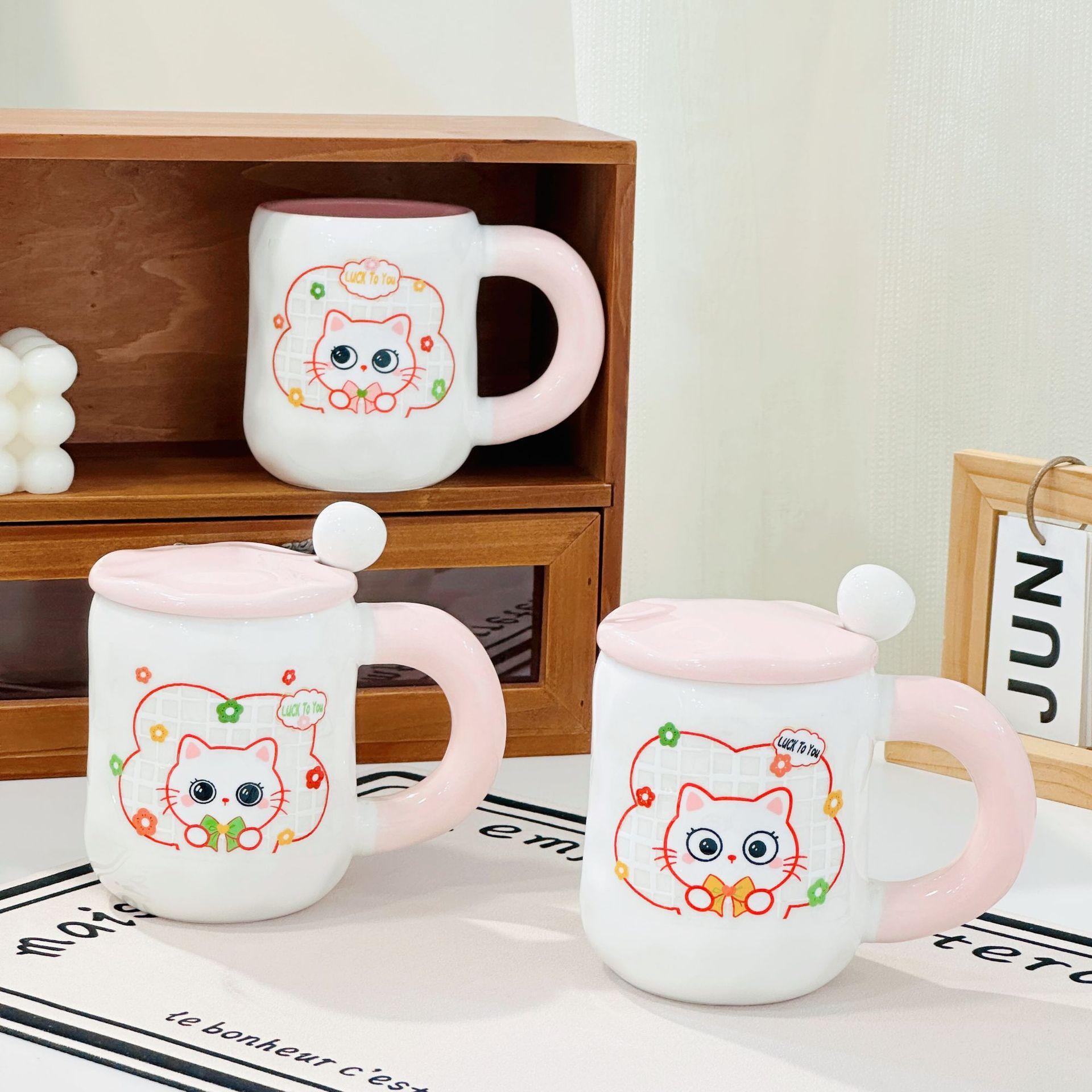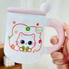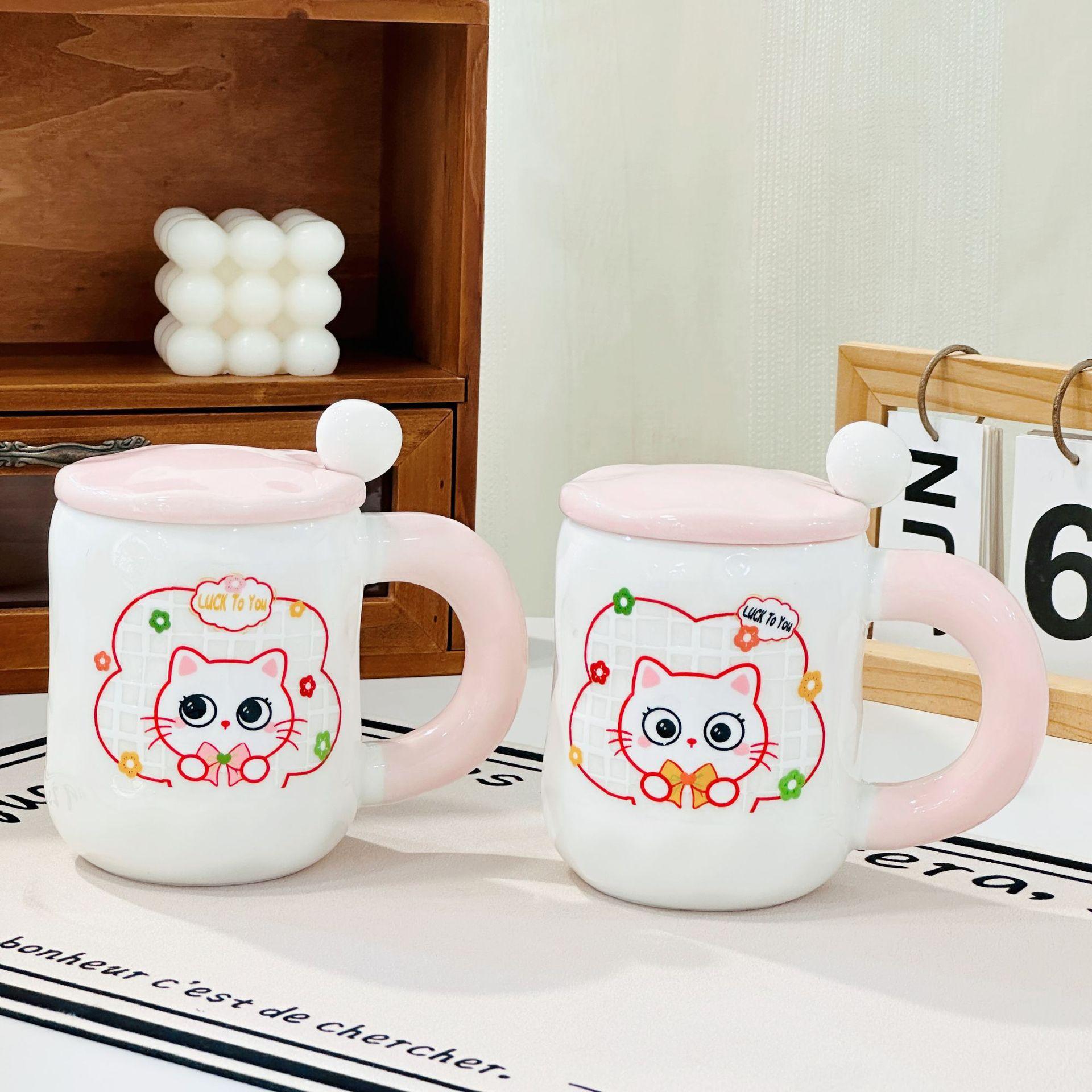 Taza de cerámica con forma de gatito con tapa y cuchara, linda taza de dibujos animados, color alto, gran capacidad, taza de agua para estudiantes
