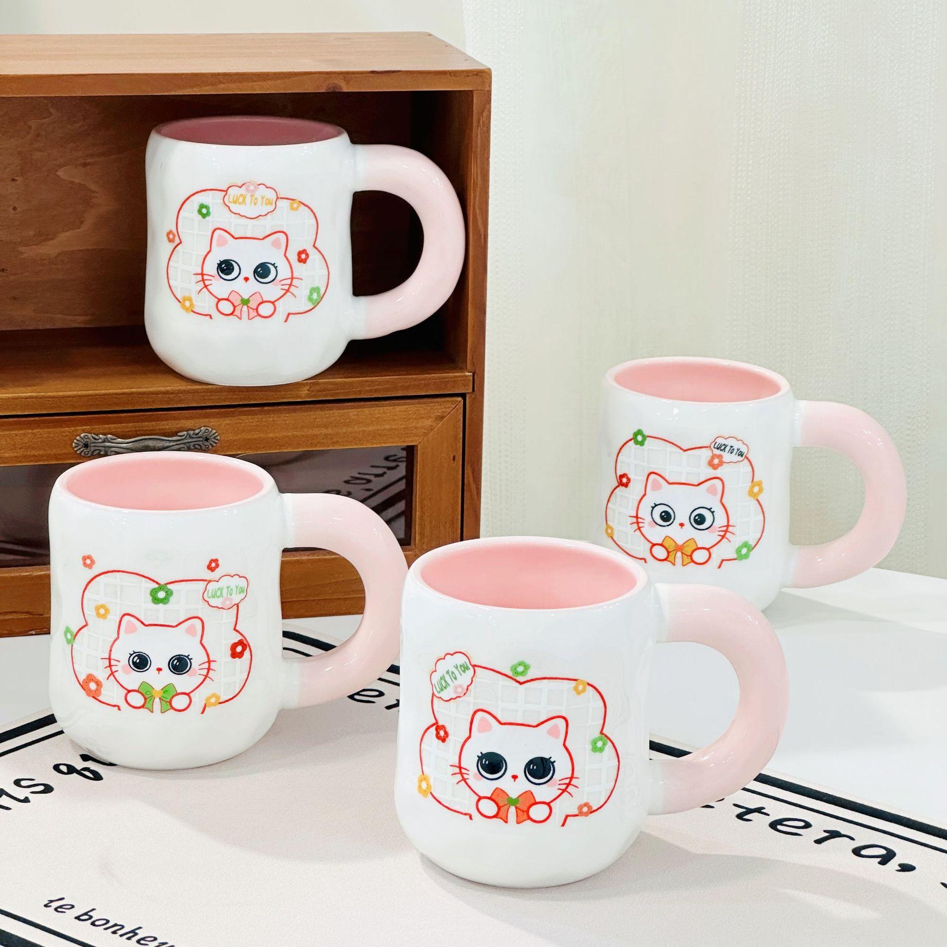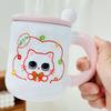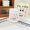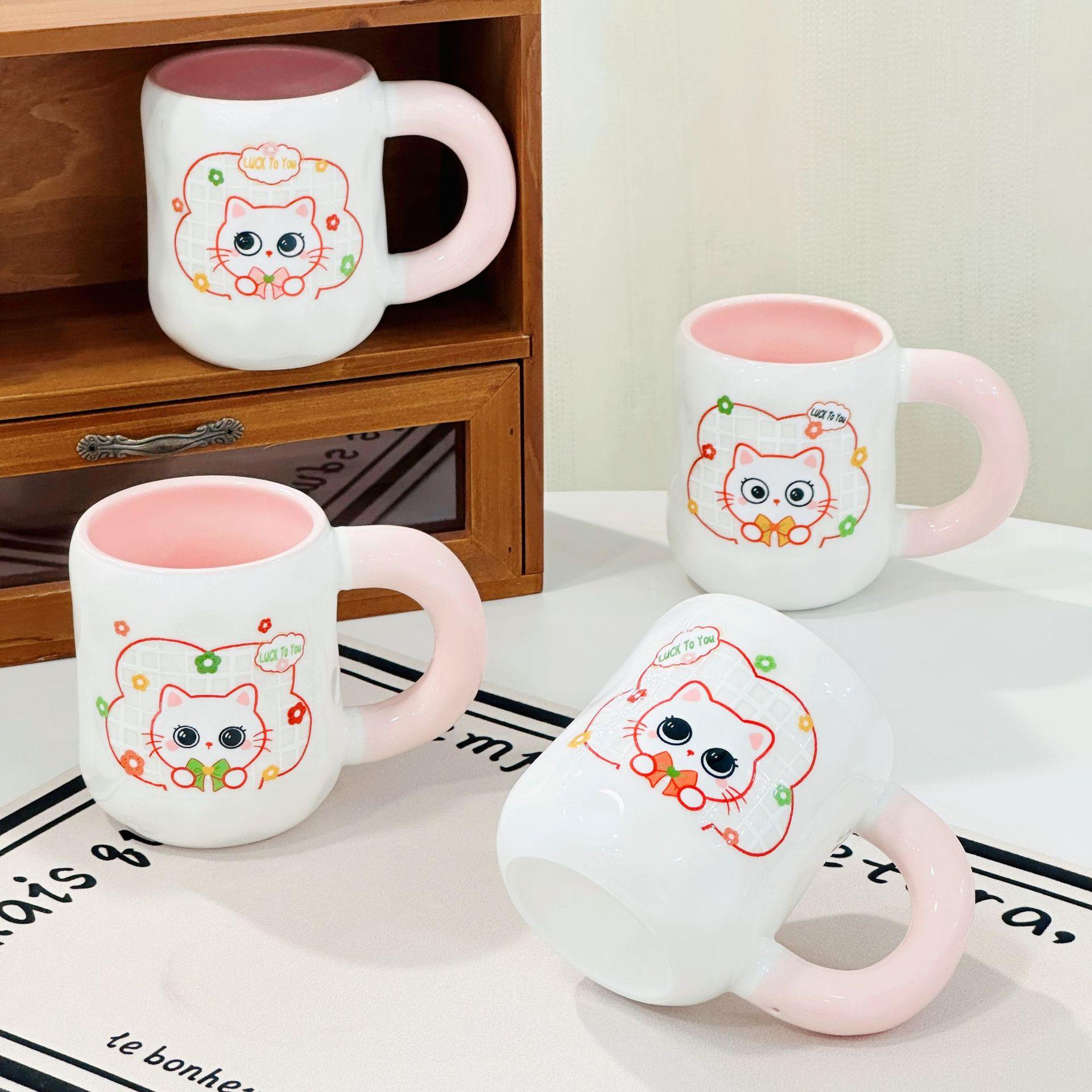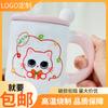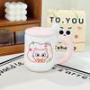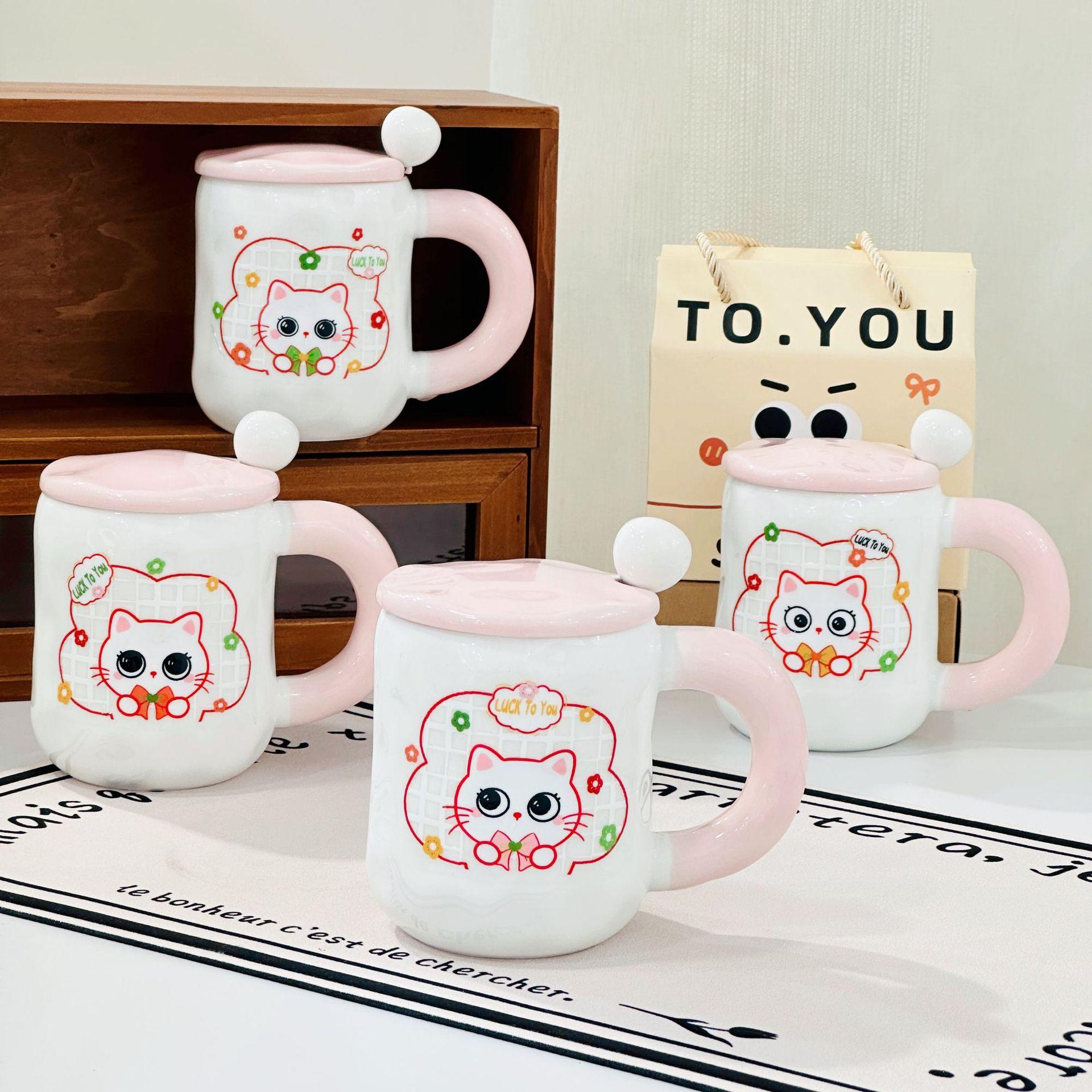 Pink bow kitten with lid spoon large handle ceramic cup small gift box