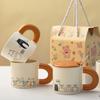 Yellow bow kitten with lid spoon large handle ceramic cup small gift box