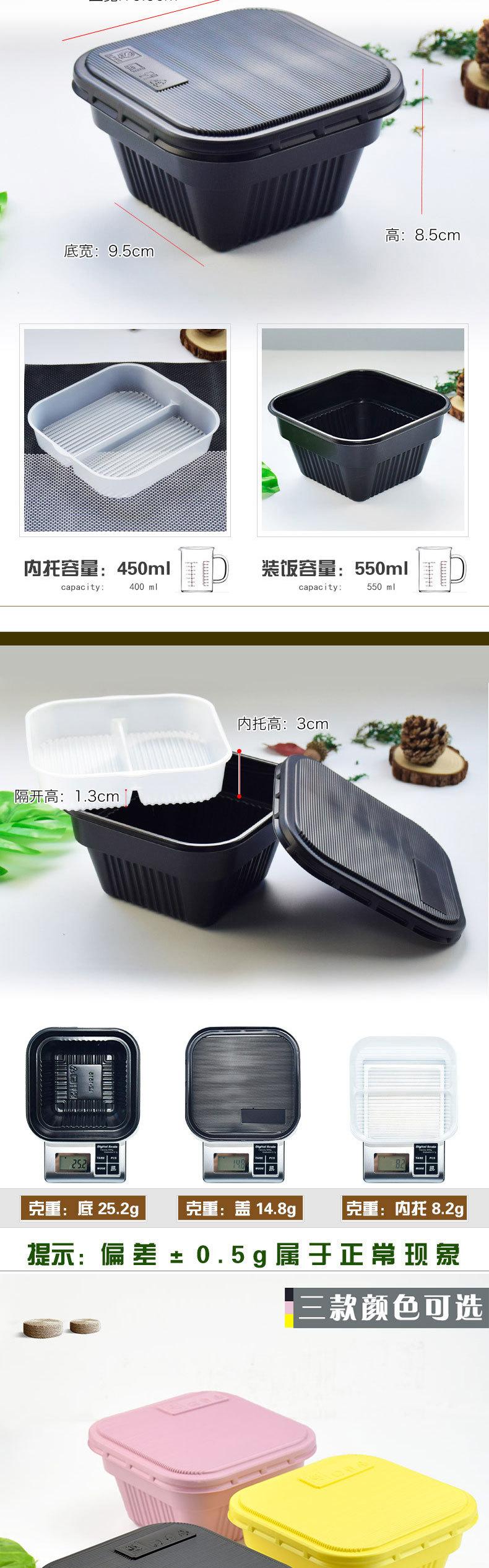3. Conveniencia: El diseño estandarizado de especificaciones y volúmenes proporciona un embalaje estandarizado y conveniente para la entrega rápida de comida y la producción automatizada de la industria. |