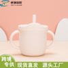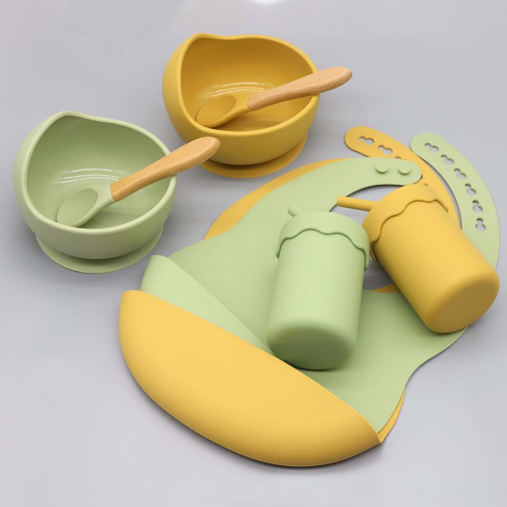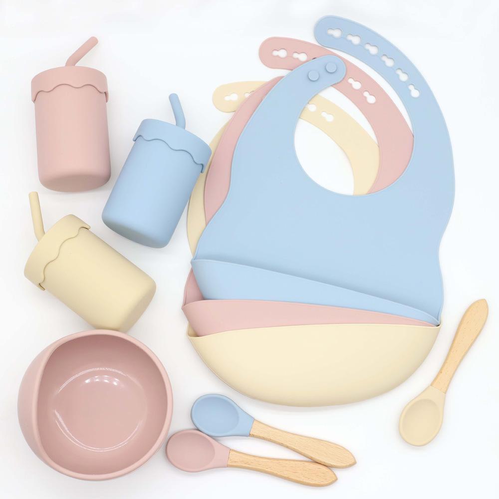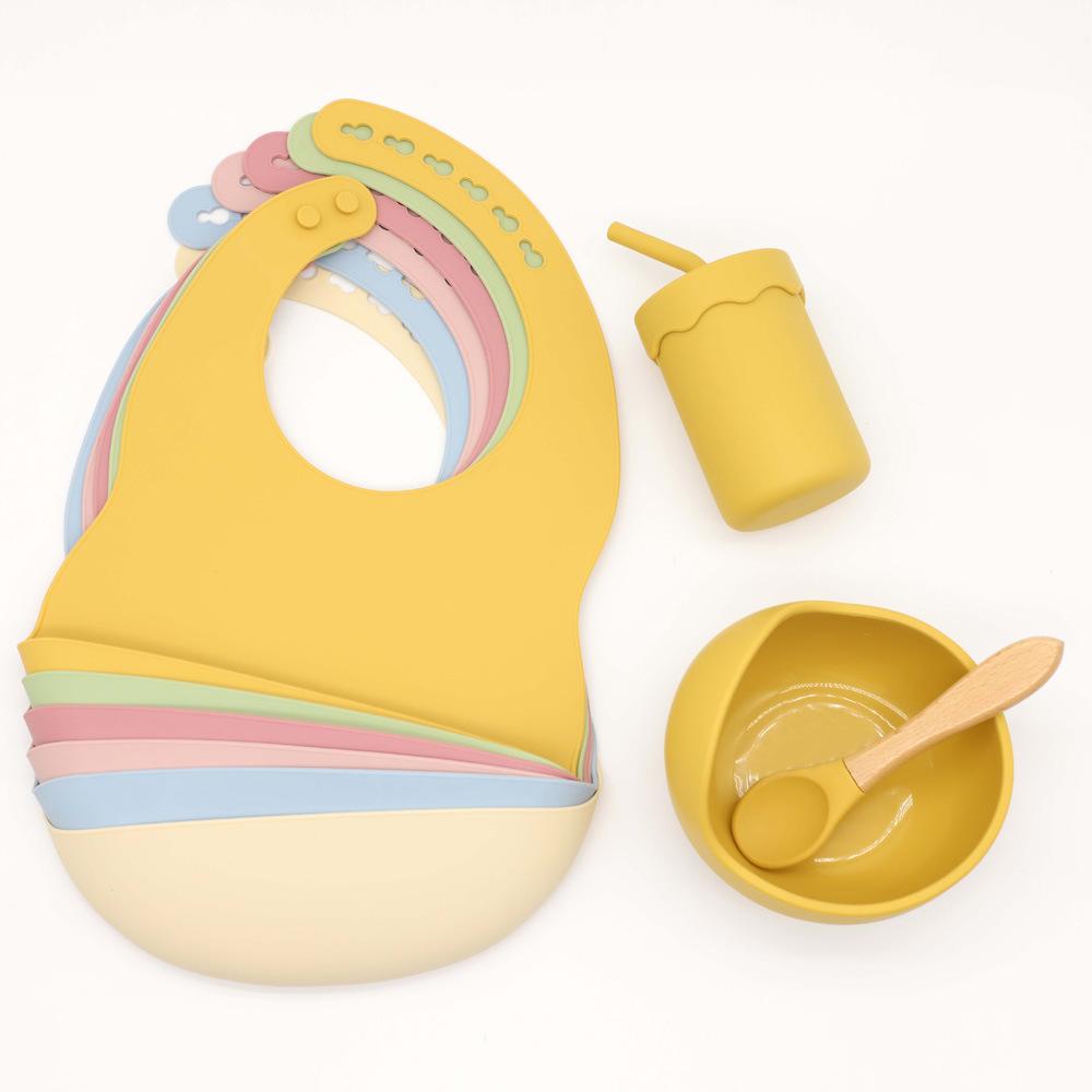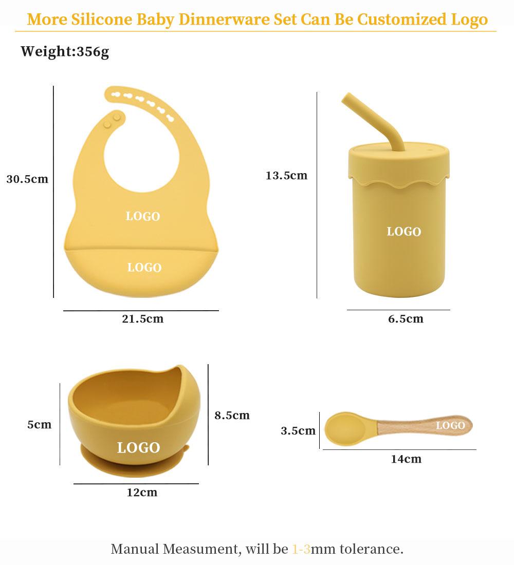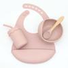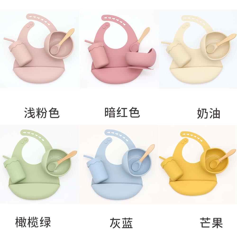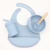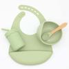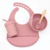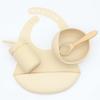Babero infantil de silicona de grado alimenticio para bebés transfronterizo, tazón redondo con ventosa, taza con pajita, cuchara, juego de vajilla de cuatro piezas