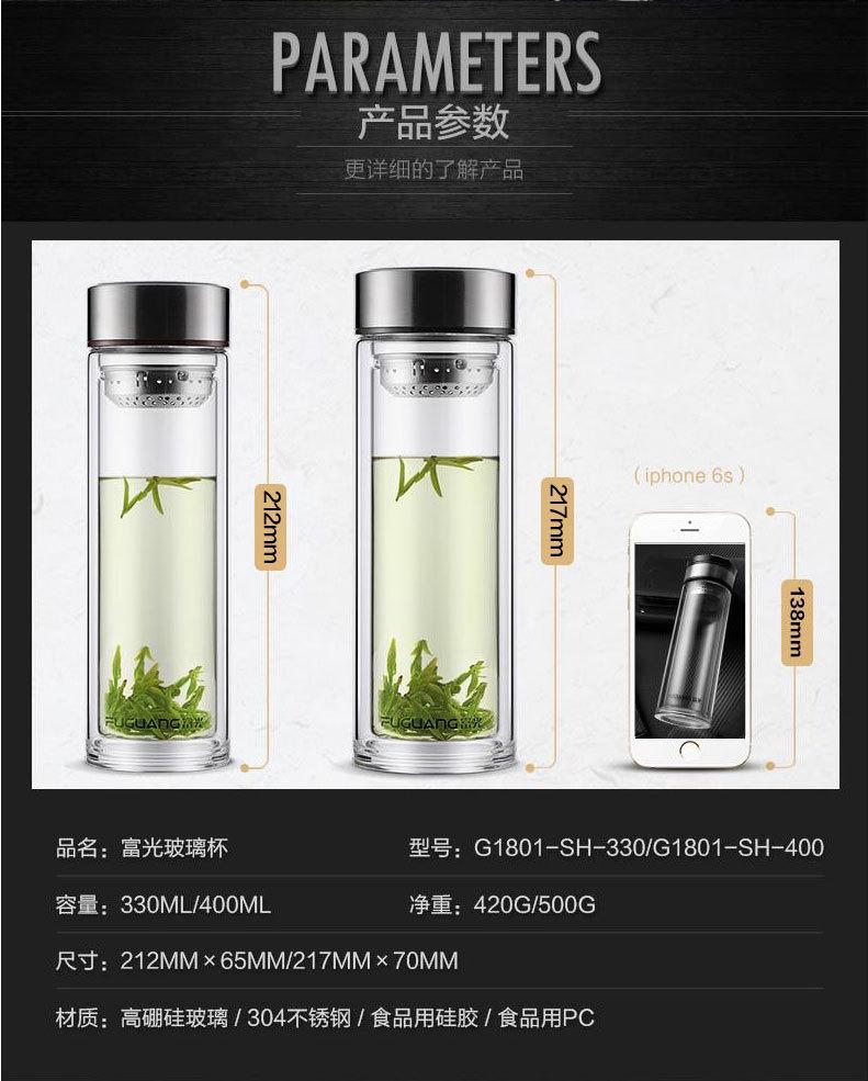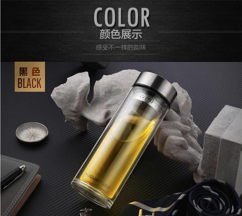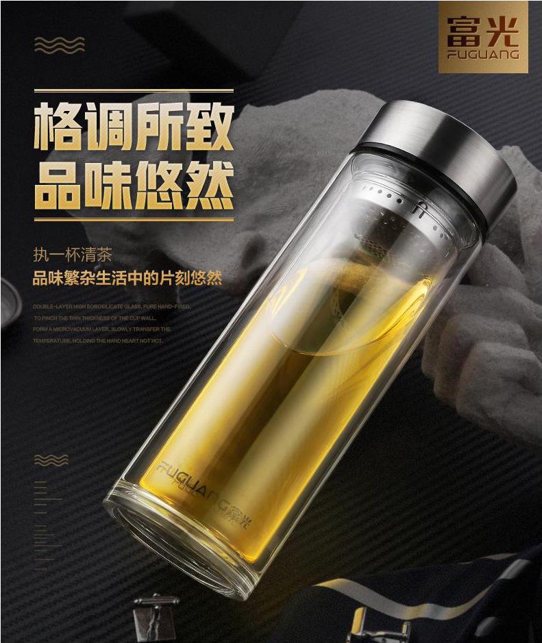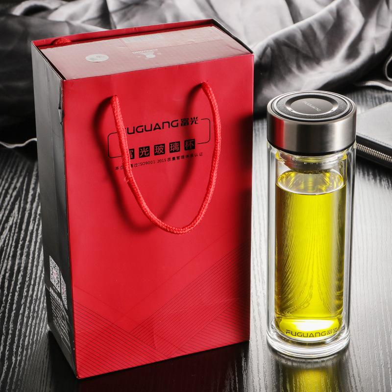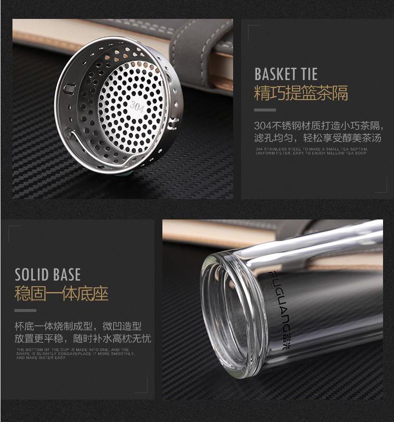 [Nombre del producto] Vaso de vidrio de doble capa resistente al calor Fuguang vaso portátil con filtro para té vaso de regalo taza de agua transparente para oficina