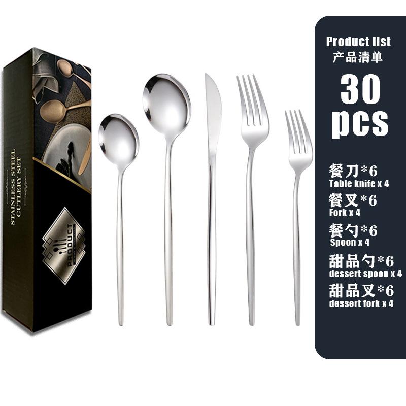 Compra Vajilla de acero inoxidable de 20 piezas de Amazon transfronteriza, ideal para llevar al estilo occidental, con cuchillo, tenedor y cuchara, y caja de regalo para suministros de hotel. al por mayor en Joom.pro