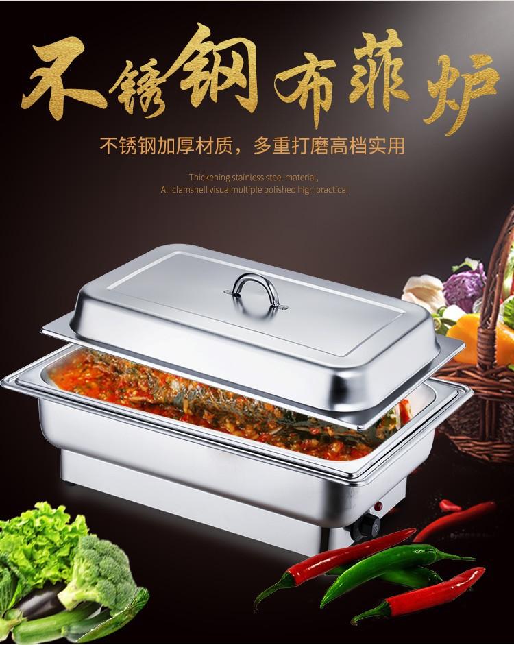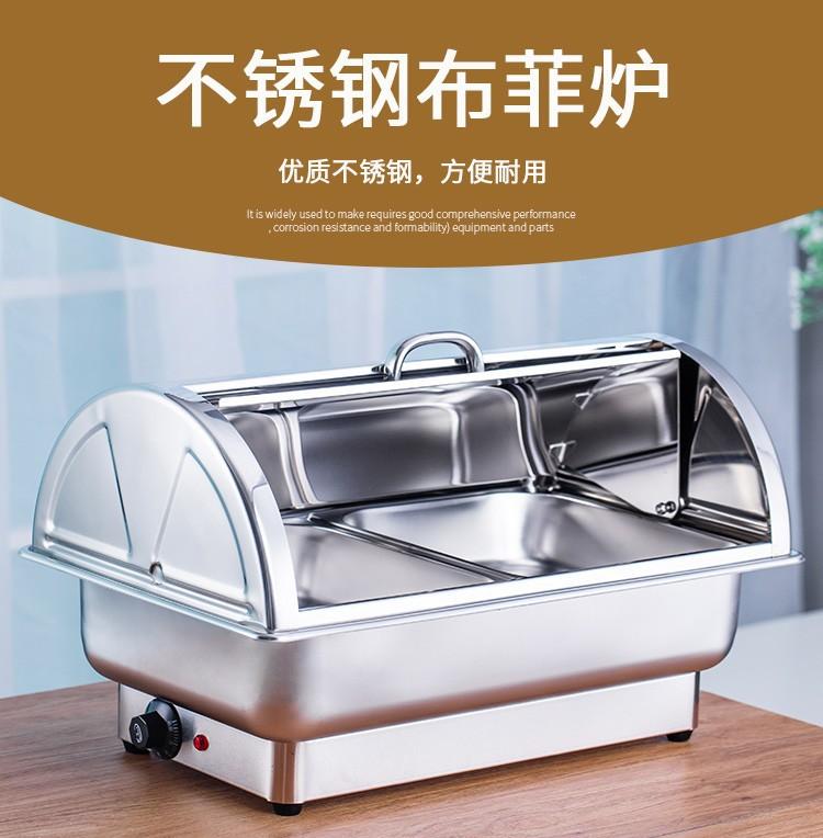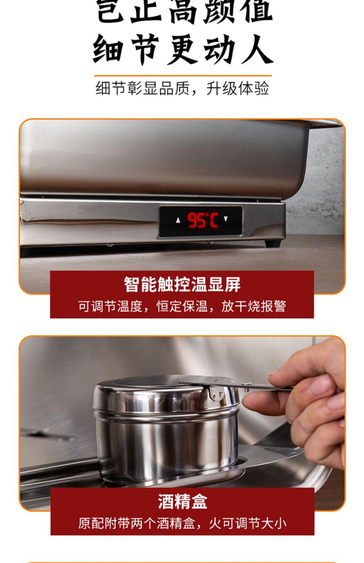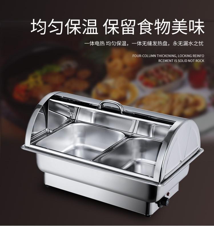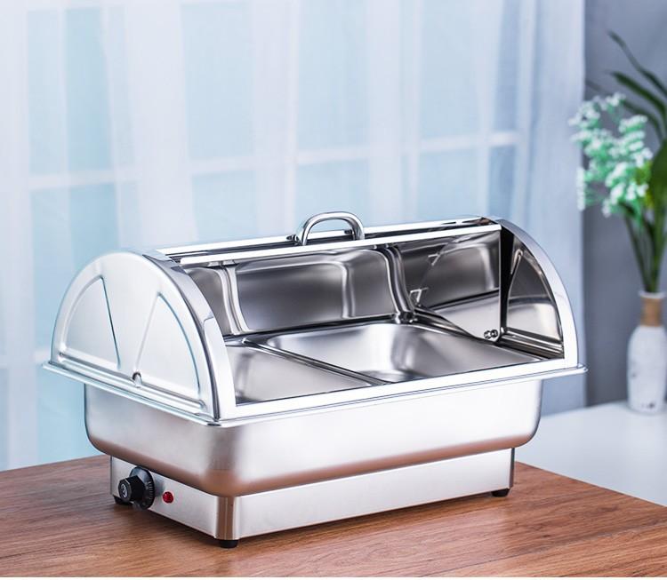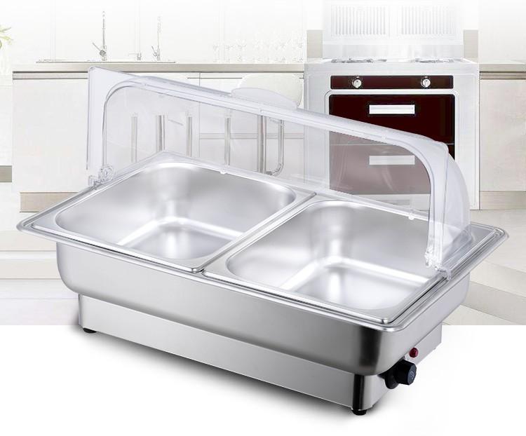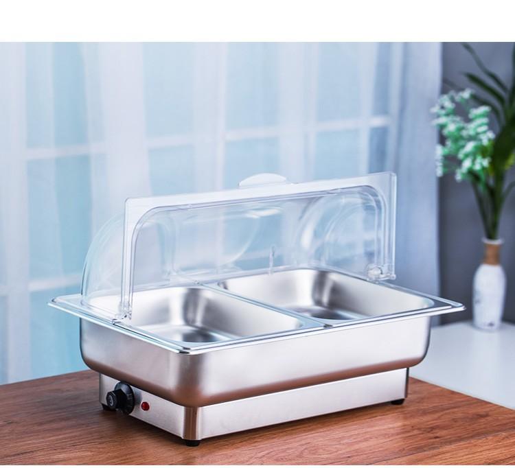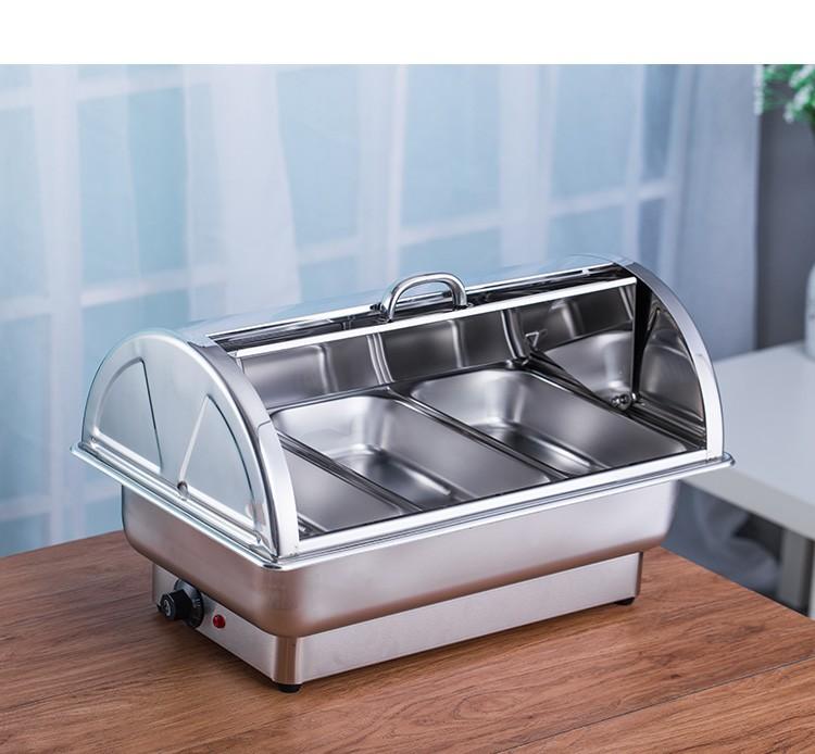Estufa de buffet de acero inoxidable con calefacción eléctrica, vajilla antigua, utensilios de cocina, estufa de buffet con tapa visual, estufa de conservación de calor para hoteles, comercial