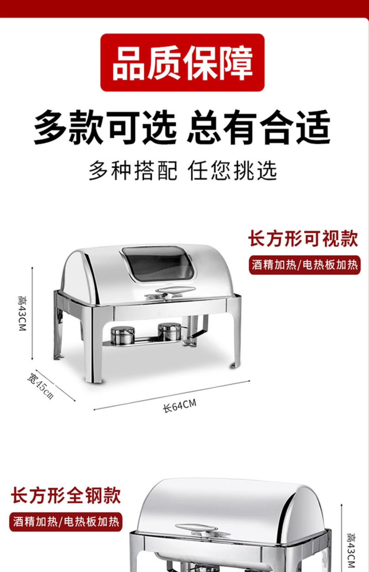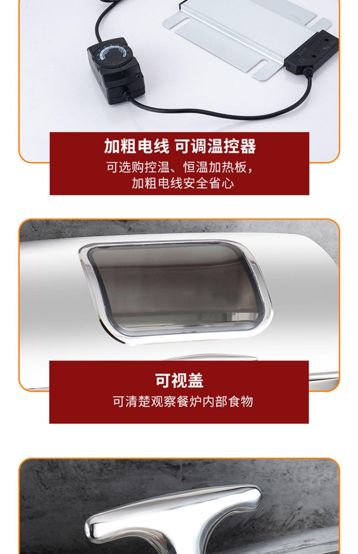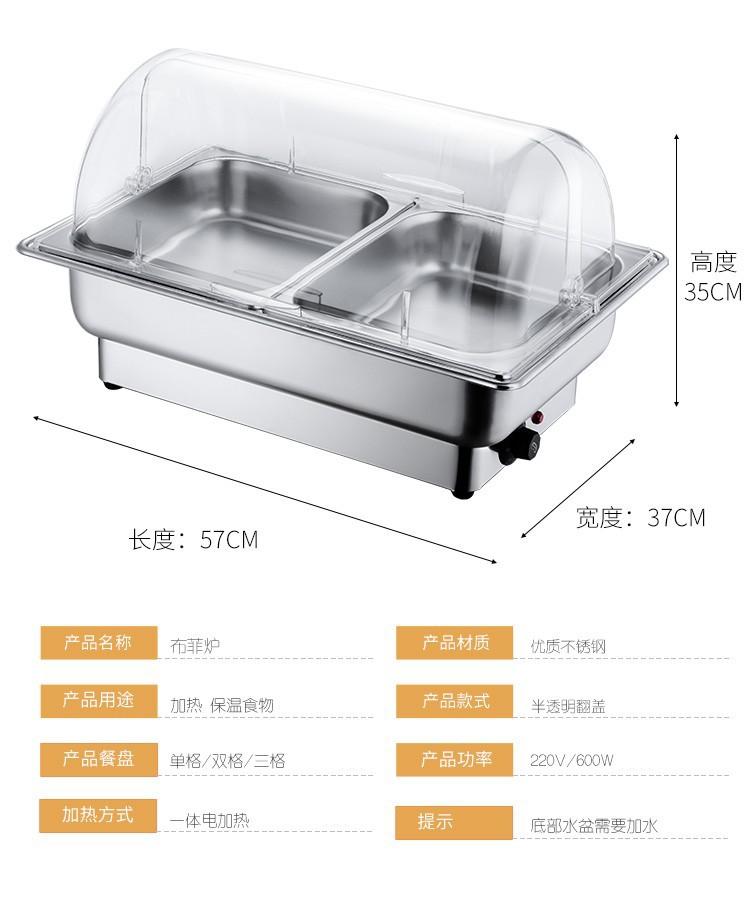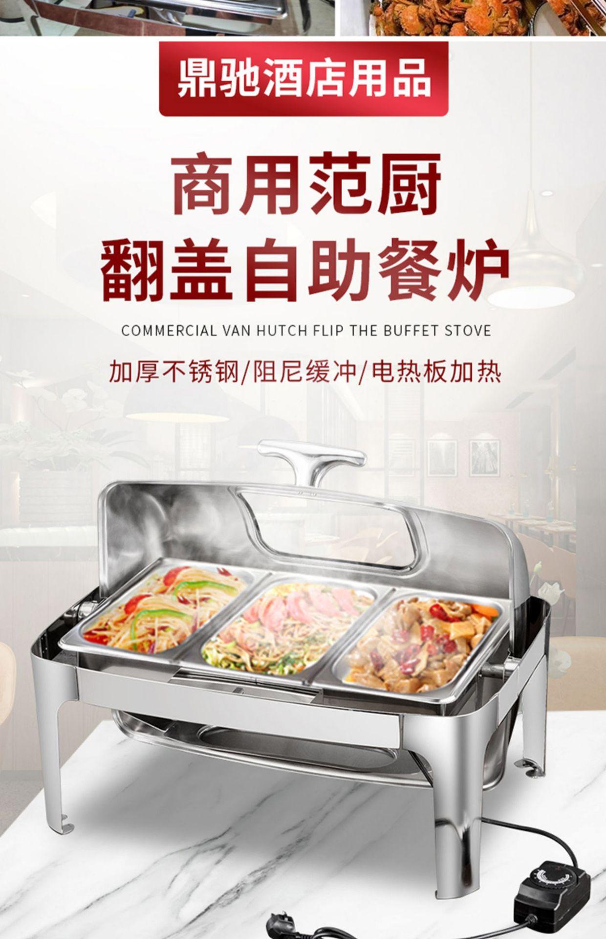 Estufa de buffet de acero inoxidable con calefacción eléctrica, vajilla antigua, utensilios de cocina, estufa de buffet con tapa visual, estufa de conservación de calor para hoteles, comercial
