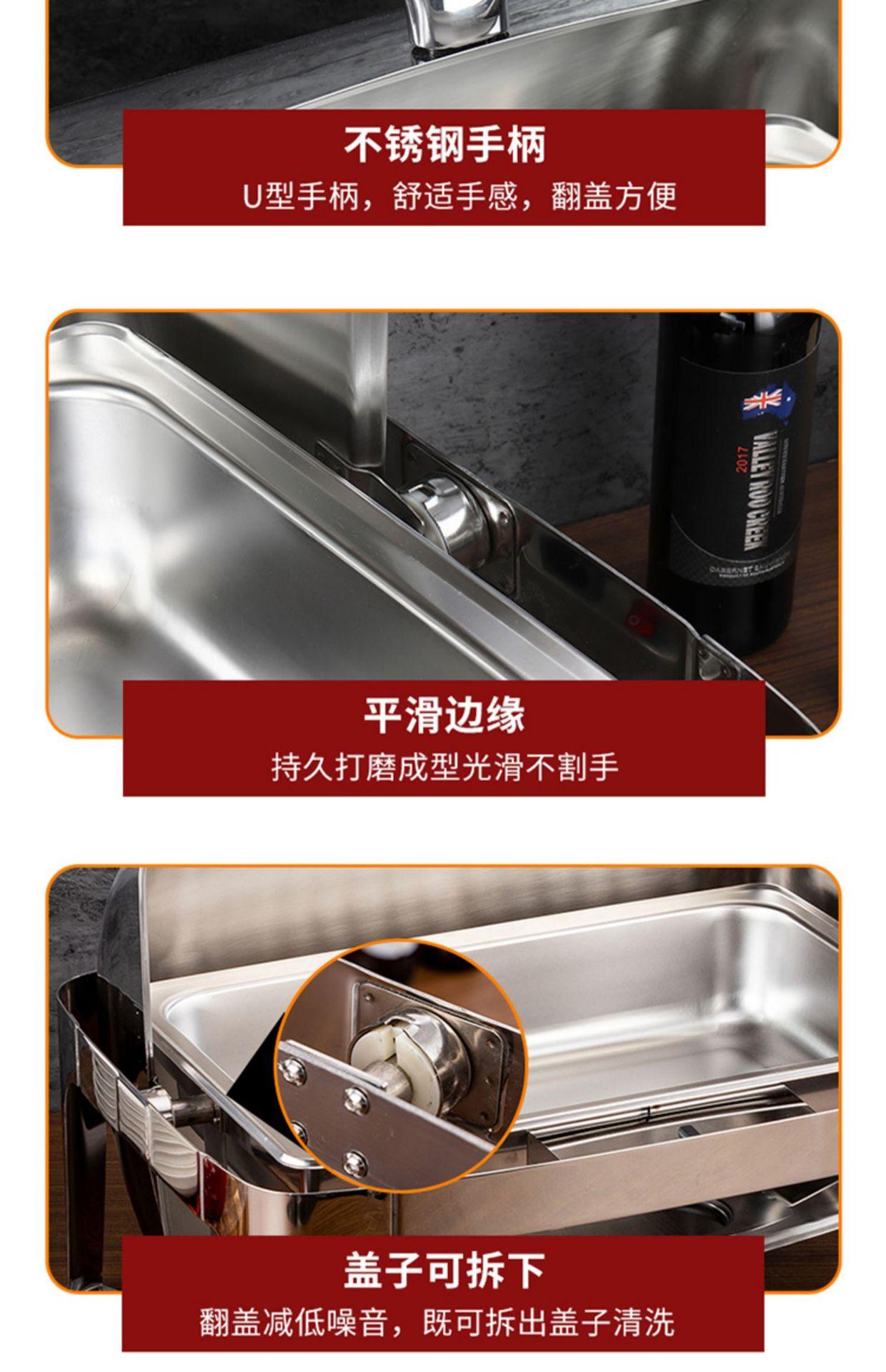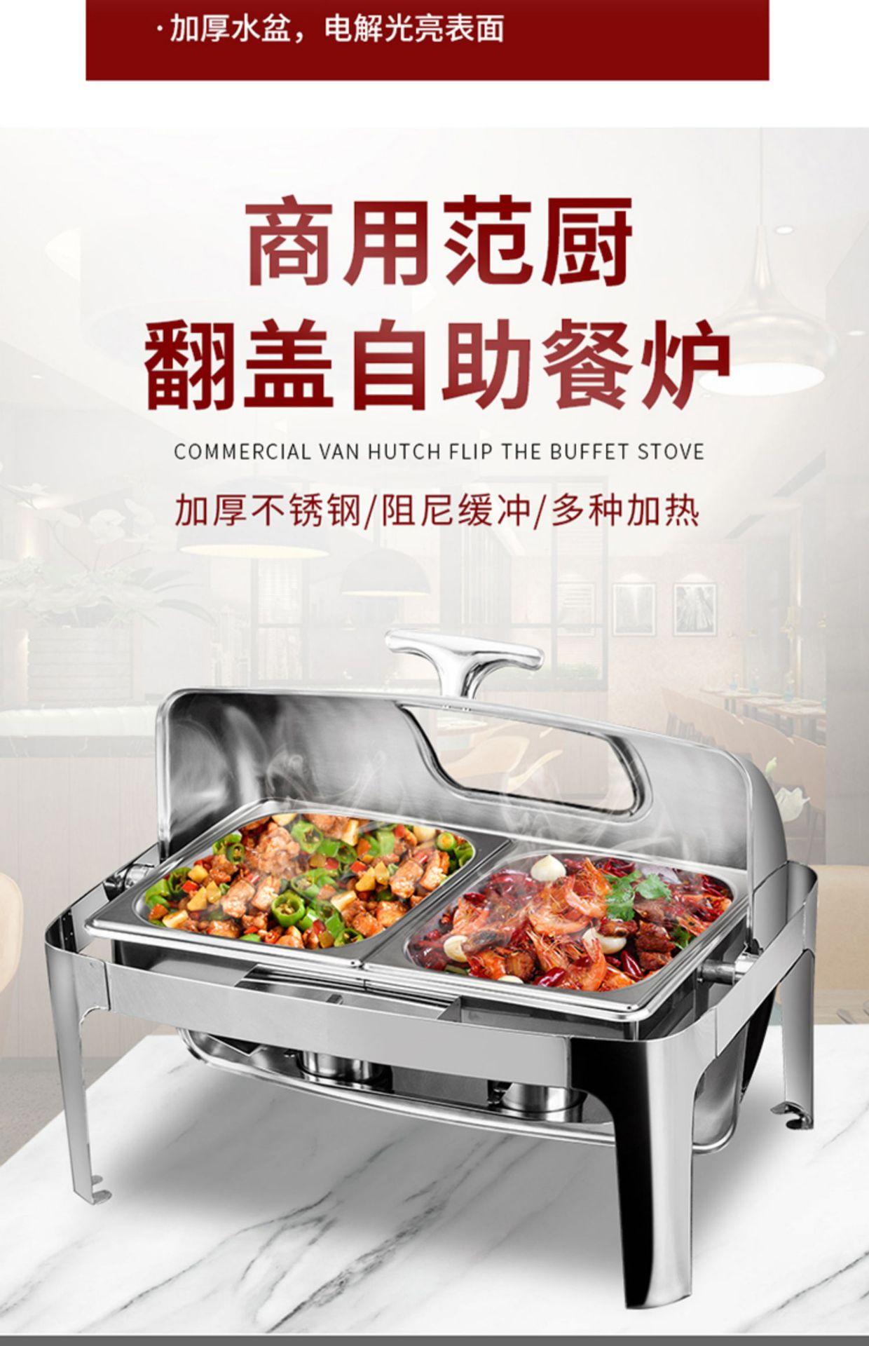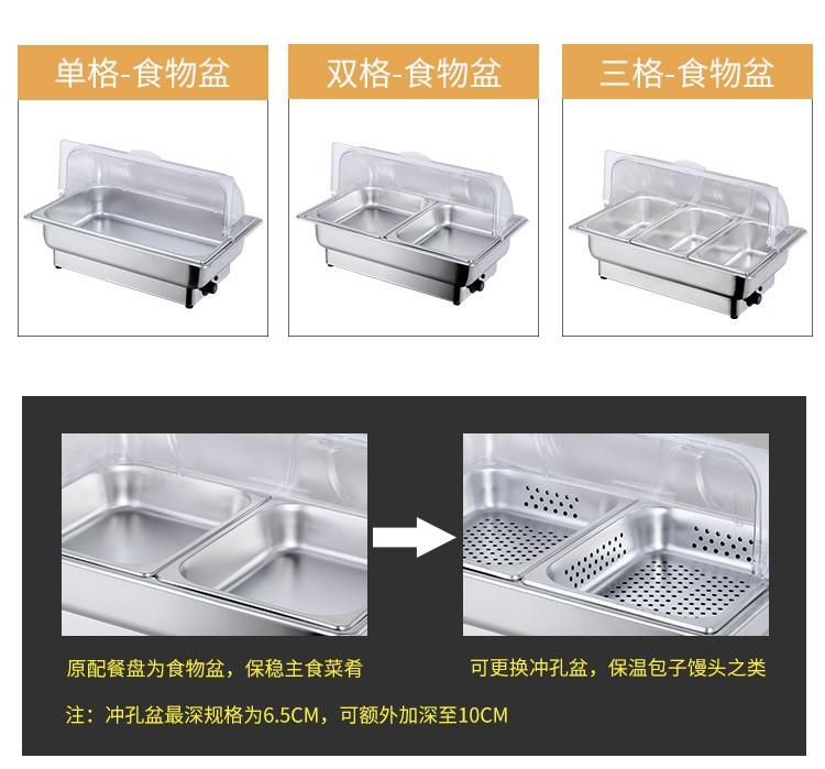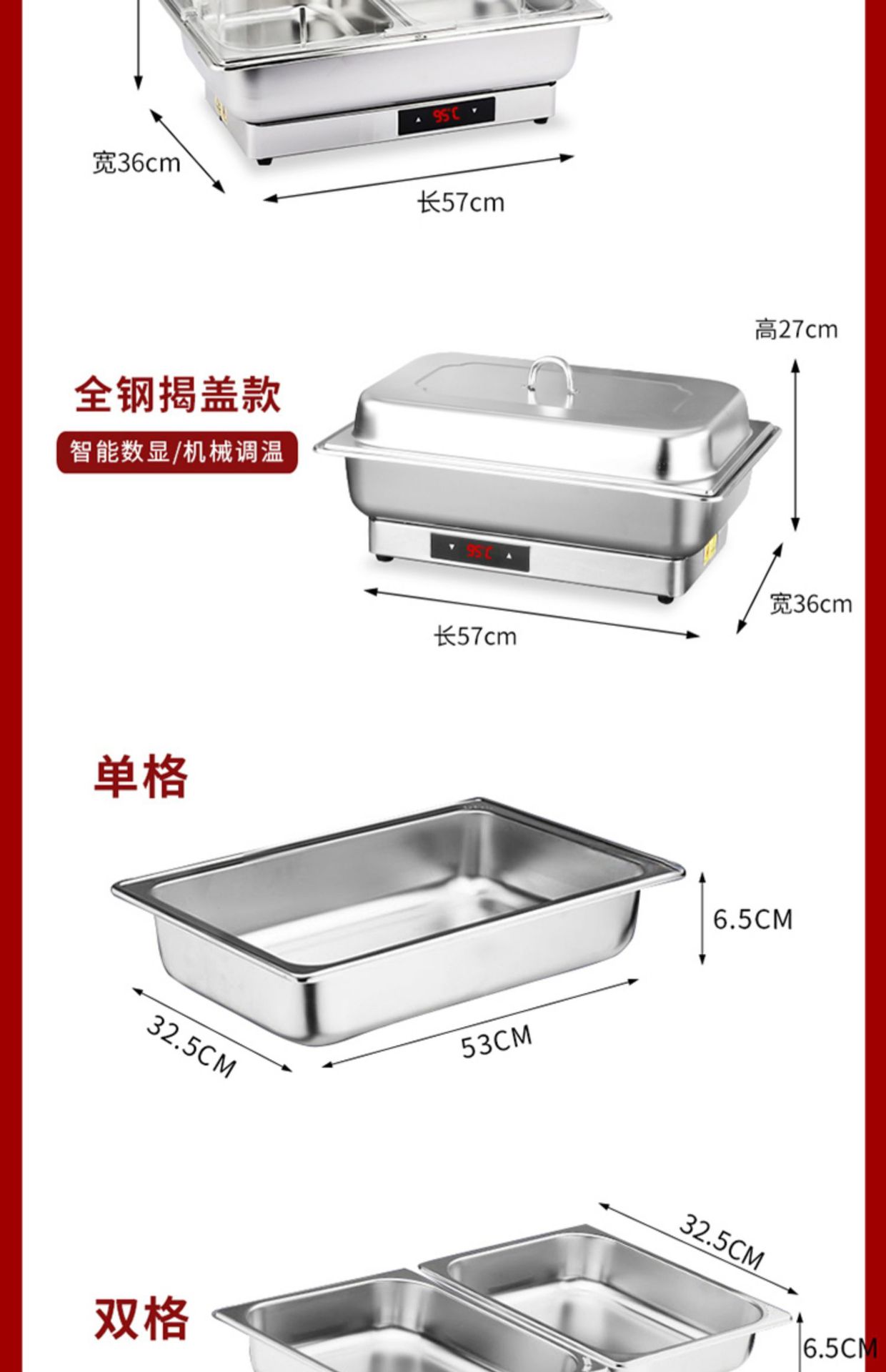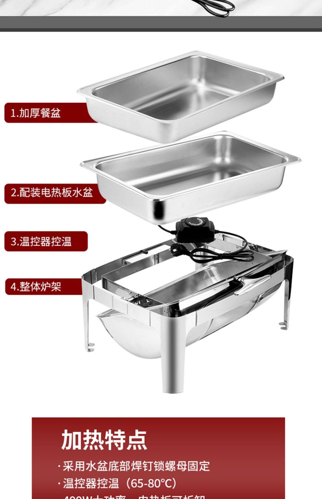 Estufa de buffet de acero inoxidable con calefacción eléctrica, vajilla antigua, utensilios de cocina, estufa de buffet con tapa visual, estufa de conservación de calor para hoteles, comercial