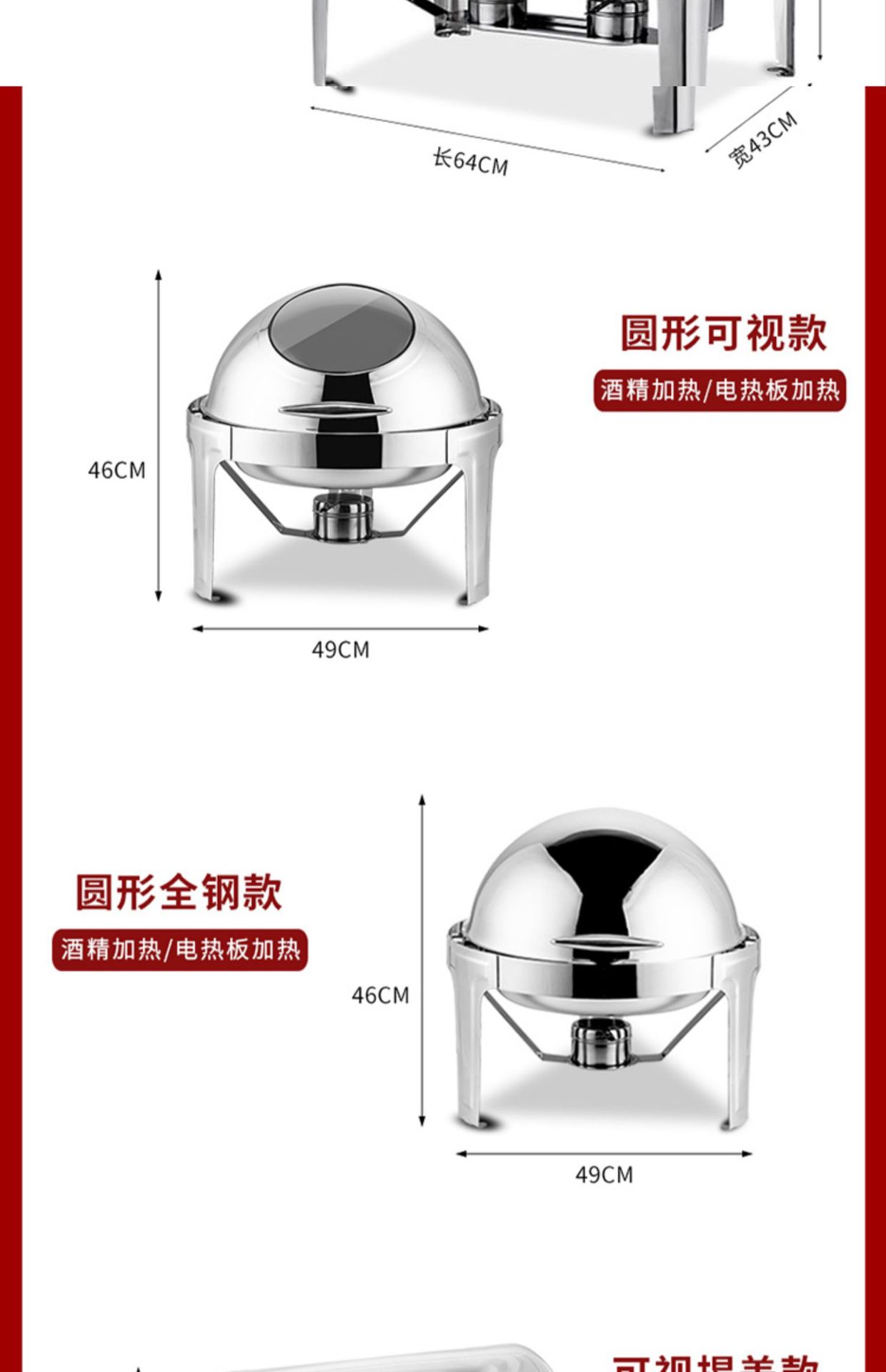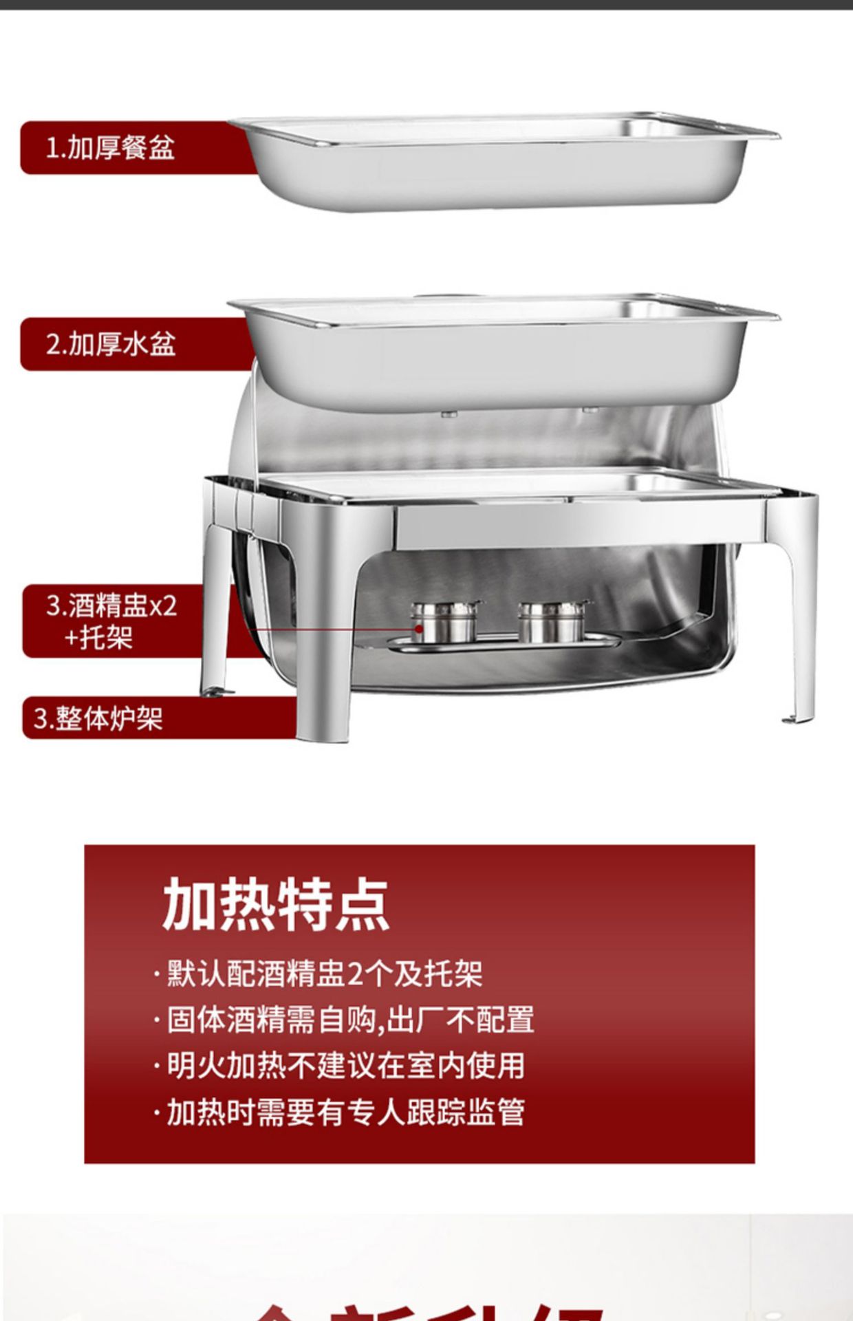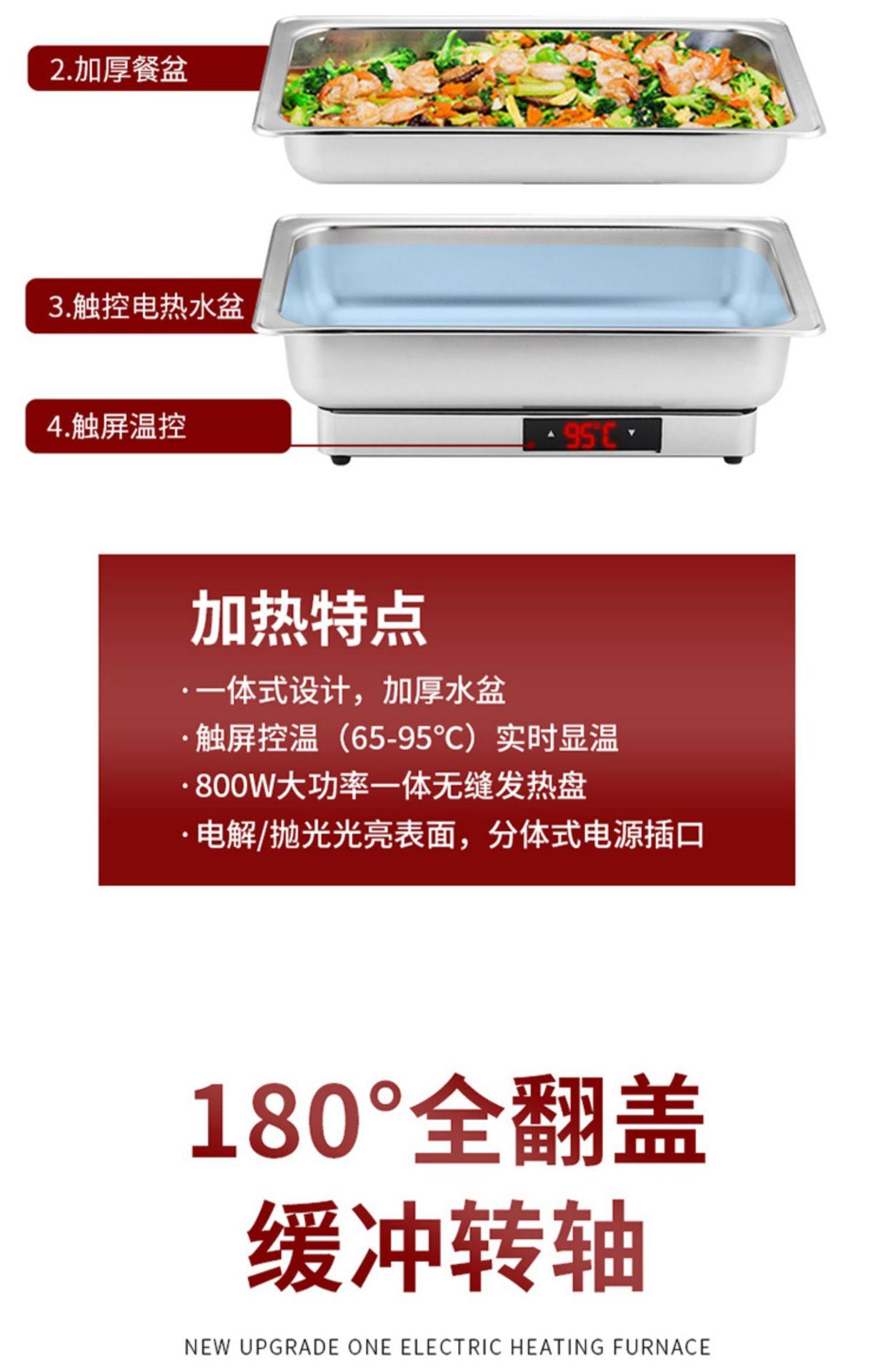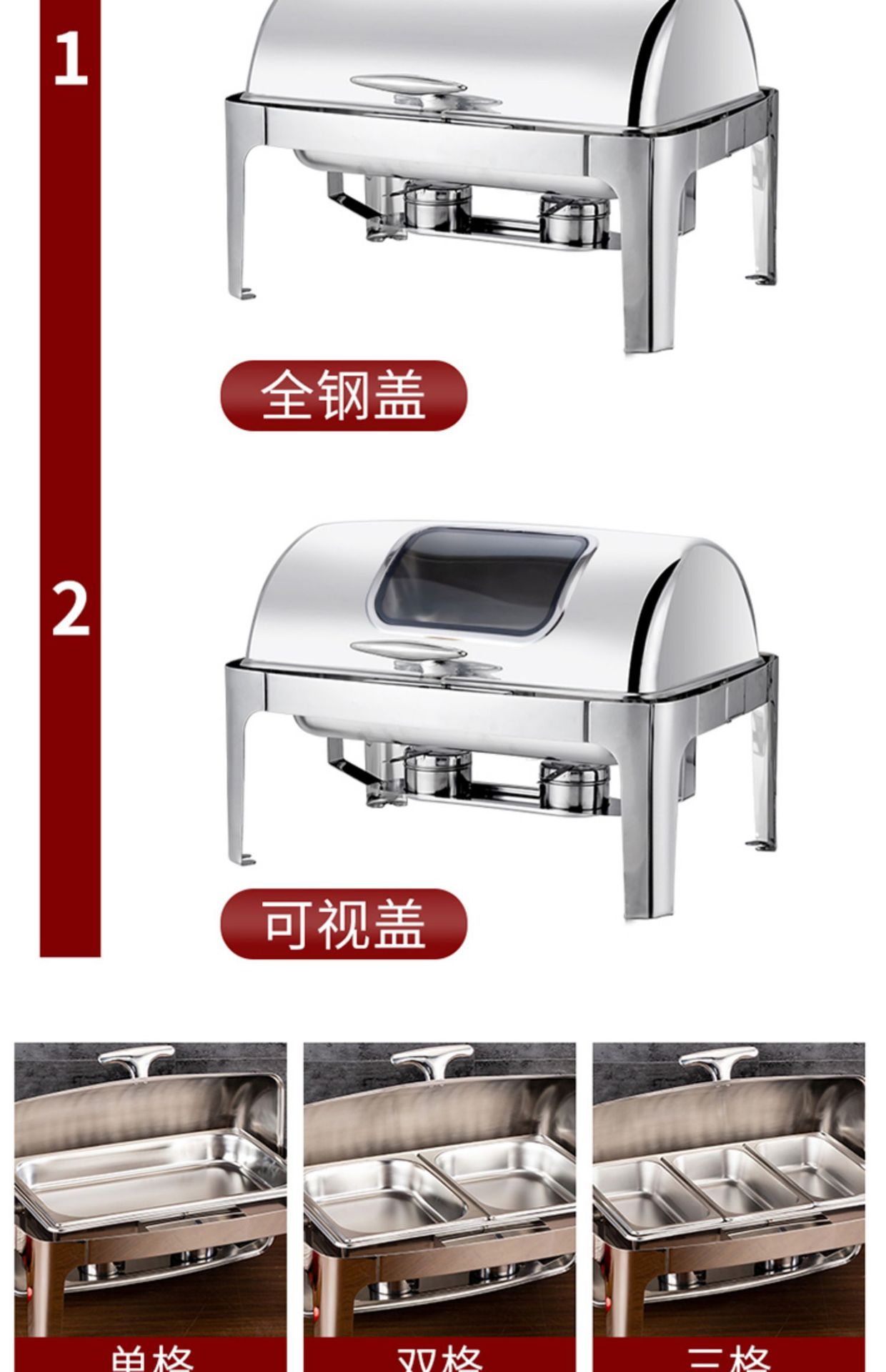 Estufa de buffet de acero inoxidable con calefacción eléctrica, vajilla antigua, utensilios de cocina, estufa de buffet con tapa visual, estufa de conservación de calor para hoteles, comercial