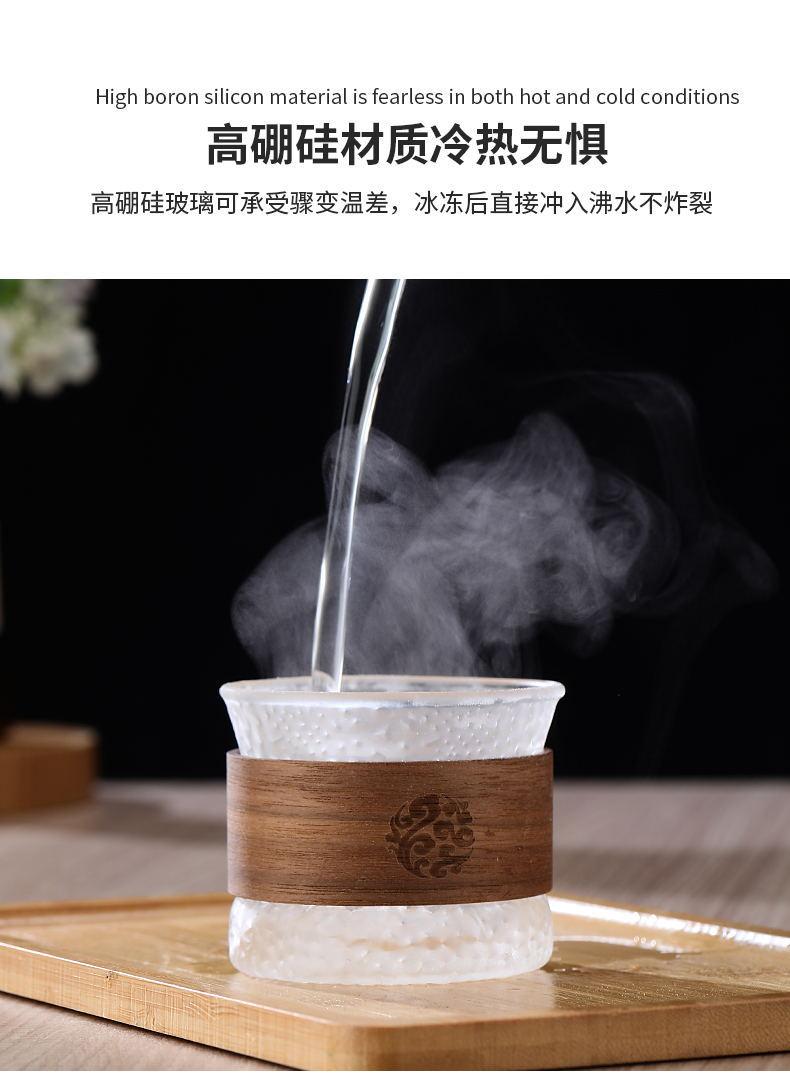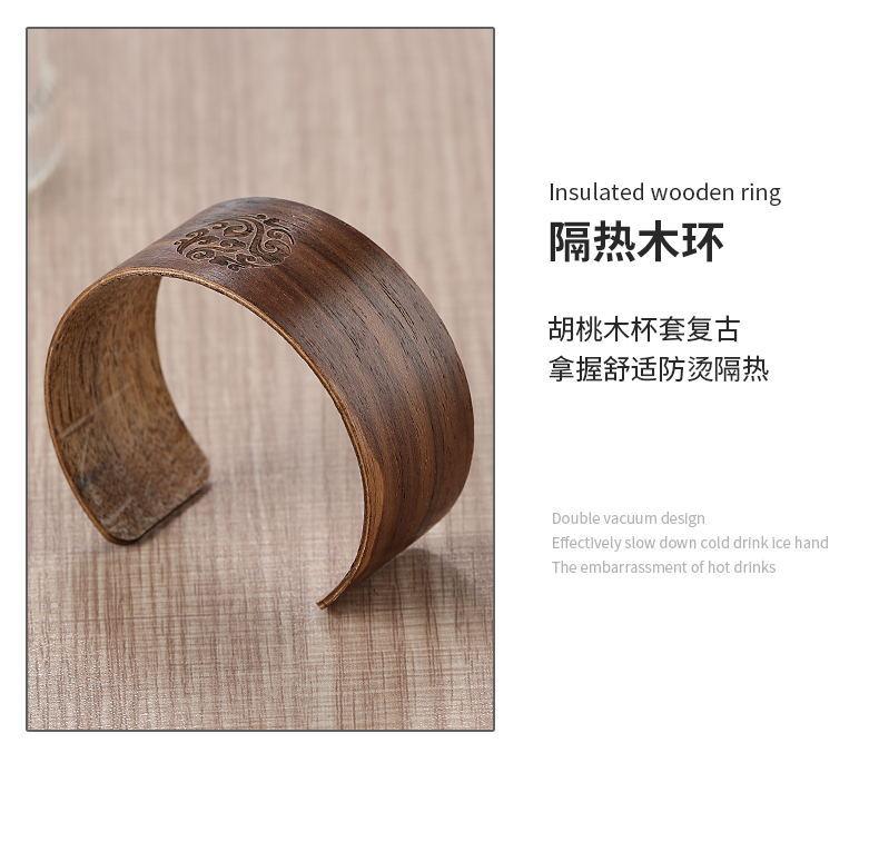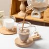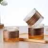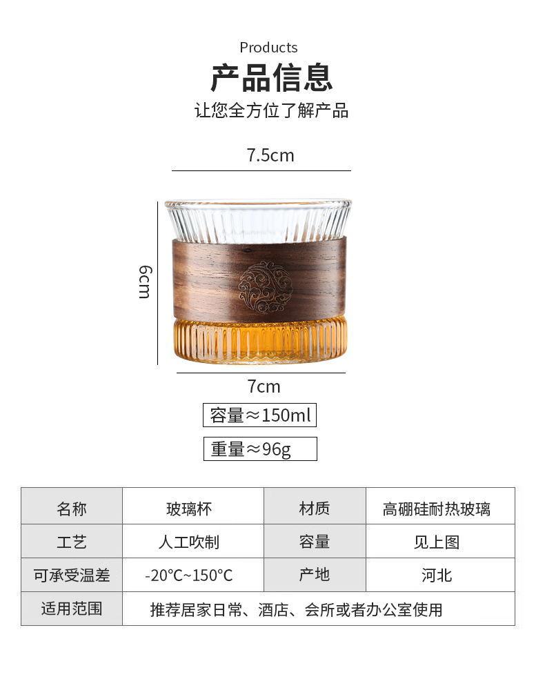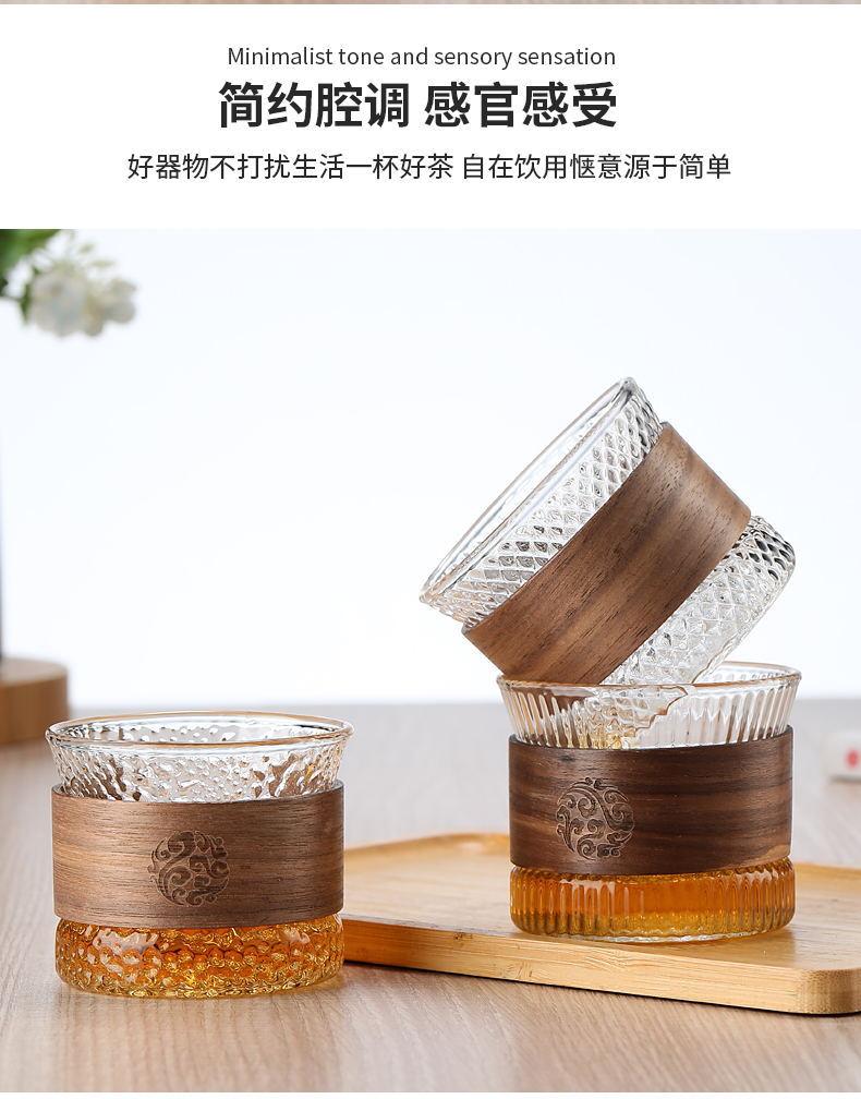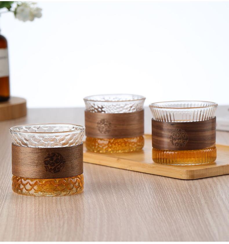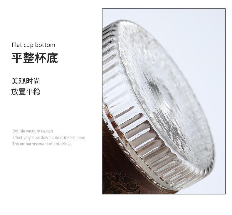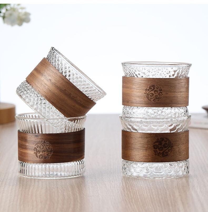 Taza de café de vidrio aislado con anillo de madera, resistente al calor, taza de té pequeña, taza individual maestra, taza de té, taza de té, grano vertical, taza