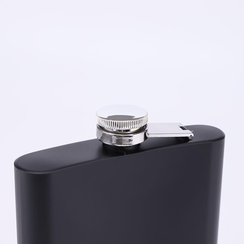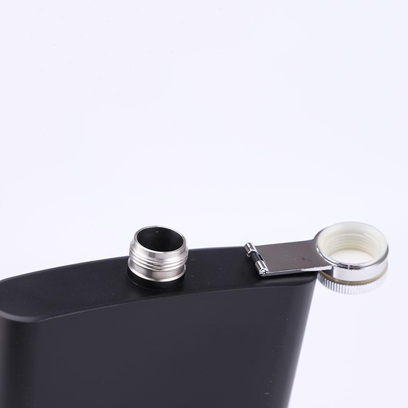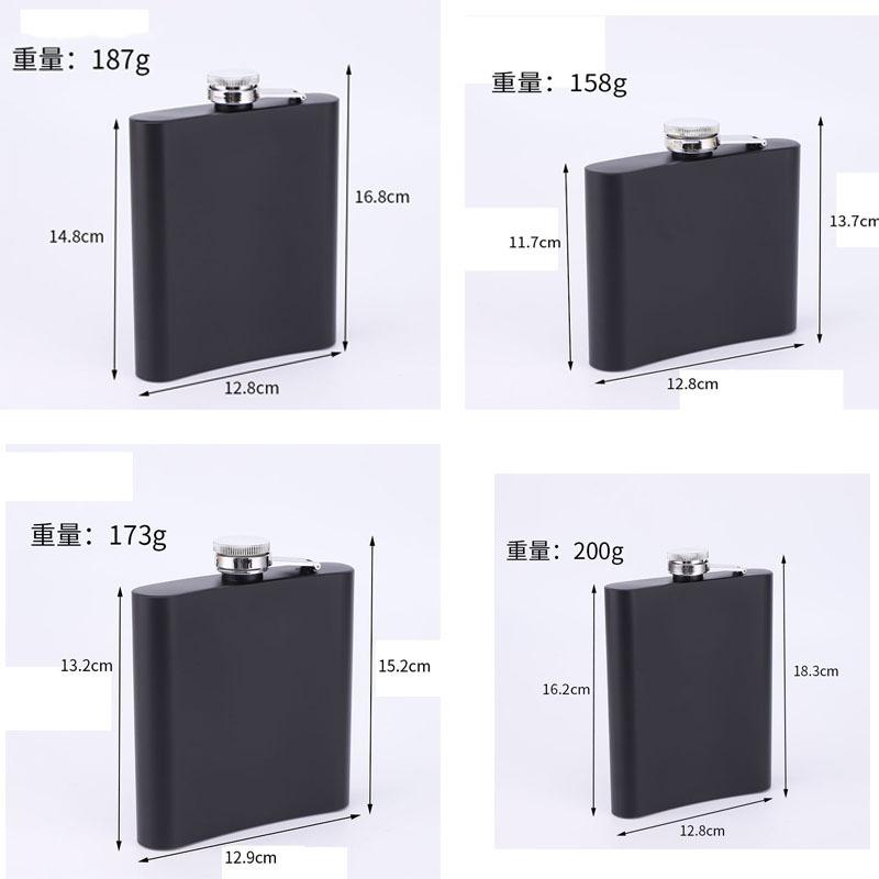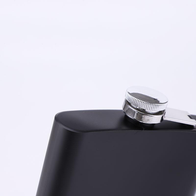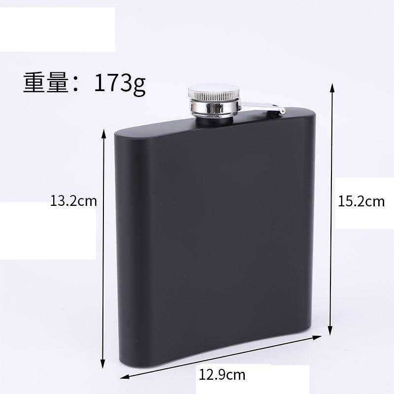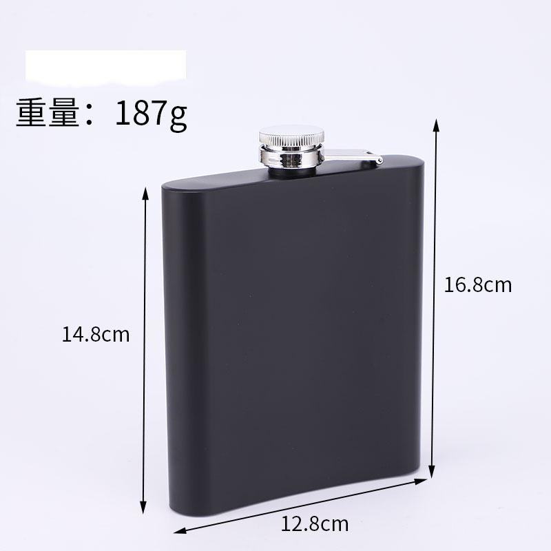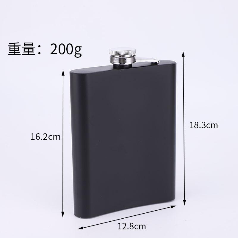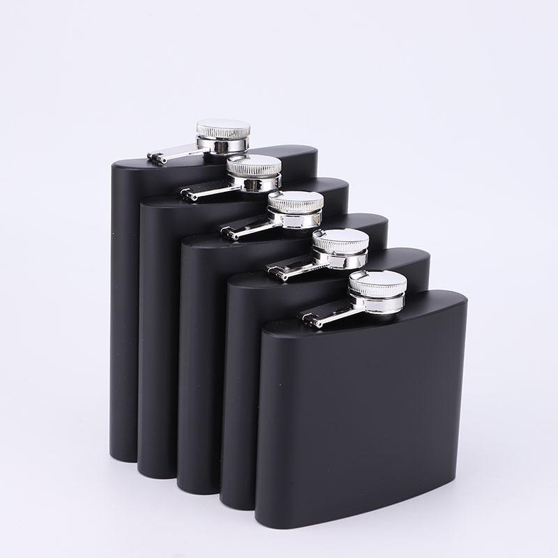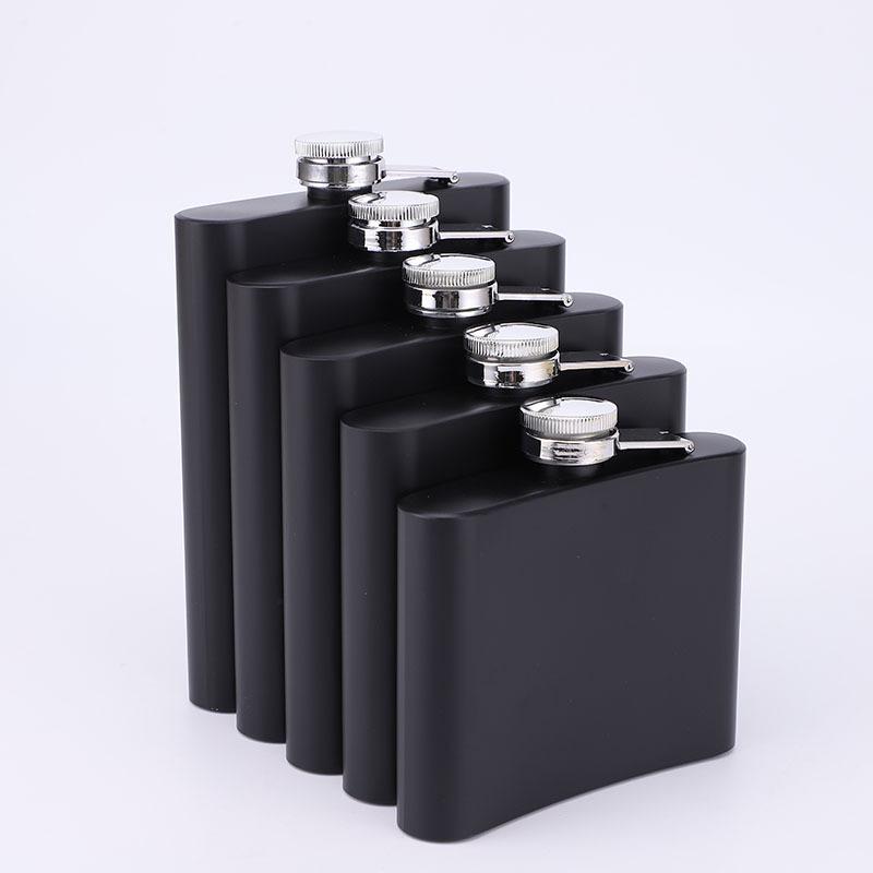 Frasco de cadera de acero inoxidable mate de fábrica con suministro de pintura negra, portátil, para exteriores, pequeño y plano, botella de vino portátil